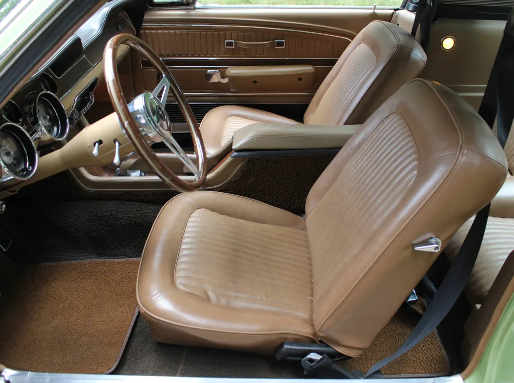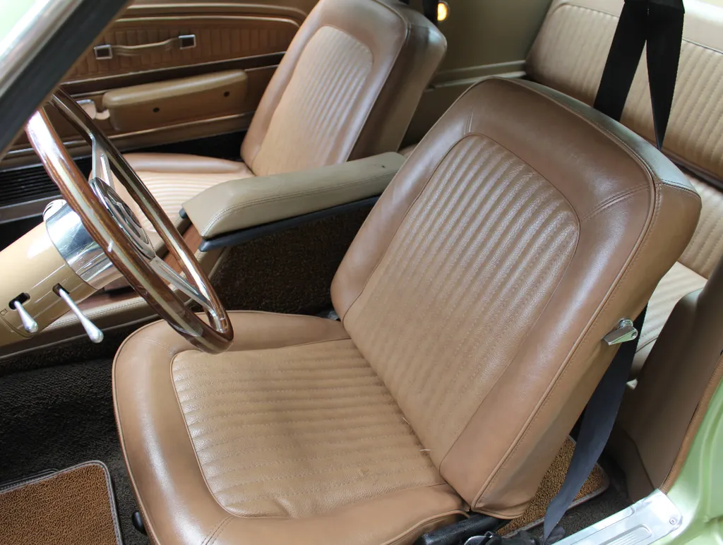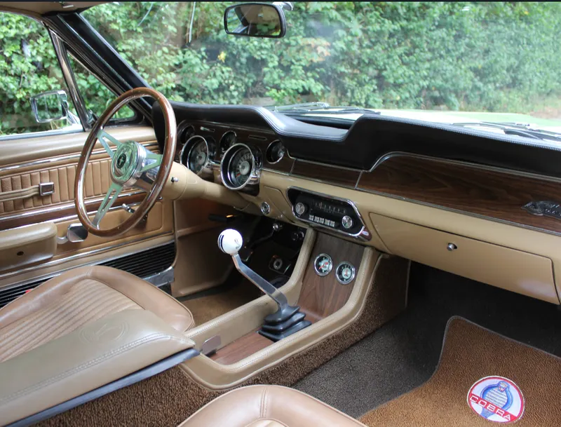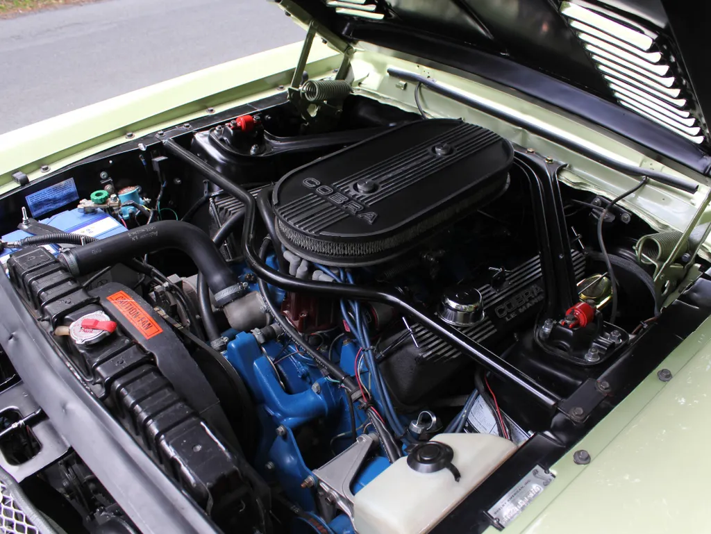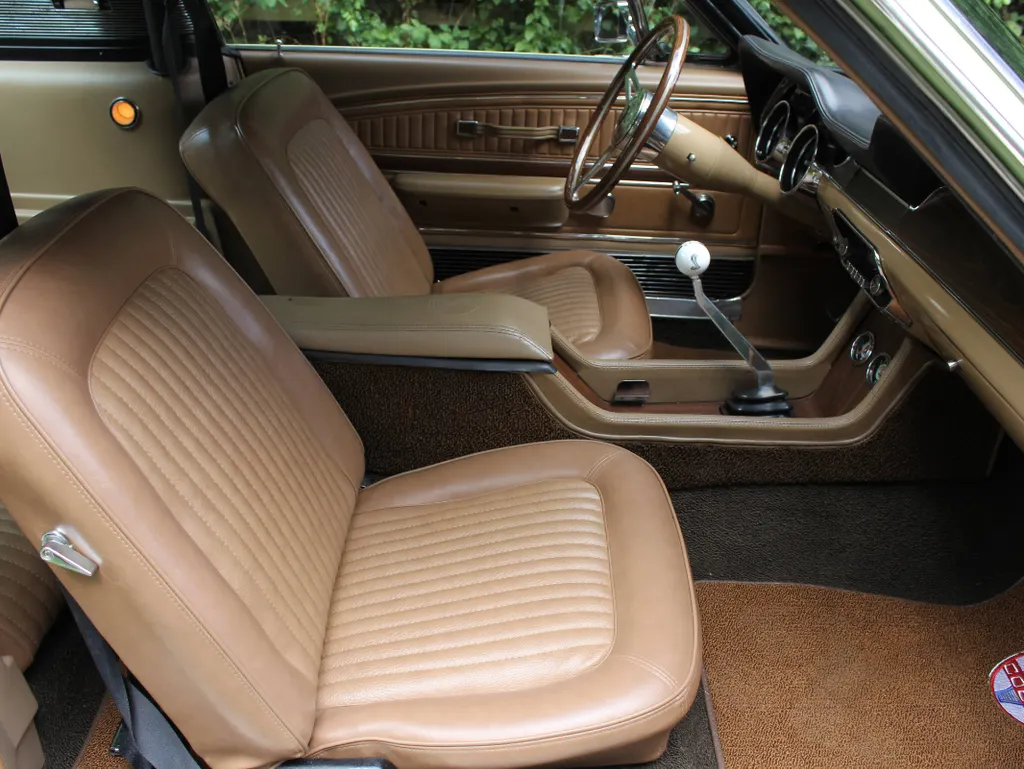 This beautifully rebuilt genuine Shelby Mustang GT500 was built on the on the 11th January 1968 at the Metuchen plant, finished in beautiful Lime Gold paint and Saddle Vinyl luxury interior. MDM 691G returns to us from a regular customer who has enjoyed many faultless miles and carried out meticulous detailing in the engine bay. The car was supplied new by Kimnach Ford Inc, Virginia Beach, Norfolk, VA and featured shoulder harness, extra cooling package, wheel lip mouldings, power disc brakes, power steering and tilt away steering wheel, all confirmed by the Marti Auto Works report. Our example has been subject of a two major bare shell rebuilds by a UK specialist and has completed minimal miles since completion. The car was brought over to the UK in 1989 and from old MOT certificates we can see the Mustang covered around 1000 miles up to 2001. The Shelby along with a collection of other cars was then dry stored for almost 15 years and discovered in 2015 when the full restoration was commissioned. The rebuild was finished to an exceptionally high standard and completed by 2017. A comprehensive file of paperwork accompanies the car detailing thousands of pounds worth of expenditure. Photos show the bare shell being prepared and fully painted, including underside, then fitted up with some new and some re chromed brightwork. The interior was fully re-trimmed and the car mechanically overhauled as required. The original engine was treated to various work to include new pistons, con rods, main bearings, oil pump, a five speed gearbox was fitted, new power steering and the brakes and suspension overhauled along with various ancillaries. The car has been finished to an exceptional standard, It is mechanically outstanding and presents beautifully in showroom condition. The underside is presented in first class order with beautifully painted floor pans, the engine bay is of show quality and the bodywork and paint finish are top quality. The interior has been beautifully finished, and on the road the car offers incredible power and performance, and will most certainly not disappoint. A true collectors piece.