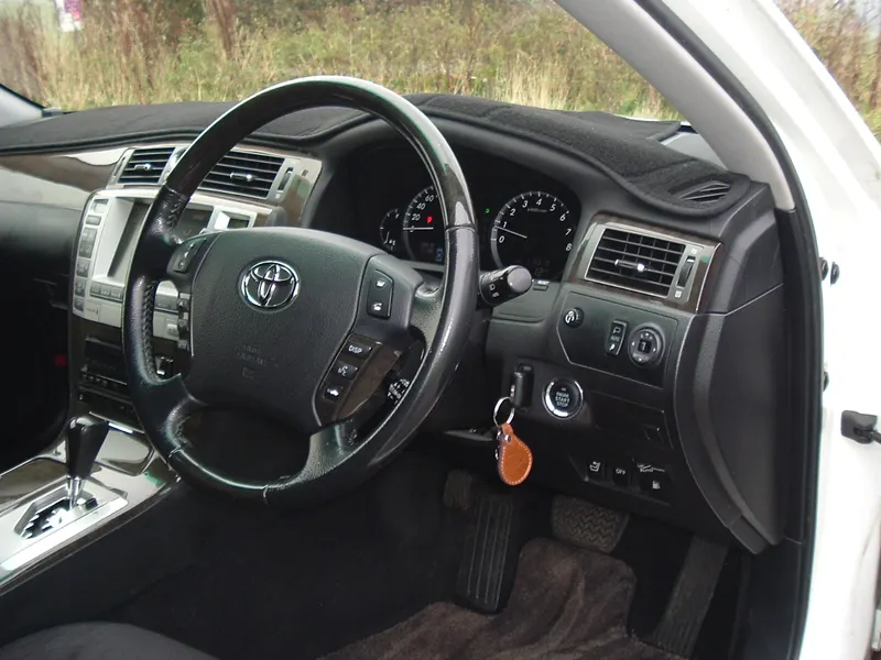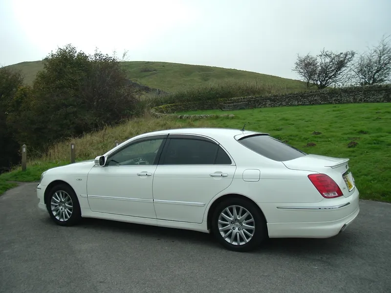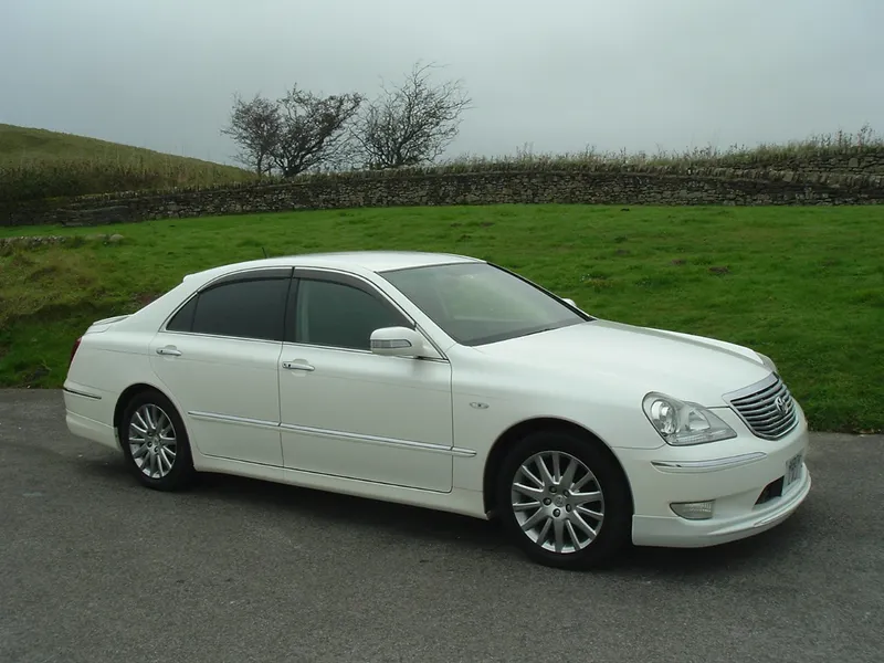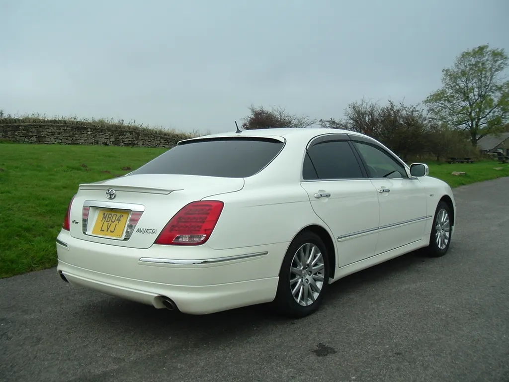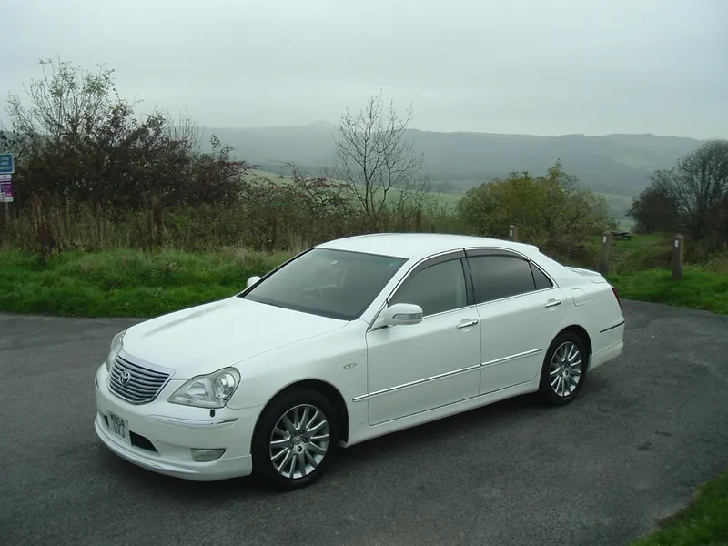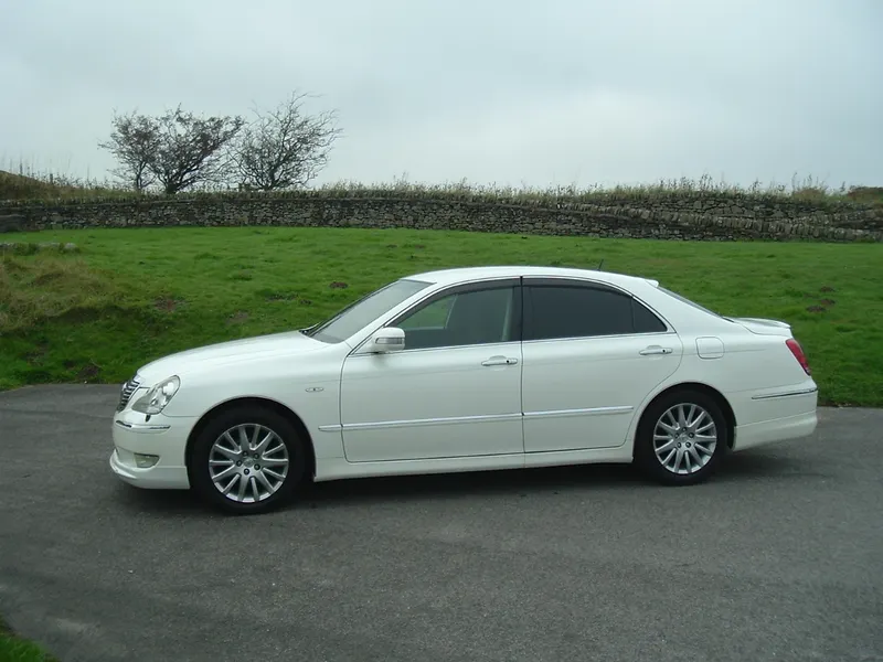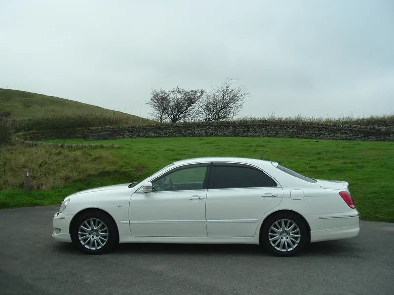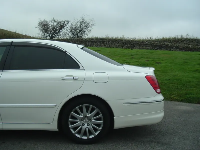 Arrived with us in early 2023, and I have used it as my personal car since then. This is the 2nd Toyota Crown Majesta that we have imported, and they really are a superb all round package. This immaculate example is the UZS-187 which means it is the all wheel drive version of the UZS-186. The engine is the supern 3UZ-FE 4.3 V8 which produces about 295 bhp and 441NM of torque. The tranmission is the 6 speed automatic. This drivetrain is also used in Lexus 430 models, so parts are easy to obtain in the UK. It is renowned for it's reliability, refinment and reasonable fuel consumption. On a run from Cheshire to Kent I averaged 34 mpg. The AWD system is superb in wintry weather, assisted by the Yokohama winter tyres as fitted to this car. Road tax is £360 per year. This example was rated as grade 4 in the Japanese grading system and it is currently on 70000 miles which will be increasing slightly. It comes with a full bookpack and manuals, 3 keys, Japanese inspection report and service record. It is finished in pearlescent white with dark cloth trim and has the factory fitted body styling pack. There are many standard features including adaptive air suspension, radar cruise control, digital climate control and air con with cabin ioniser, electric rear blind, rear door blinds, rear privacy glass, reverse camera, electric seats, electric reclining rear seats, keyless entry and more. In Japan the Crown range is a national institution that has been around since the 1950's as Japan's executive car. Running a Crwon in the UK is quite easy with parts available from mian dealers within days of ordering, most parts are shared with Lexus models. Our own preparation has included a new battery, replacing both front height sensors, replacing all brake discs and pads and having the underside treated with Lanoguard. Crucially the cam belt, water pump and drive belt were all replaced at a Lexus main dealer in May 2024. The condition is immaculate and the drive is very comfortable. Located in Macclesfield, Cheshire.