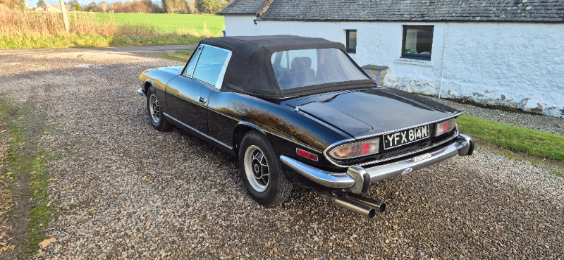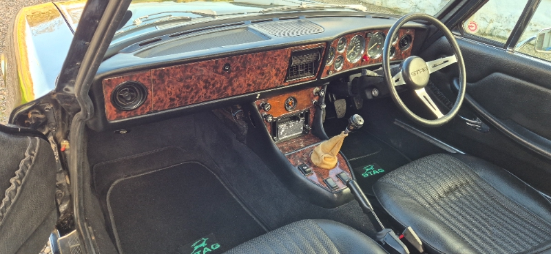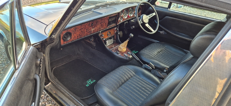 YFX 814M, original 3.0 litre V8 Triumph engine, comes with new MoT/all old MoT's confirming mileage, full engine rebuild, new tyres, 2 keys, family owned 32 years, starts on the button a great stag.