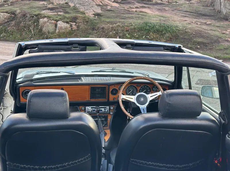 Production of the Triumph Stag commenced in November 1969 but it was not available to the public until June of the following year. Designed to be a luxury grand tourer – along the lines of the SL model Mercedes Benz – the car was well equipped and featured a new 3 litre V8 engine and sharp styling by Michelotti of Turin. A 2+2 seater, sporting a soft top and T-bar in standard trim, an optional hard top was also available. Electric windows and power steering were standard fitments, with either an automatic or manual plus overdrive gearbox available. With a view to becoming a large seller in export markets – particularly the USA – factory-fitted air conditioning was also an option. The car received good reviews on its international launch and was an excellent seller in the UK, where it found favour with young executives and the upwardly mobile. The prospects looked good for the car but a series of unfortunate reliability issues – mainly related to the engine overheating – quickly earned it a poor reputation, particularly in the all-important US market. These issues could have been and can be readily avoided but the damage was done and sales fell away after a few years with production halted in June 1977, by which time a little over 25,000 cars had been built – with roughly 2/3 Home market cars and the remainder exported. The Stag changed very little over its production run, but there were sufficient alterations made to its appearance to lead to Mk I and Mk II versions. These changes related to the colour or covering of the sills; the colour of the tail panel; the addition of coachlines; the style of wheels fitted and some modest changes to the interior. There was also a smattering of minor mechanical updates made. There is no early history to accompany this late, Home market Mk II Stag beyond its first registration date – in the UK – of 28 August 1977, although the chassis number confirms it to be a 1976/77 model year vehicle. Records start with a July 2002 MOT certificate which shows 41,459 miles at that time. From 2010 we have a better picture, with maintenance and repair invoices from that point. Over the next few years we can see that some significant spend was made on the car including engine work (new timing chains); bodywork repairs and repaint work; interior upholstery (seats recovered, new carpets) and fitment of a new Mohair hood. The last UK MOT record is in June 2020, with 50,110 miles recorded. In 2023 the car was acquired by a Jersey-based owner and re-registered in the island in September of that year. It has been well maintained but sparingly used subsequently with the most recent service carried out (by ourselves) in September of this year. Powered by Triumph’s own 3 litre V8 – itself a development of the successful four-cylinder engine from the Triumph Dolomite – this car has the 4-speed manual gearbox with useful overdrive on 3rd and 4th gears. Triumph claimed 145 bhp for the Stag and a top speed of around 120mph. Having been well maintained in recent years, this example runs and drives well. An electronic ignition unit is fitted. This is a good looking Stag fitted with the optional hardtop. The Mohair hood was renewed in 2018. We know it underwent considerable bodywork and repaint work some 10 years ago (for which there are invoices and some pictorial evidence) and the car remains in a very presentable condition. Front and rear valances are very tidy and the underside of the car looks good. All brightwork is in good fettle, as are the original fitment alloy wheels. The interior is in very good condition – seats, carpets, doorcards and wooden dash all looking to have received care and attention to keep them in first rate condition. A Moto Lita wood-rimmed steering wheel and modern CD/tuner unit have been fitted. A very tidy and smart example of a late model Triumph Stag finished in white, with matching hardtop. Running and driving well with that charismatic V8 rumble, we believe the low recorded mileage to be correct (given the MOT records held). This car is ready to be enjoyed by a new owner. The Triumph is currently Jersey registered and we can assist with shipping (worldwide) and importation processes if required.