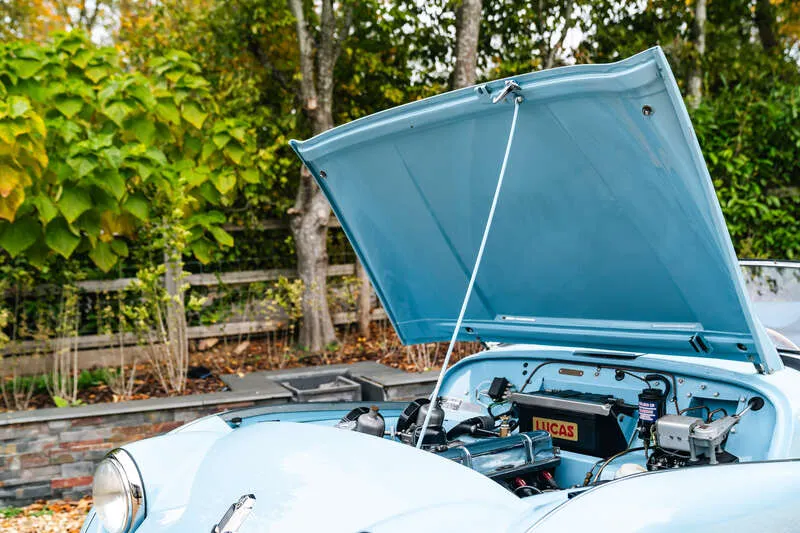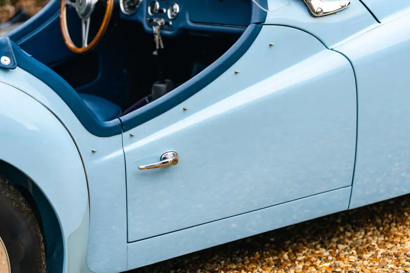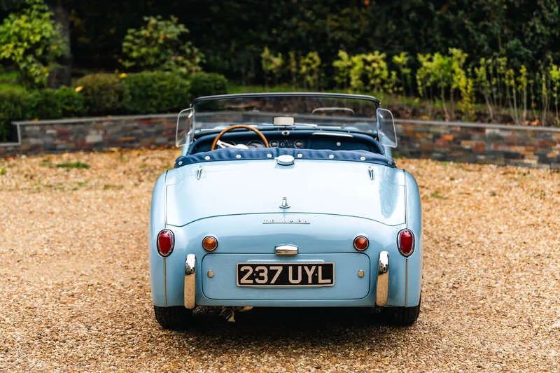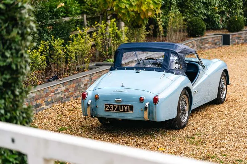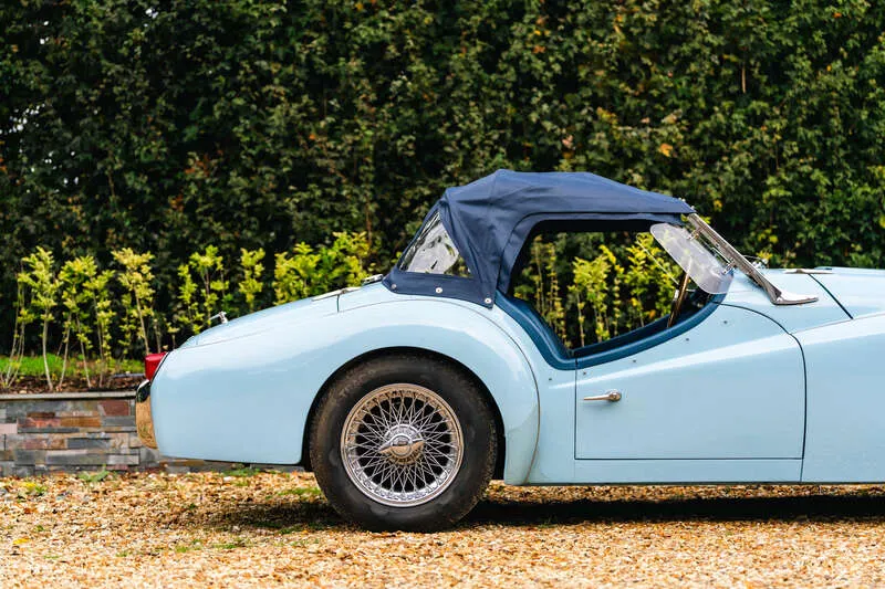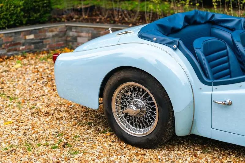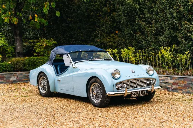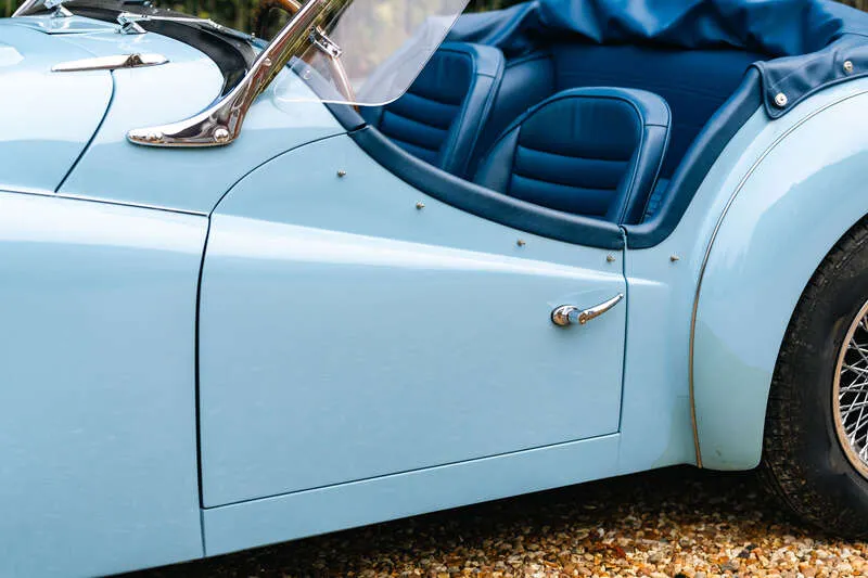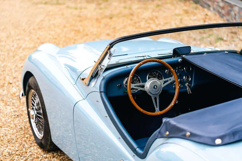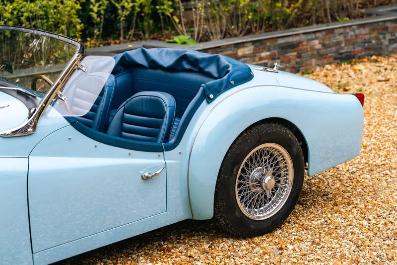 This lot will be auctioned via Iconic Auctioneers, The Classic Sale at the NEC Classic Motor Show 2025 on Sunday the 9th of November, NEC, Birmingham, B40 1NT. The TR3A was Triumph’s definitive 1950s roadster – a rugged, charismatic sports car offering lively performance from its torquey 2-litre four-cylinder engine and timeless open-top design It was never officially badged as a TR3a but was, in fact, a minor revision of the TR3, with updates including a new wide grille, exterior door handles, lockable boot and a full toolkit The example you see here was imported from California in 2011 by Prodrive senior engineer, Richard Thompson, who heads their Prodrive Legends operation and undertook a comprehensive body-off restoration to an exceptional standard The chassis was stripped, blasted and repainted, while the body was refurbished and repainted in its original Powder Blue by Normandale Bodyworks of Daventry Mechanical components were comprehensively rebuilt including the engine, gearbox, rear axle and braking system. Fitted with a new wiring loom and the instruments and dash assembly were fully refurbished Additional restoration included a complete re-trim in blue leather, new brightwork, a stainless steel exhaust system, chrome wire wheels with new tyres, new windscreen, soft top and tonneau cover Sensibly upgraded for usability with an alternator, electric cooling fan, steering rack conversion, lap belts and a wood-rim steering wheel. Accompanied by a British Motor Industry Heritage Trust Certificate and offered from ten years long term ownership Exceptional left-hand drive examples of the TR3A are rarely offered this side of the pond and this example presents an excellent opportunity for those perhaps looking to tour the Continent in classic fashion in a fully rebuilt late 1950s British roadster