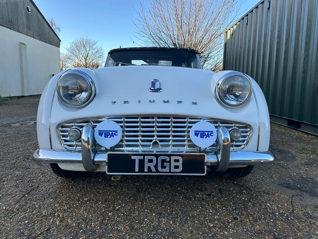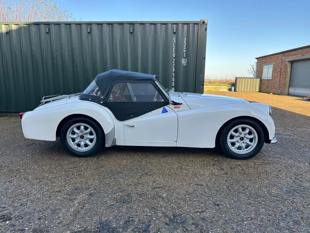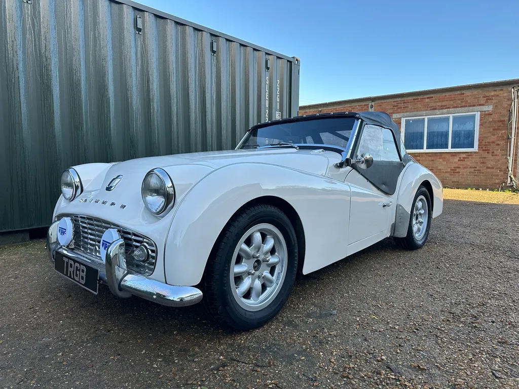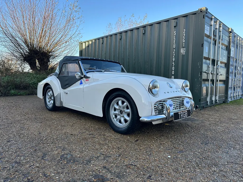 At TRGB Ltd we have a fast road or rally prepared TR3A that is well known to us. Very recent service, tune, fuel hoses and rear shock. Awaiting a temperature gauge recondition in the new year. It was body off restored by Racetorations in 2000 to a very high standard. Painted in Spa White and trimmed in matador red, Moto-lita steering wheel, stage 2 head with SU Carbs, converted to unleaded fuel, lumenition electronic ignition and A type overdrive gear box. Full weather gear comes with the car and is in good condition. Extensive history and Heritage certificate with the car and receipts totaling £40k. A real drivers car and one not to be missed. Ramp inspections welcome, comes with a years free membership with the TR Register car club and a fresh MOT. Commission sale £17,495