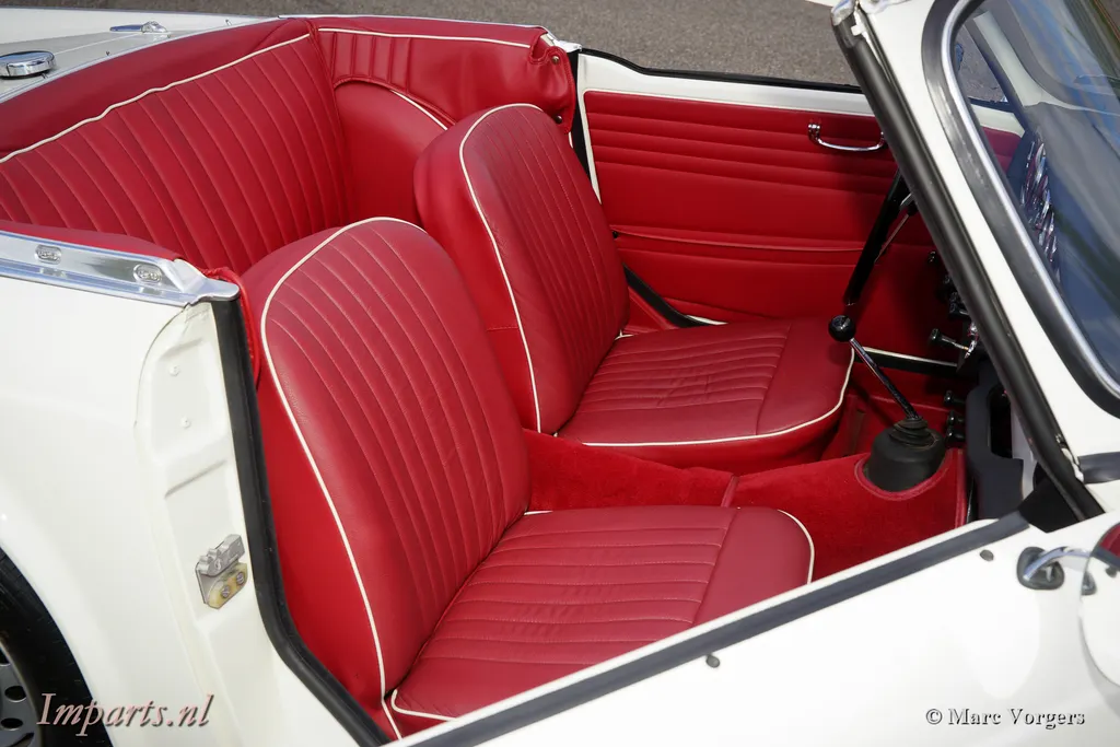 Triumph TR 4, year 1962. Colour red combined with a black leather interior trimmed with w...