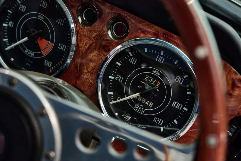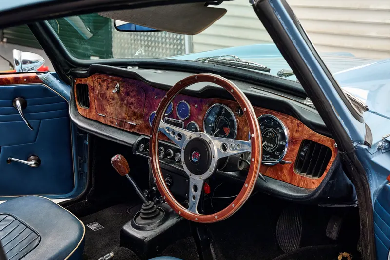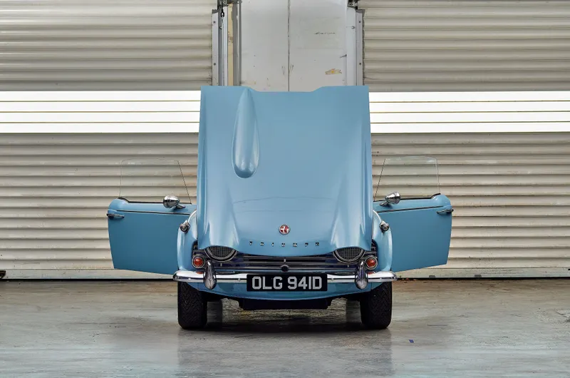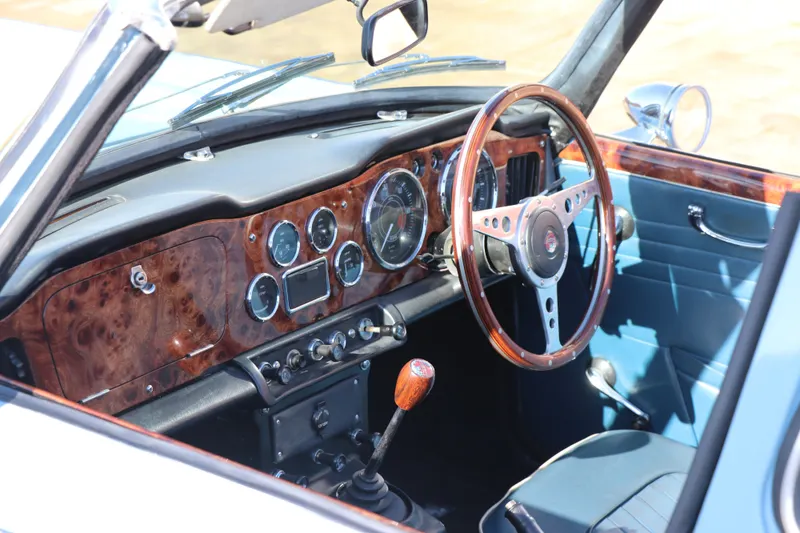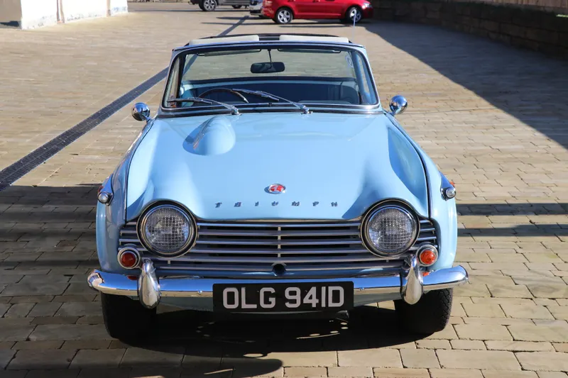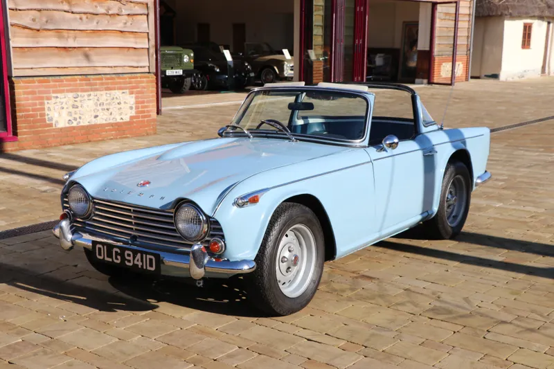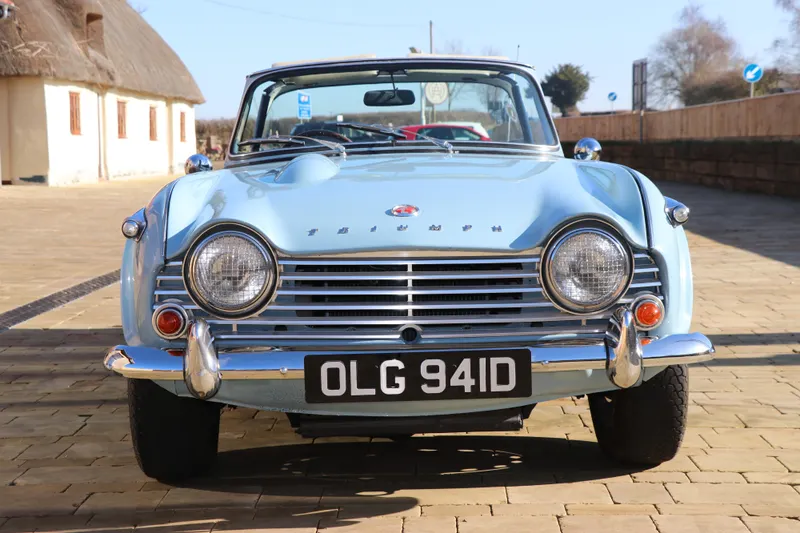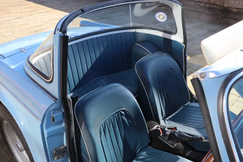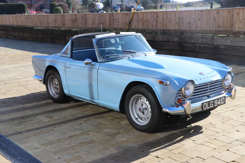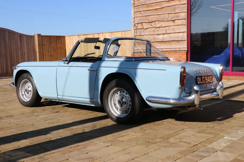 This a lovely example of the Triumph TR4A. The TR4 was always a great looking car designed by Italian stylist Michelotti, however in 1965 it was upgraded to the TR4A, this major upgrade bought with it all new independent rear suspension (IRS) which provided significantly improved ride and handling. Mechanically this car has the benefit of electronic ignition and an electric cooling fan with a spin on oil filter, a narrow belt alternator and a pair of refurbished Stromberg 175CD carbs. The exhaust system is stainless steel from manifold to tailpipe. The overdrive system works entirely as it should on second, third and fourth gears giving a total of seven gears! Underneath the car has been protected with stone guard treatment and wheel arch liners and is in very good condition. The interior is in excellent condition with a recently installed burr elm dashboard and door card tops and a new wooden gear knob and three spoke Moto Lita steering wheel, carpets are all new and additional soundproofing has been added under these. Another great feature of this car is the “Surrey Top” which gives the option of a targa top and open air driving. The car comes with a comprehensive list of paperwork and receipts.