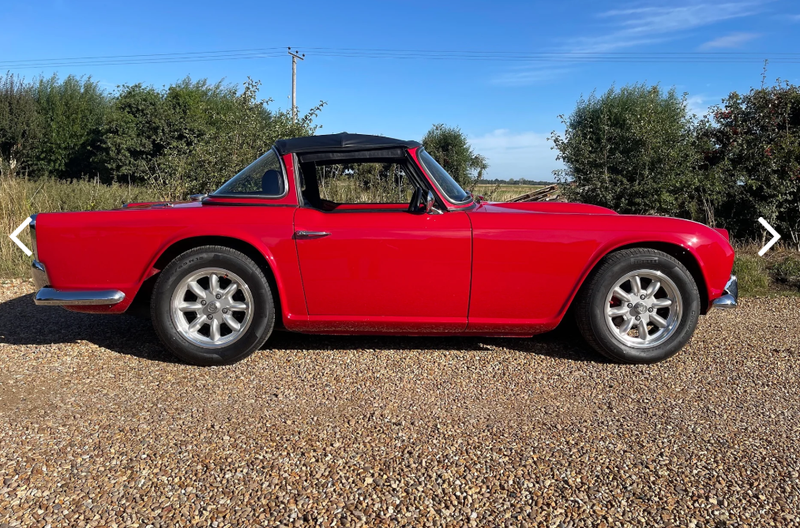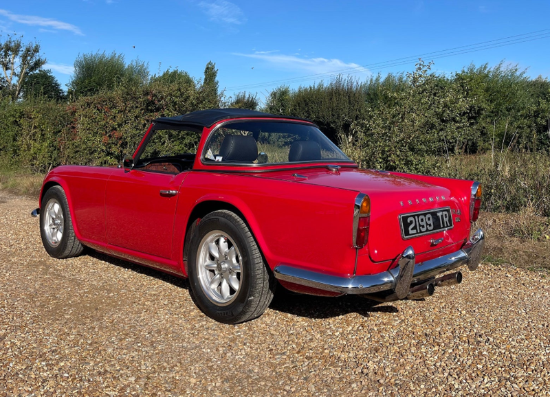 At TRGB Ltd we have a beautiful body off chassis restored example that has been very well looked after. This TR4A has been subtly changed from the factory spec by deleting the front wing and door trims, adding a surrey back light, moss Suffolk seats and much more! Running on SU carbs and engine uprated with use of a piper high torque camshaft. Very good mechanical, lovely paint work and very good door gaps. Absolutely huge history file, comes with an MOT and a year free membership with the TR register car club. Ramp inspection welcome! Commission sale £25,995.