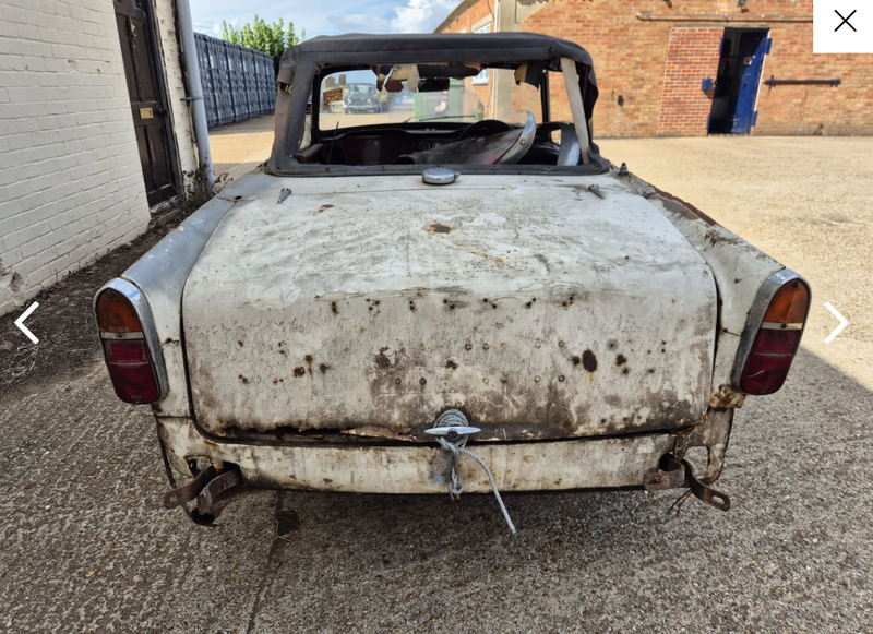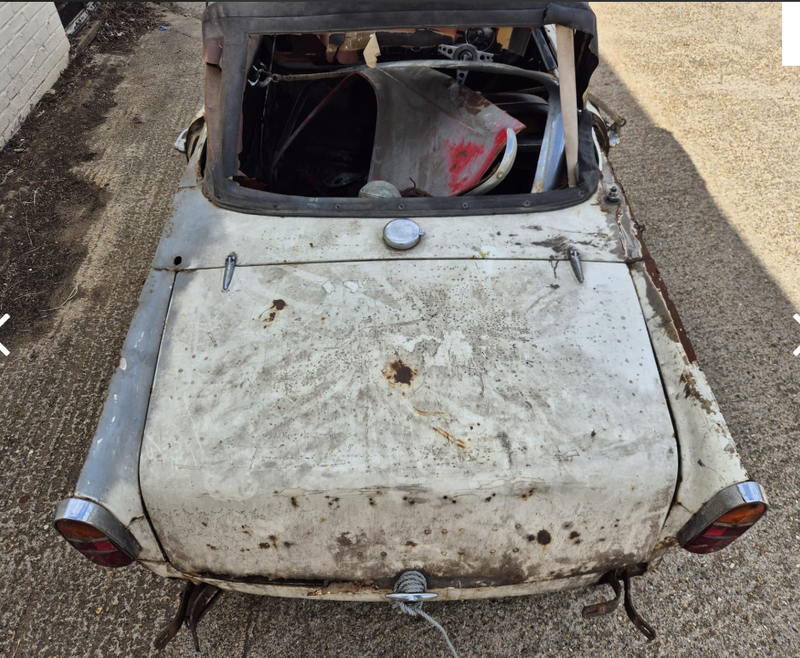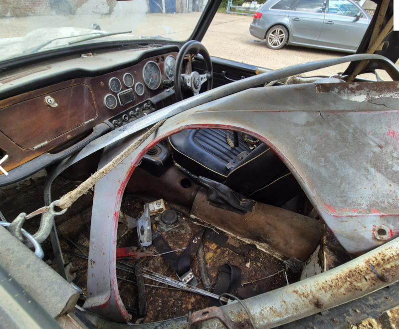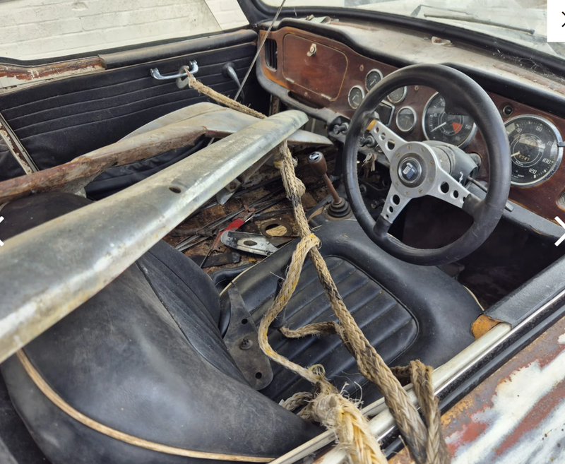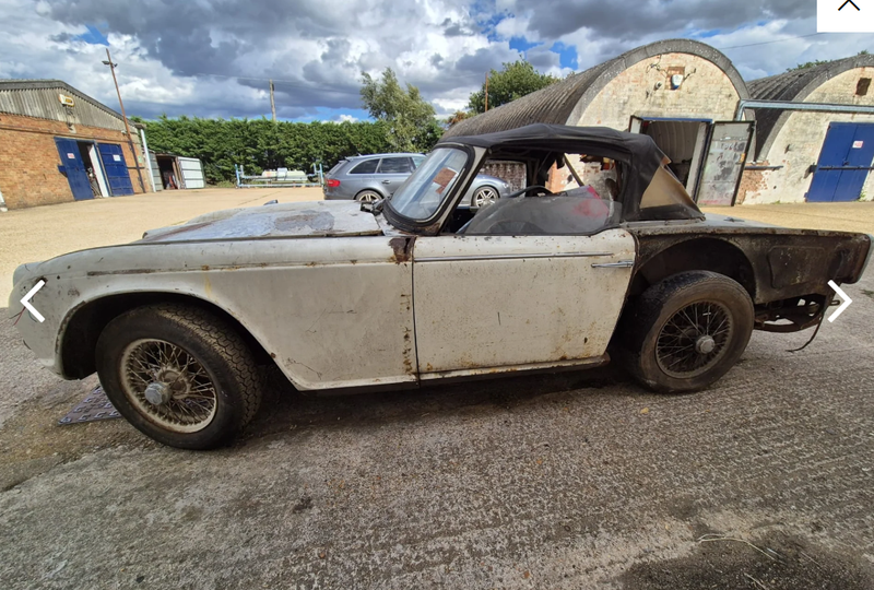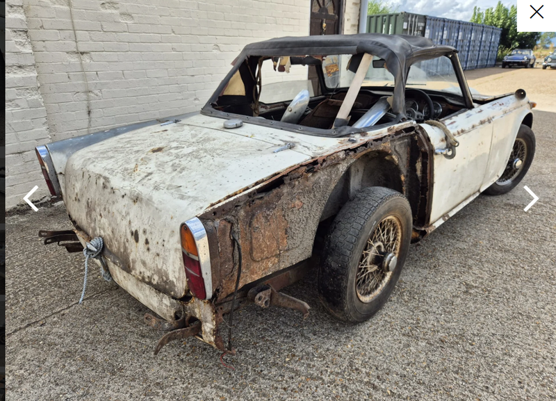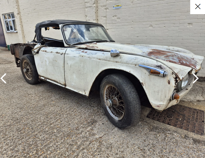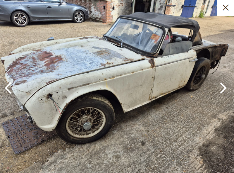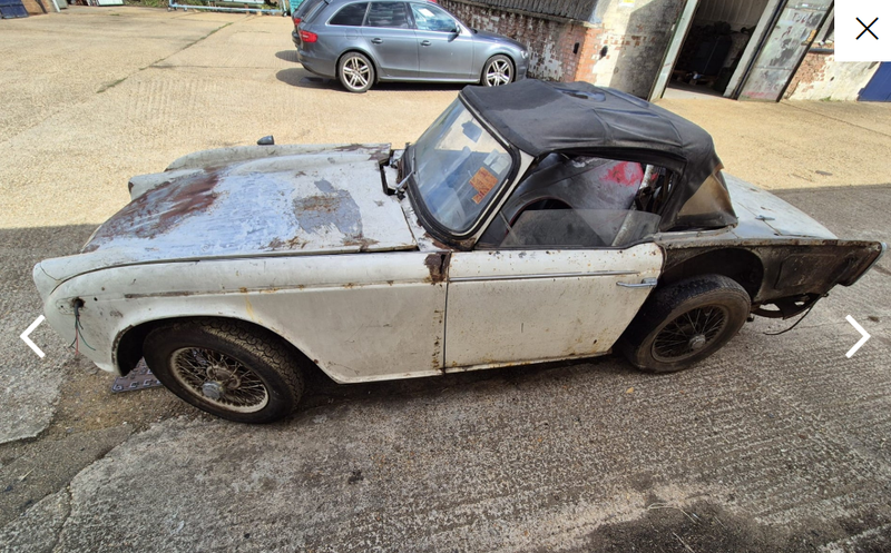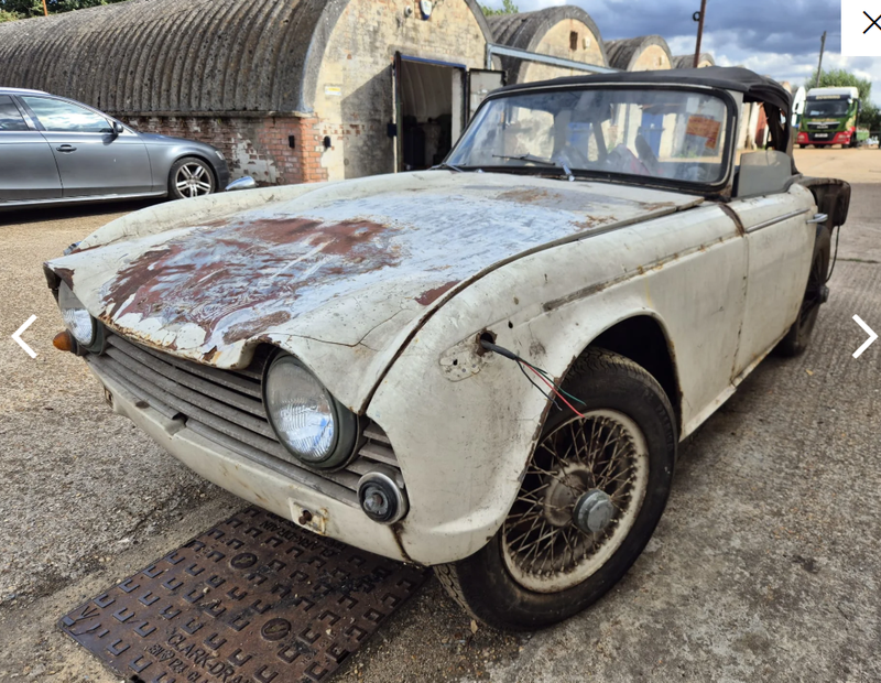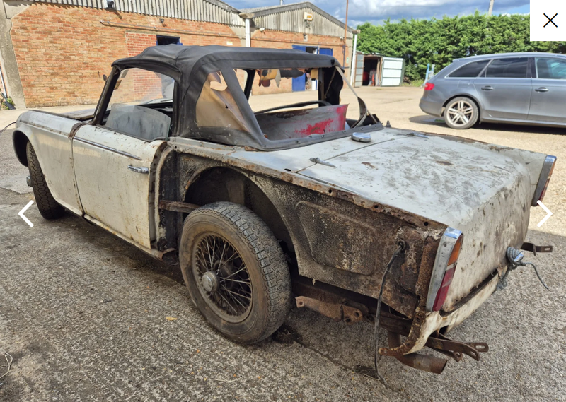 TR4A 1967 OVERRIPE FOR RESTORATION. CHASSIS IS RESTORABLE, AND AS YOU CAN SEE THE REAR OF THE BODY TUB IS QUITE BAD. 99% COMPLETE. OLD GREEN LOG BOOK AND ORIGINAL VIN NUMBER STILL ON CAR. TAKEN OFF THE ROAD IN 1976 AND DRY STORED SINCE. PLEASE PLEASE PLEASE NO IDIOTS, NO TIMEWASTERS, IT IS WHAT IT IS! £2500 IS THE FIRM PRICE OR WE WILL BREAK IT FOR PARTS (BE A SHAME BUT WE ALL HAVE BILLS TO PAY!!) FAIR PRICE ON DELIVERY ARRANGED. £2500