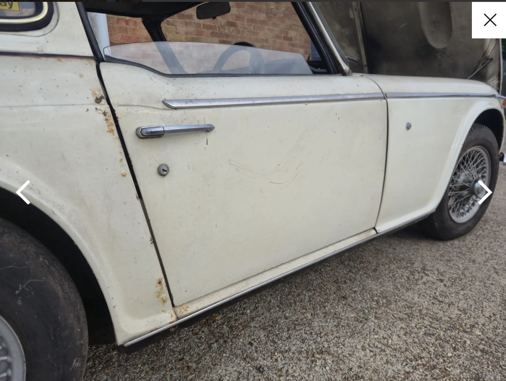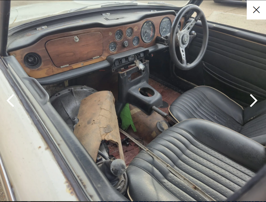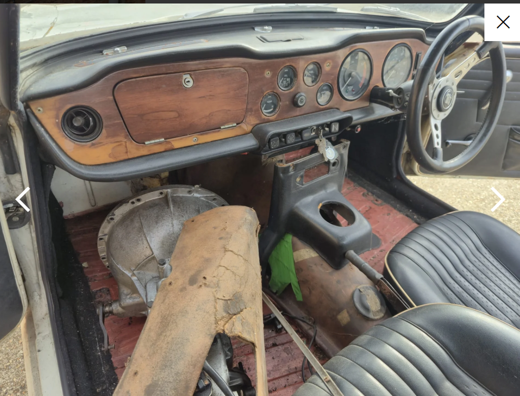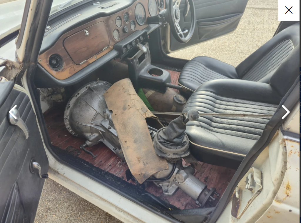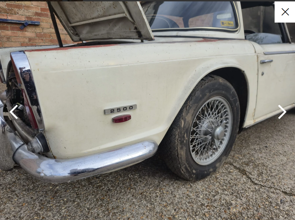 At TRGB Ltd we have a very rare opportunity to acquire one of the best TR5 projects we have seen in years! A genuine 2 owner TR5, registration THX976F, that is completely unmolested! Mileage 61,564, second owner purchased the car in 1975 with a recorded mileage of 35,000. We even have a newspaper clipping and handwritten sales receipt to confirm this. Non-runner has been garaged on axle stands since 1982, when the gearbox was removed for repair and never completed. Cobwebs included F.O.C £21,995.00 We are very hopeful to have the opportunity to restore this TR5 for the new proud owner! We have restored many TR5's in our time to the highest standards possible! We are happy to restore to an original specification or a bespoke build. Please enquire for restoration costs, specifications and restoration process. This really could be the last one in project form! We take great pride in our craftsmanship, and our family business has been working on TR's since 1986.