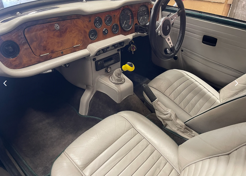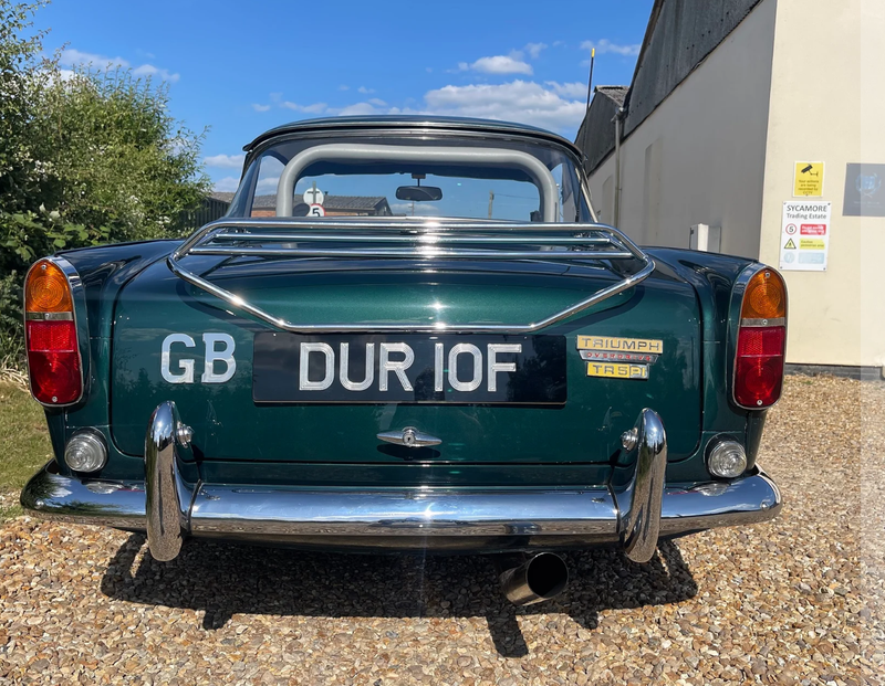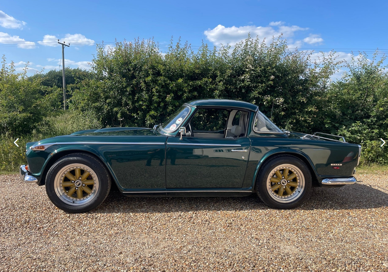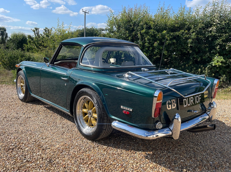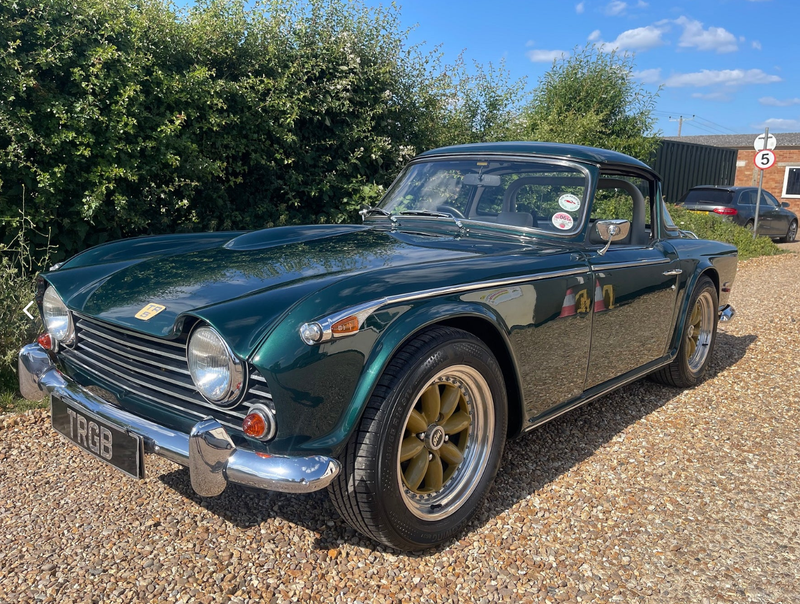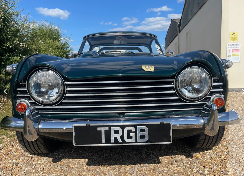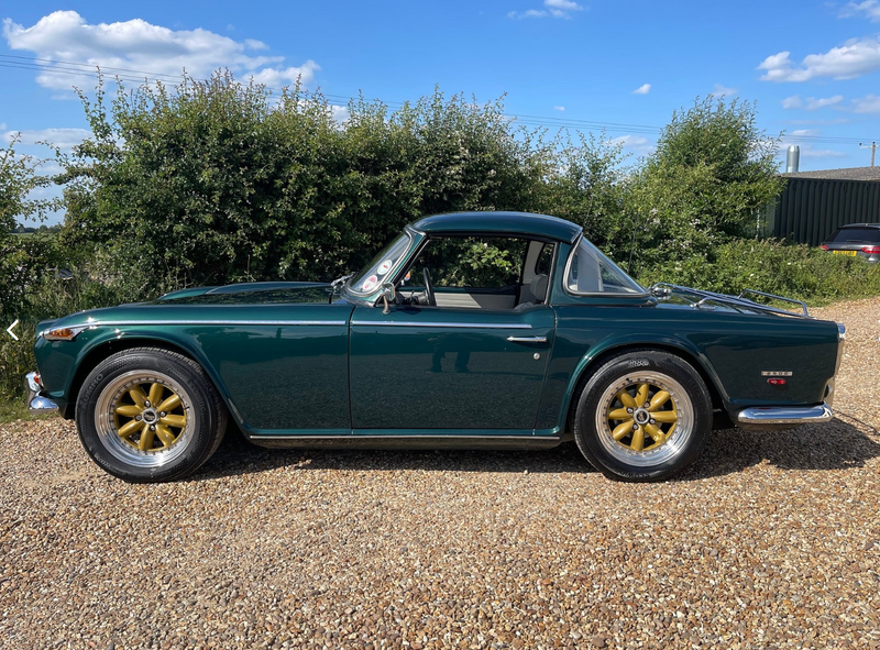 At TRGB ltd we have a very rare opportunity to buy a one of a kind bespoke restored TR5. This example is well known to us as we carried out the restoration and paint work in the late 90 early 2000's. Very high specification model, painted in metallic British racing green, aluminum outer wings, light grey leather trim, factory surrey top, roll over bar, 16inch image split rims, wilwood 4 pot brake calipers, alfin rear drums, uprated drive shafts, limited slip diff, poly bushes suspension, new wiring loom and much more. 170BHP fast road engine with lots of revington TR upgrades and Webcon EFI. Very recent light recommission by TRGB workshop. Recent brake master cylinder, new starter battery, 4 new tyres and a current MOT. Very nice gaps, paint and good chassis. Ramp inspections welcome and come with a year's free membership with the TR register car club. VERY FIRM ON PRICE!