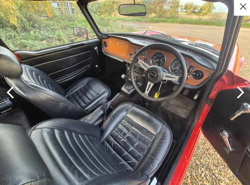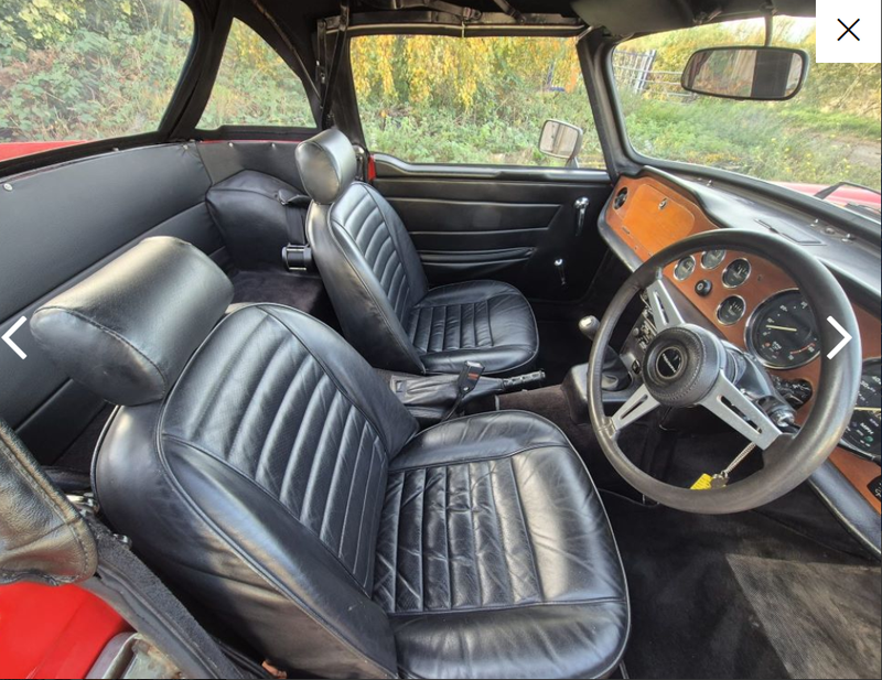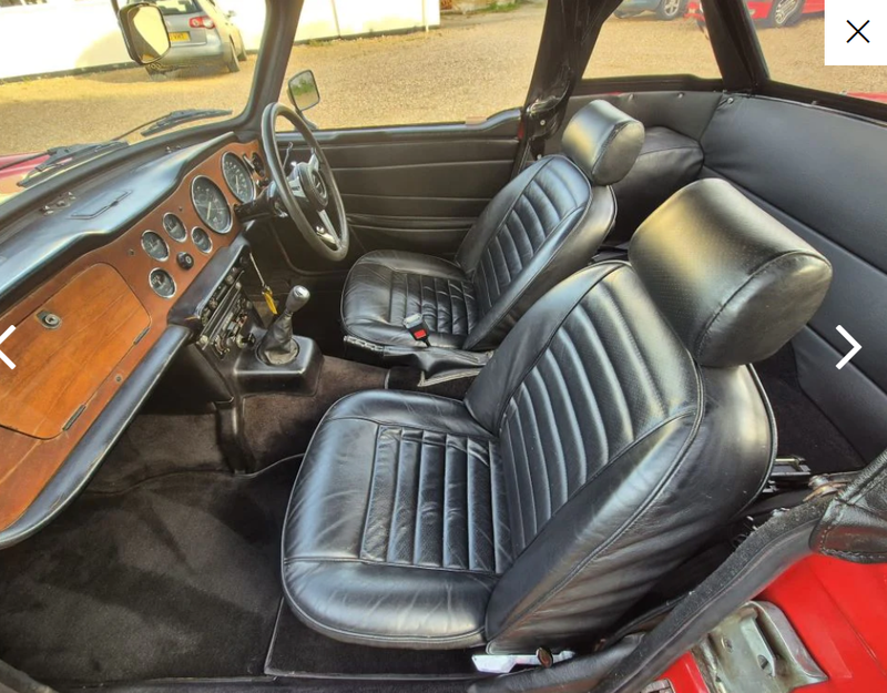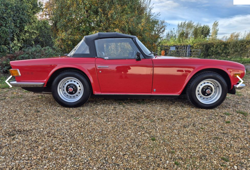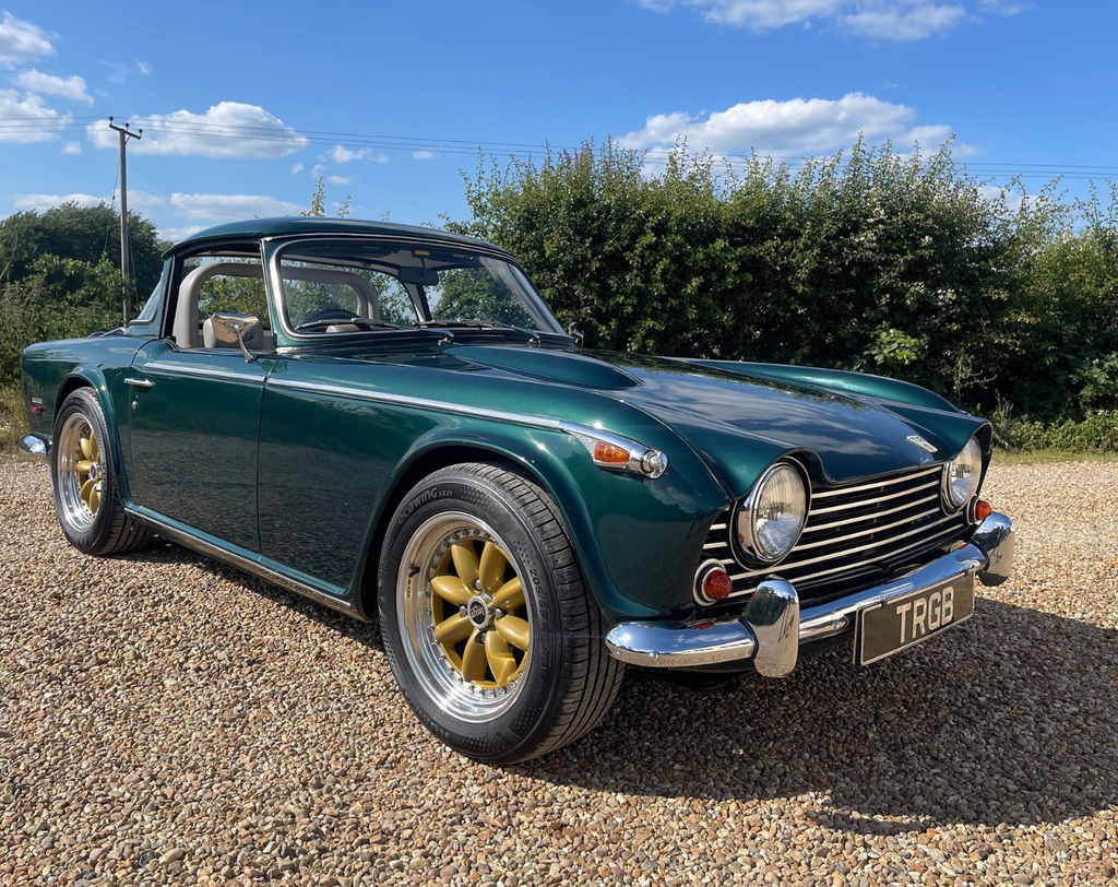 At TRGB Ltd we have a very usable "drivers" TR6. This TR6 CR was originally 125bhp from the factory. Later converted to 150bhp spec with use of a short block rebuild, stage 2 cylinder head and extractor manifold. Very good mechanicals and drives very well! Good history file with lots of service, parts invoices and recent MOT. Photographic restoration showing a part body restoration around 1995. Restoration showing inner sill repairs, new outer sills, new front panel, new rear valance and new boot lid. Still has a respectable body for the age of the part restoration, but it does have some localised areas of micro dot! Price reflects the paint and overall condition! This is a really good driver's car that has been well maintained and looked after very well! Good hood, nice condition seats, original steering wheel and dash. Ramp inspections welcome and will come with a year's free membership with the TR register car club. Commission sale £14,995.