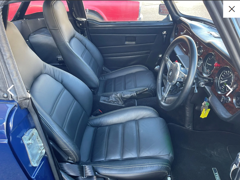 Originally body off restored in 1992, followed by a recent nut and bolt restoration and colour change between 2018-2020. Recent invoices totaling a whopping £25,500. Originally emerald green from the factory and colour changed to sapphire blue. Fantastic specification and faultless mechanically. Engine specification converted to 150bhp, +40 thou pistons, piper high torque camshaft +10 big ends and mains. 123 Ignition system, full phoenix exhaust system, cv drive shafts, new wiring loom and much more! Good underbody that is wax oiled. Chassis is good but showing some repair patches, deemed solid and strong. Chassis diff mounts have been reinforced! Huge history file and photographs documenting all parts and restoration. Bare metal respray, but unfortunately the paint is not perfect. Please see photos of paint defect areas. Very nice engine bay! The car was painted in twin pack or 2k paint. Personally, if the paint was corrected the car could be worth 22-24k. Retail price reflects the paint condition with scope to improve the paint and inturn increase the future market value. If you can see past some of the paint aesthetics, this is a very good driver's car and we can assure you that it drives very well! Ramp inspections are welcome and come with a year's free membership with the TR Register car club. Commission sale £17,995