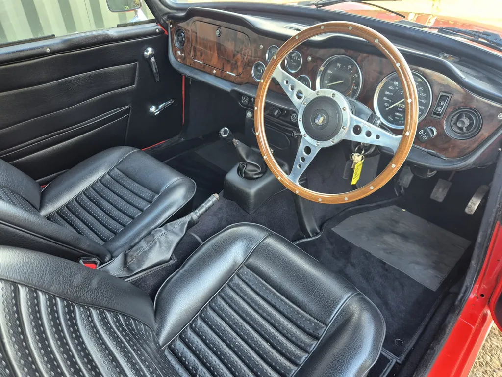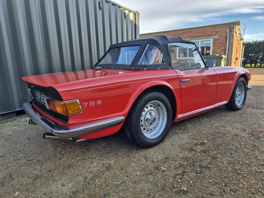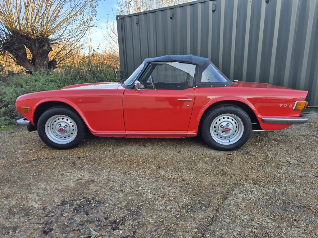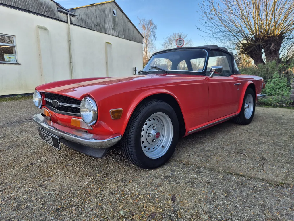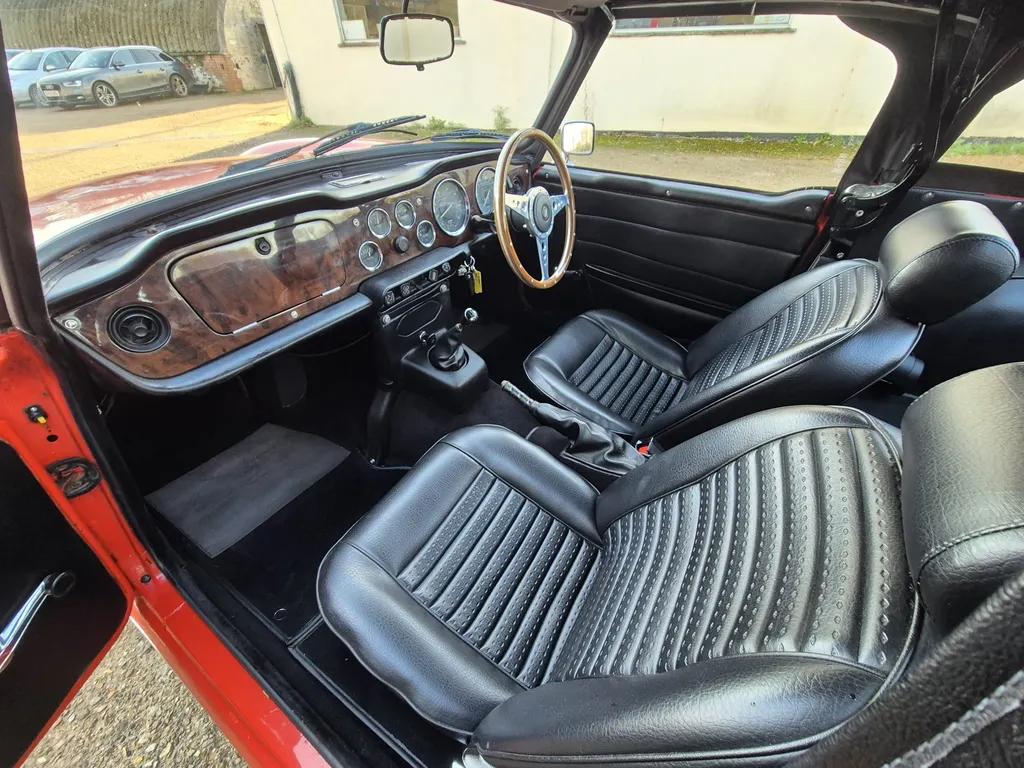 This running and driving project TR6 in Pimento red is the perfect car for a budding enthusiast to improve and become a good Sunday driver. The car starts and runs really well and has a good condition interior with new carpets. Following an inspection we feel the car requires the following work including but not limited to; electrical issues to be sorted, the horn operation, windscreen washers, indicators and brake lights. The suspension work includes trunnion play, trailing arm bushes with play, insecure lever arm and a front wheel bearing with excessive play. The steering will also need attention, with the rack moving in the bushes and the gaiters needing to be replaced. Finally and the most substantial work required are the areas of corrosion in close proximity to the trailing arm mounts. These would all be MOT critical points and would be advised to be fixed immediately. Estimates for parts can be provided upon request. Ramp inspections are welcome. Commission sale, comes with parts discount upon purchase and a years membership to TR Register. £10,995