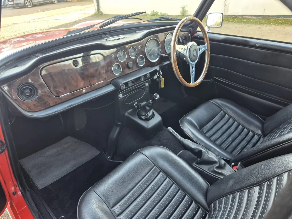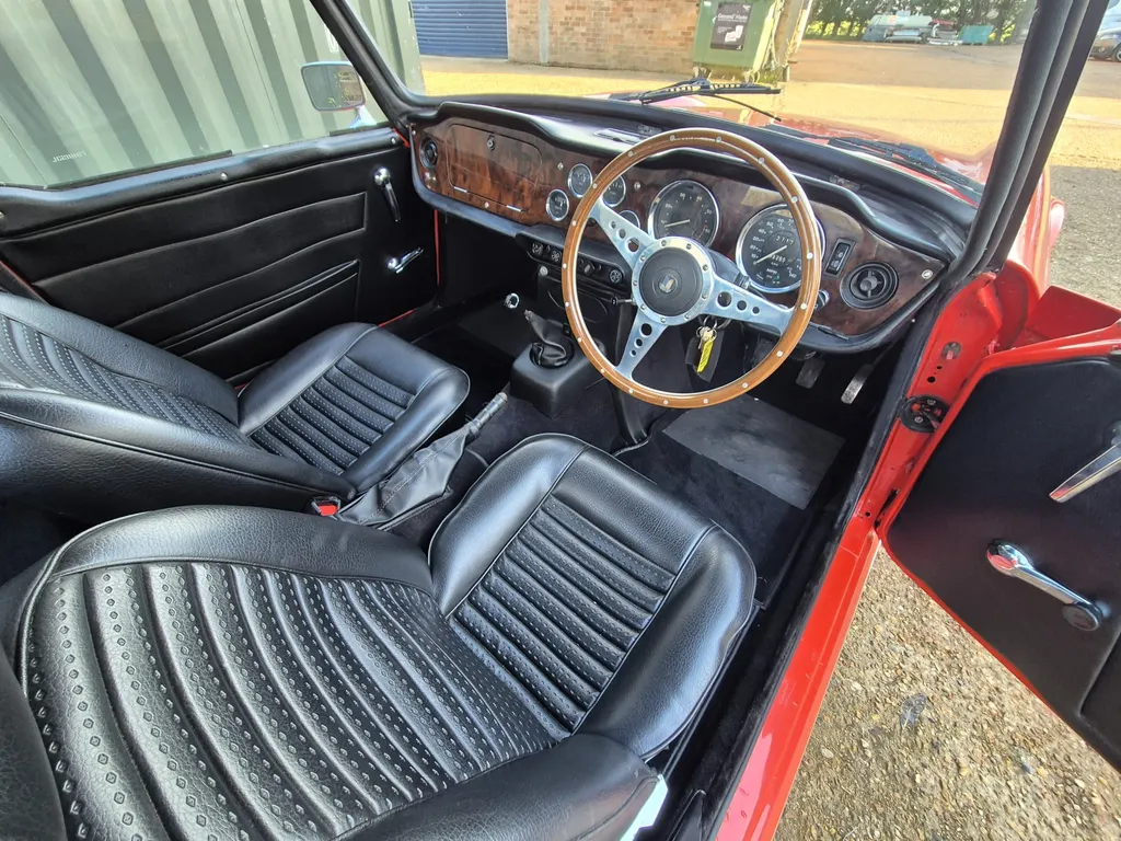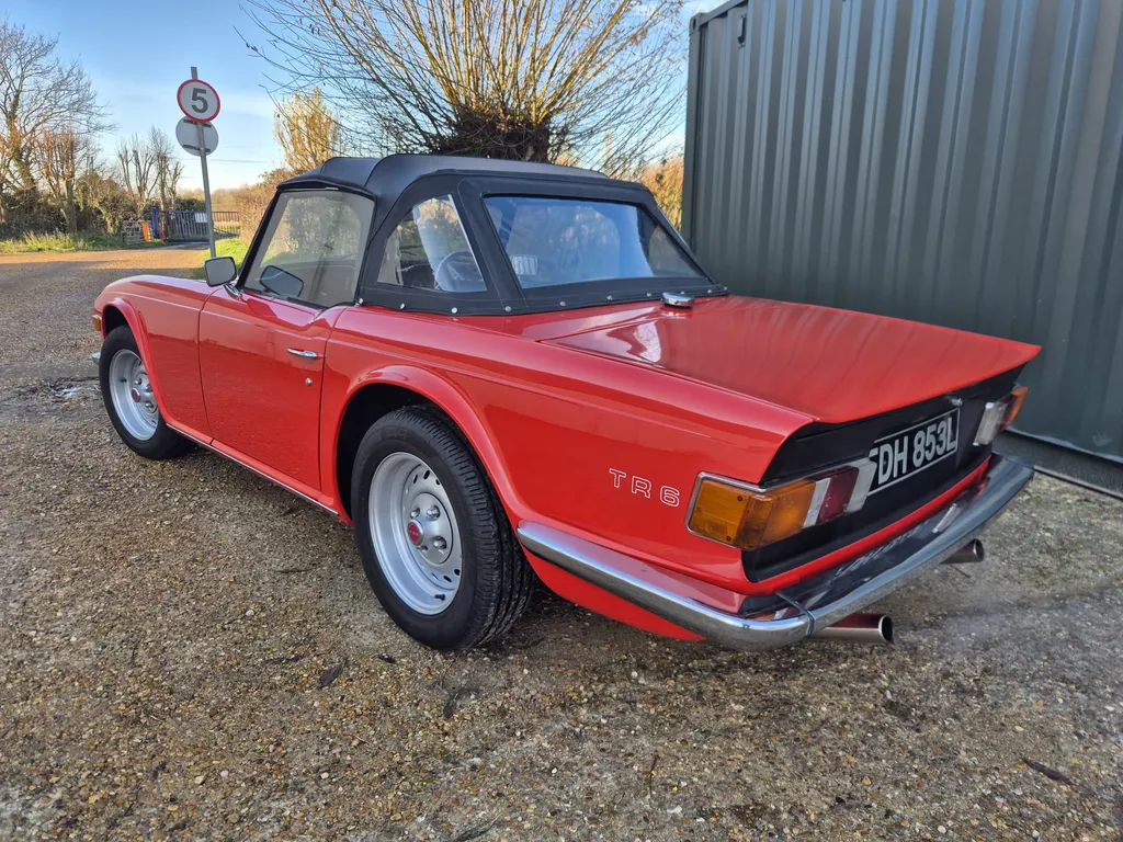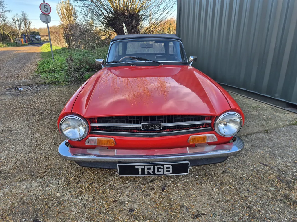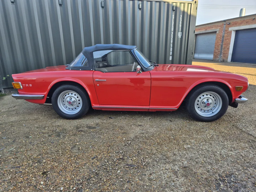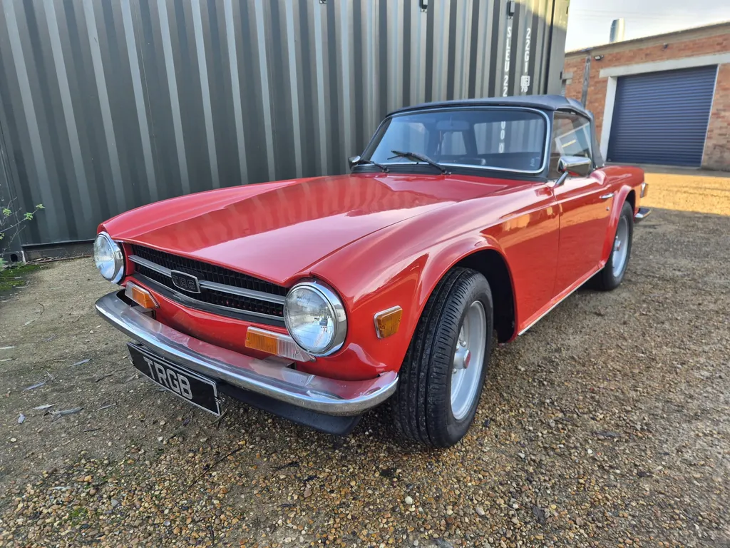 This running and driving project TR6 in Pimento red is the perfect car for a budding enthusiast to improve and become a good Sunday driver. The car starts and runs really well and has a good condition interior with new carpets. Following an inspection we feel the car requires the following work including but not limited to; electrical issues to be sorted, the horn operation, windscreen washers, indicators and brake lights. The suspension work includes trunnion play, trailing arm bushes with play, insecure lever arm and a front wheel bearing with excessive play. The steering will also need attention, with the rack moving in the bushes and the gaiters needing to be replaced. Finally and the most substantial work required are the areas of corrosion in close proximity to the trailing arm mounts. These would all be MOT critical points and would be advised to be fixed immediately. Estimates for parts can be provided upon request. Ramp inspections are welcome. Commission sale, comes with parts discount upon purchase and a years membership to TR Register. £10,995