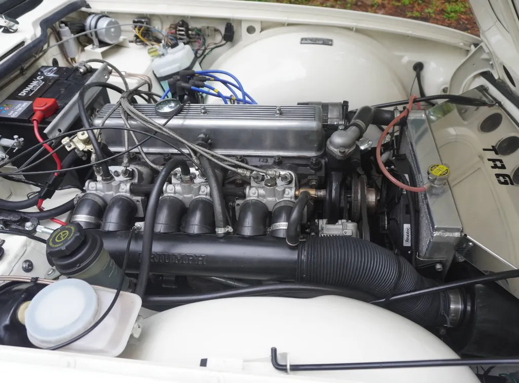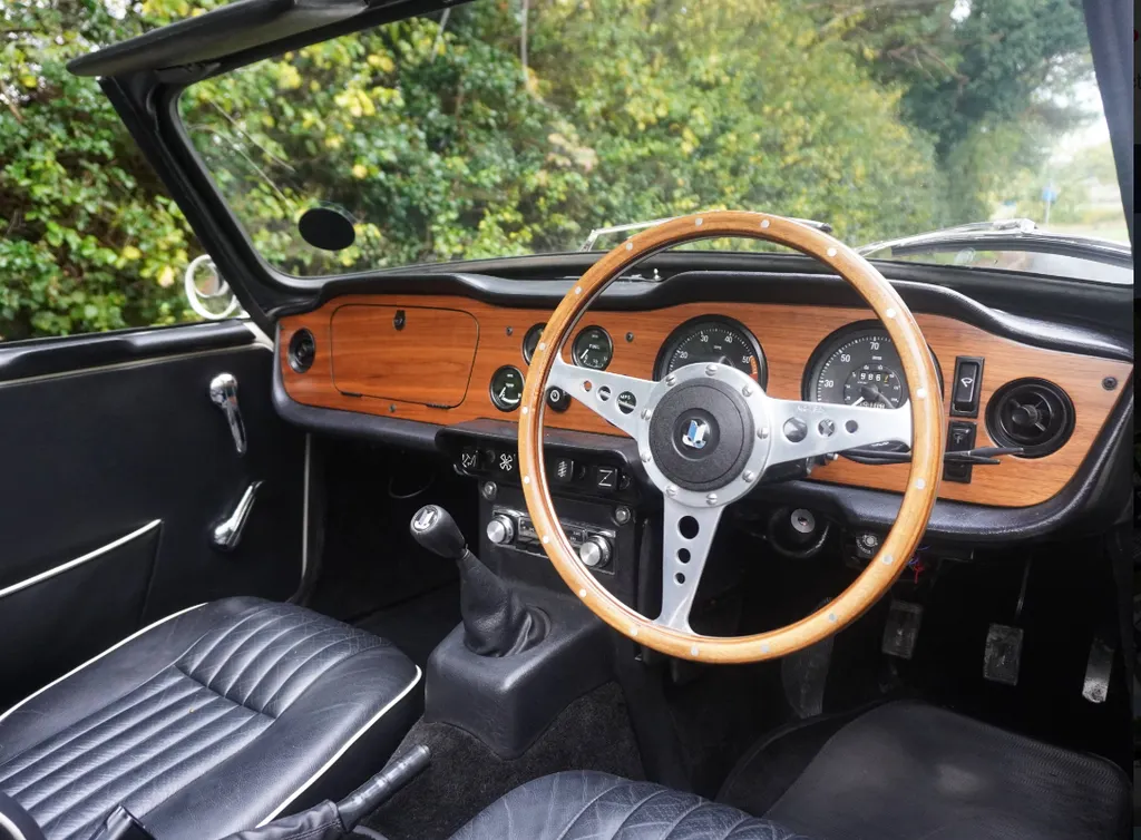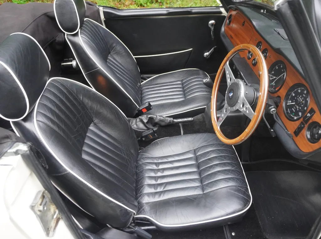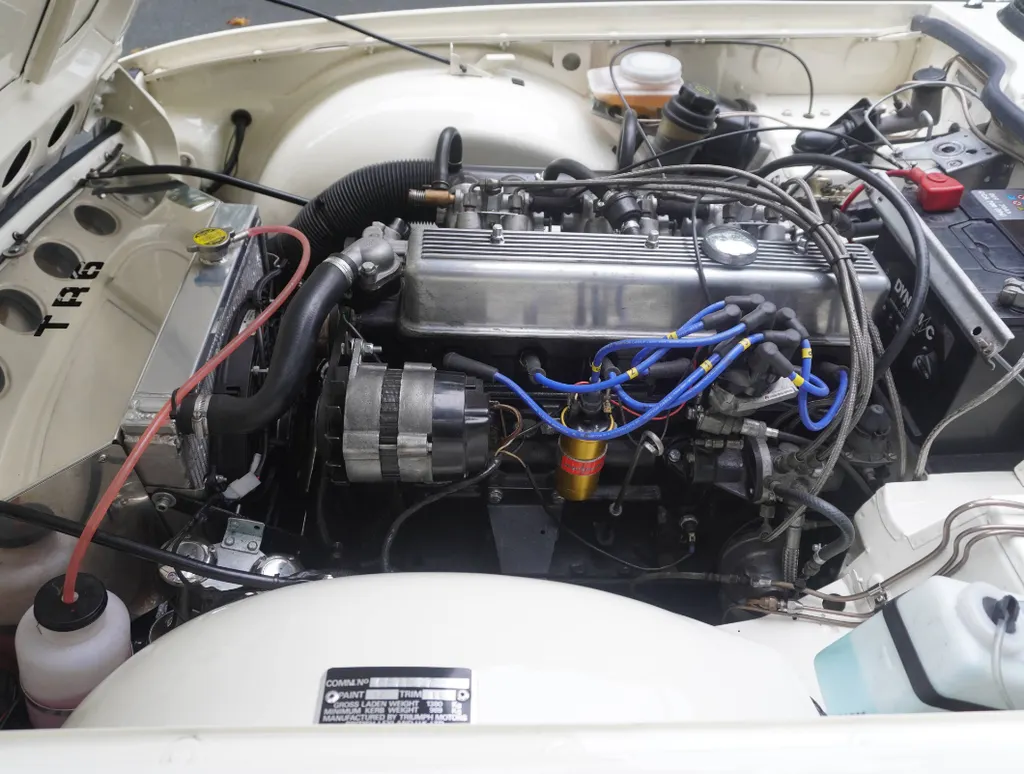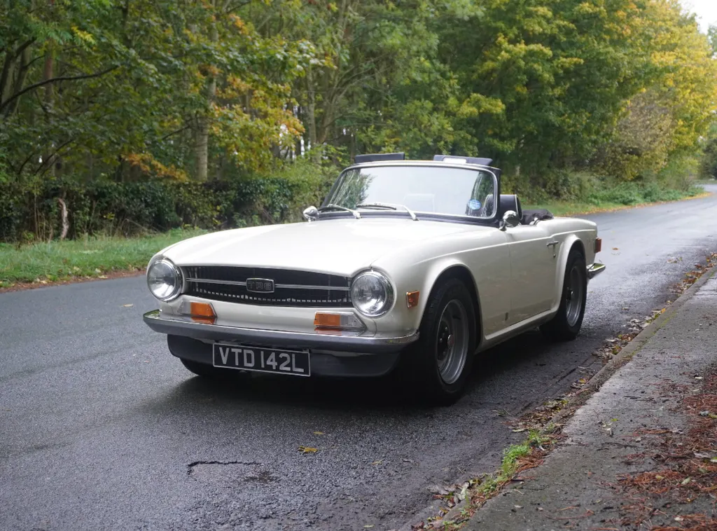 This is a truly exceptional UK Home Market RHD, 150 BHP CP Chassis number Triumph TR6 that we know incredibly well. We first bought this car back in 2003 just a few years after completion of a ten year rebuild to show class condition. The car was subject of a body off restoration with no expense spared and it had covered very few miles when first arriving with us 22 years ago. We sold the car promptly in 2003, and again in 2006 to a Huddersfield based customer who kept the car for 15 years covering around 10,000 miles over this time. Throughout this period the car was maintained by the well known Yorkshire TR Centre. Twenty years or so on since the rebuild, in 2021 the TR6 was ready for paintwork due a dull finish. The car was externally stripped down and treated to a full complete re-paint and bumpers were fully re-chromed. The car was also fully re-commissioned at this point with mechanical work to include a gearbox rebuild (due to weak synromesh), new clutch, rebuilt differential, new injectors, new propshaft, top ball joints, track rod ends, brake discs and pads, wheel bearings, clutch master cylinder, oil cooler, new radiator hoses, new heater valve and five new Pirelli tyres. We then supplied the car to its most recent owner who has enjoyed 6000 miles over four years, and over this period the car has been taken to the next level again. With the original preparation work in 2021, around £30,000 has been spent on this TR6 with the recent owner further improving the car with a full engine rebuild to include fast road camshaft, engine bay re-furbishment and re-paint, new carpets, new boot kit, LED external lights, hazard warning switch, power assisted steering, new dashboard, cleaned gauges and dials, powder coated wheels, and new distributor. As result of the recent expenditure, this is a truly exceptional example. The TR6 has been touring in the UK, recently covered 1300 miles with the European TR Group across Holland Germany and on the road is outstanding. With just a few thousand miles since an engine, gearbox and differential rebuild, the car can be purchased with absolute confidence, further to this the upgrades and cosmetic work gives the car the finish of a much more recent restoration. This is a beautiful example, the bodywork is excellent, as is the chassis and underbody, and the paint finish, brightwork, interior and engine bay are all of a very high standard, as is the high quality hood. With just over 20,000 miles since an older restoration and 6000 miles since the recent major program of work, this is a superb buy in exceptional mechanical condition.