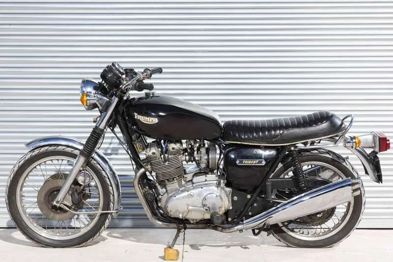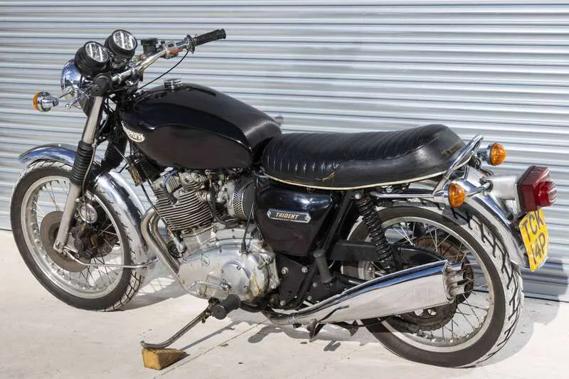 This lot will be auctioned via Iconic Auctioneers, The Iconic Motorcycle Sale at the NEC Classic Motor Show 2025 on Sunday the 9th of November, NEC, Birmingham, B40 1NT. Launched in 1975, the Triumph Trident T160 was the final and most developed version of the iconic British triple Built at a time when Triumph was fighting for survival against an onslaught of Japanese competition, the T160 combined classic British character with long-overdue modern refinements Its 740cc three-cylinder engine, producing around 58bhp, delivered smooth power and a top speed of over 115mph, ensuring it remained a formidable performer on the road Distinguishing features of the T160 included an electric start, left-side gear change and triple disc brakes – a specification that finally brought Triumph’s flagship in line with contemporary expectations Despite its short production run before the closure of the Meriden factory in 1977, the T160 has since earned a reputation as one of the most usable and collectible of the classic British superbikes This matching numbers bike was first registered on 06/051976 and has not been used for the last couple of years, though reportedly has been started up periodically, so require some light recommissioning prior to being returned to the road Supplied with a current V5C (Historic), various old V5s, a folder of receipts and paperwork, a photopcopy of the Triumph Trident and BSA Rocket 3 Service Notes, along with a copy of the Triumph Trident T160 Workshop Manual