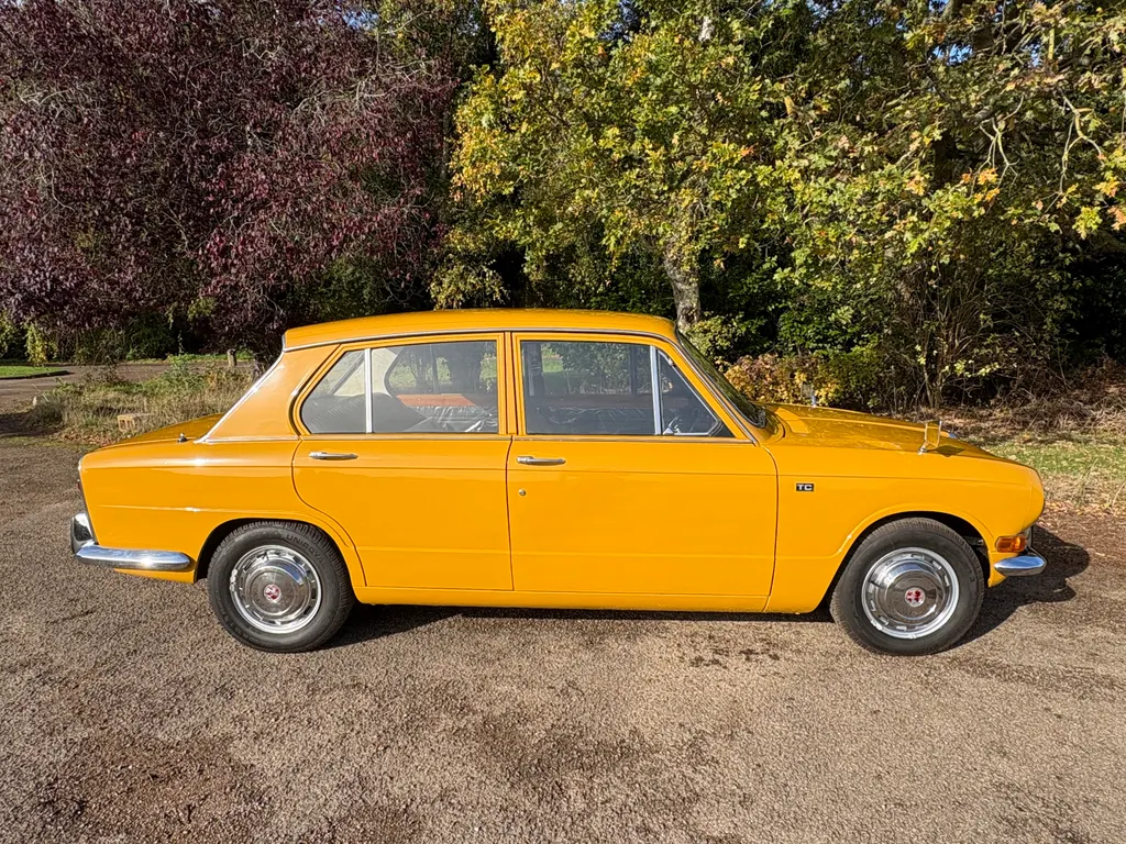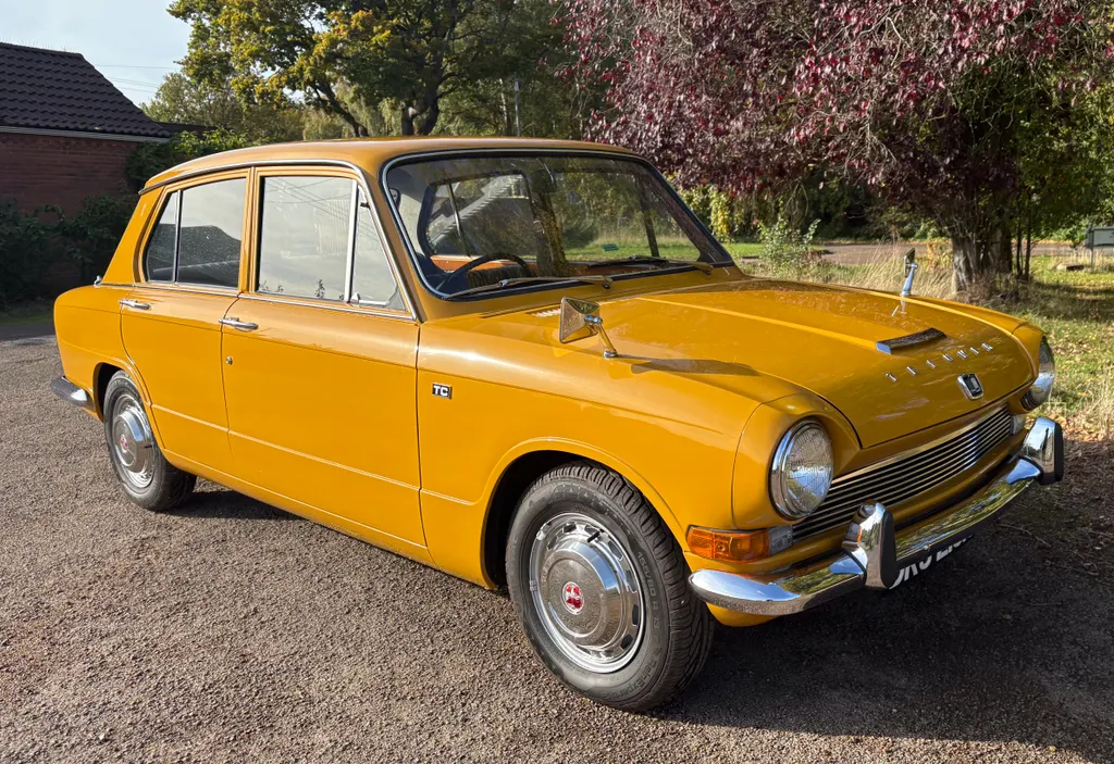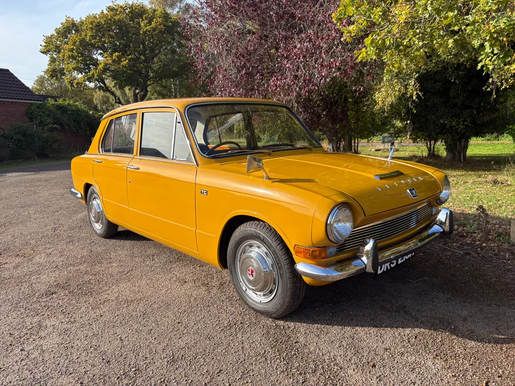 1970 Triumph 1300 TC * ULEZ EXEMPT* ONLY 48, 000 MILES AND TWO OWNERS The triumph 1300 TC was an upgraded model of the original 1300, launched in 1967 with twin carburettors, servo assisted brakes and engine modifications for extra performance. 35, 342 TC models were produced and it is believed only 26 remain on the road today. This stunning example was supplied by B. L main agents W. F Parr and Sons to its first owner who kept the car until 2024 and serviced by them with the last service at 35, 293 miles. In time warp condition never had any welding the interior is completely original with the new car protection covers still on the door cards and the carpets still fresh. Refinished in its original Saffron Yellow with unmarked Black Trim. Supplied with original Triumph 1300 owner's handbook, original Triumph servicing schedules and Heritage trust certificate issued in October 24. Becoming very rare to find in this condition. Established in 1972 Kim Cairns is a family run business offering a wealth of experience and professionalism. In addition to car sales we have an excellent after sales centre, all of our services and MOTs etc are done in house. Free delivery to England, Wales or to any UK port. International transportation can be arranged. Part exchanges of both classic and modern cars welcome. Licensed credit broker dealing with major finance houses.