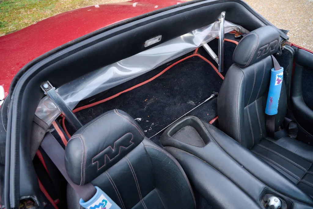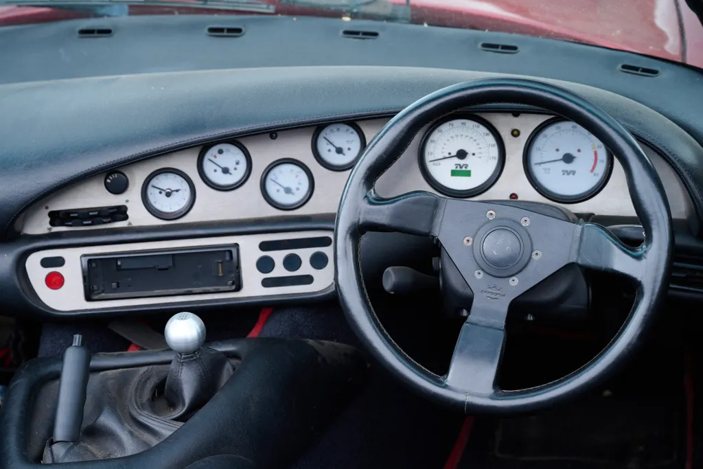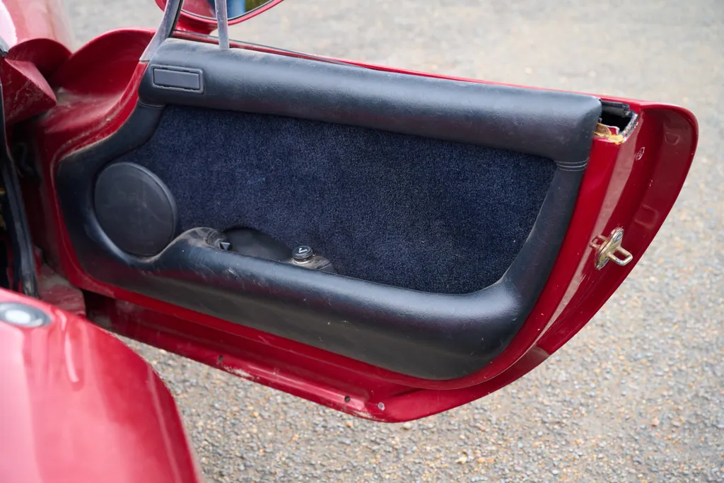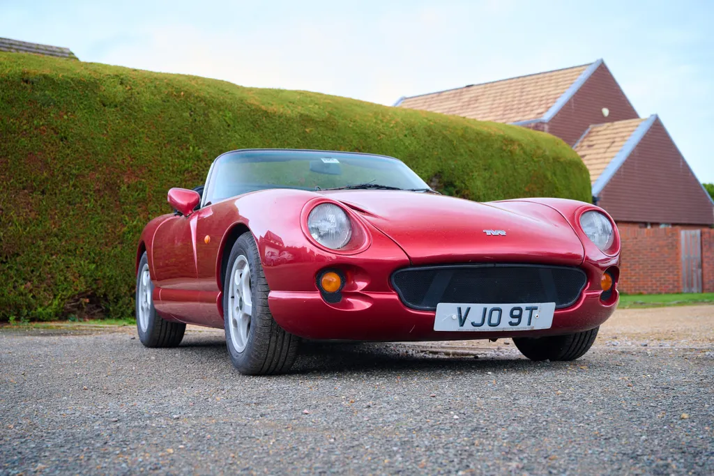 This example was purchased by our client's late husband in March 1997 and was his pride and joy during his ownership. It is presented in metallic red with black leather interior and has a black hood with removable targa top. The history file has various receipts for work carried out over the years, including the most recent invoice for £1,376 for a light service by FR Auto Solutions Ltd in High Wycombe carried out in June this year and it has just had a new battery fitted. It is also important to point out that a new odometer was fitted at 4,267 miles. Although the car is SORN, it has a new MoT test certificate which expires on 4th September 2026. The paintwork has suffered somewhat in various areas which can be seen in the photos and because of this, this British sportscar is being offered without reserve. Consigned by James Good