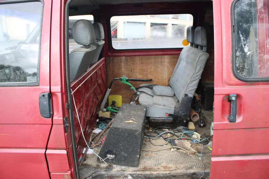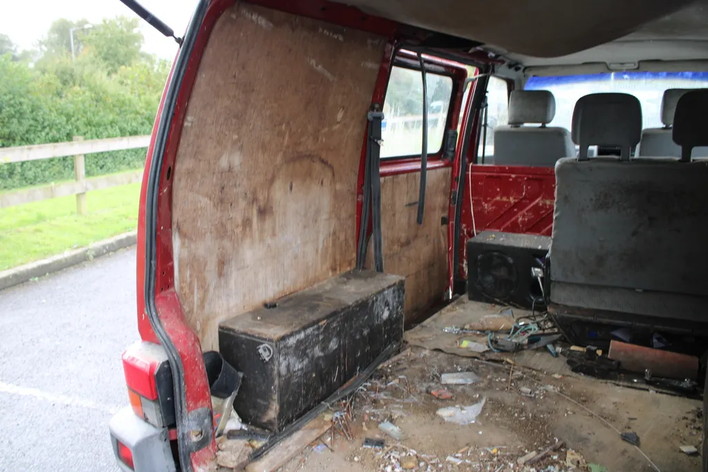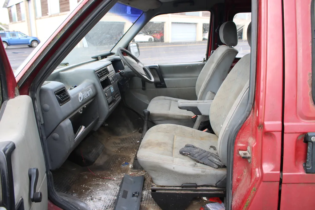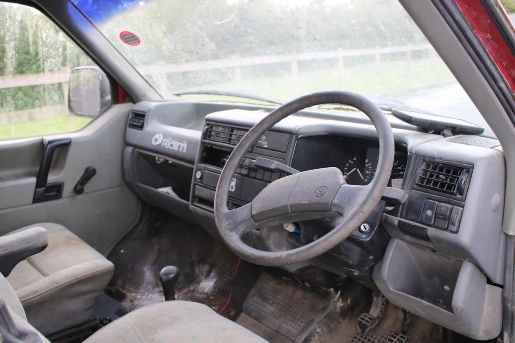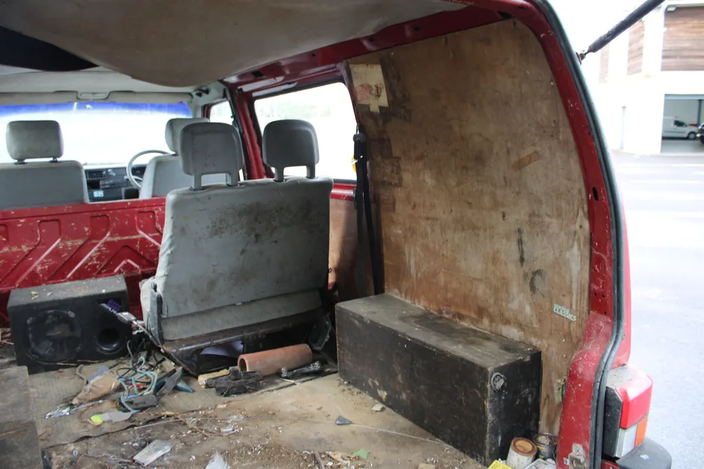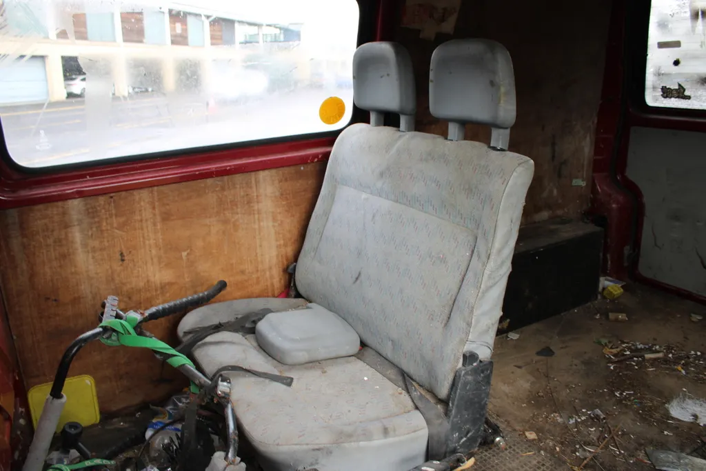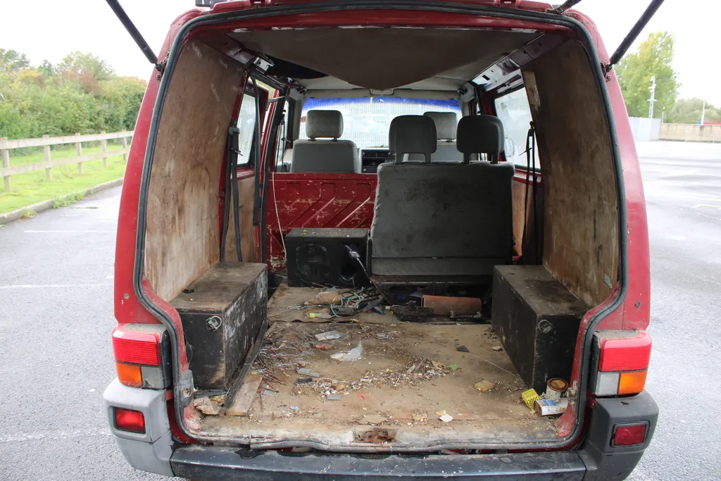 Current owner since 2010. Unused since early 2014. Vendor states: 5 seats, turns over freely. Suspected old diesel left in tank. Original roof bars, sliding door, arm rests on front seats.