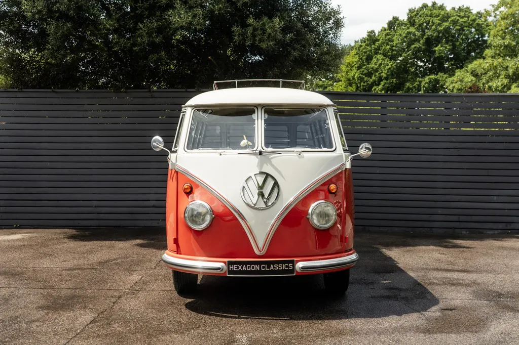 Hexagon Classics are delighted to offer this truly iconic and beautifully restored VW Type 2 23-window Samba; a cultural icon from the golden age of motoring and the most desirable of the classic VW bus range. Finished in the timeless Orange over Cream colour scheme, this left-hand-drive example exudes 1950s charm with its two-tone finish and full-length folding sunroof. Known affectionately as the “Samba,” this top-of-the-line model features 23 factory windows, including the signature eight skylights and split front screen, along with the iconic "barn door" side entrance. Originally introduced for alpine touring, the 23-window Samba has become a favourite among collectors and enthusiasts alike. SPECIFICATION INCUDES :- 1600 cc ENGINE, BLAUPUNKT CLASSIC RADIO WITH I PHONE CONNECTION, FULL-LENGTH FOLDING SUNROOF, SEALED BEAM HEADLIGHTS, RED TAIL LIGHTS, ROOF RACK. TRACKER AND IMMOBILISER ALSO FITTED. This example has been subject to a meticulous restoration by Dutch marque specialists Kieft en Klok at a cost of more than £130,000 with a keen focus on preserving original details while enhancing drivability. The cream vinyl interior has been retrimmed to a high standard, providing both comfort and period-correct aesthetics. A 1600cc engine was then fitted by the VW Engine Co, Keston, to provide additional torque and power. The first generation of the Volkswagen Type 2 with the split windshield, informally called the Microbus, Splitscreen, or “Splittie” among modern fans, was produced from May1950 through to the end of the 1967 model year when the German T1 production line stopped. Unlike other rear-engined Volkswagens, which evolved constantly over time but never saw the introduction of all-new models, the Transporter not only evolved, but was completely revised periodically. The Microbus became a huge sales hit worldwide, and events such as the US music festival Woodstock, which was held in the summer of 1969, saw plenty of brightly-painted hippie vans transporting excited young crowds. Supplied new in Kassel,April 1958, before export to California, the Type 2 was imported to the UK in 2005 and registered in the UK in 2014 after restoration. It is supplied with history file, restoration invoices, VW build certificate and driver’s handbook.