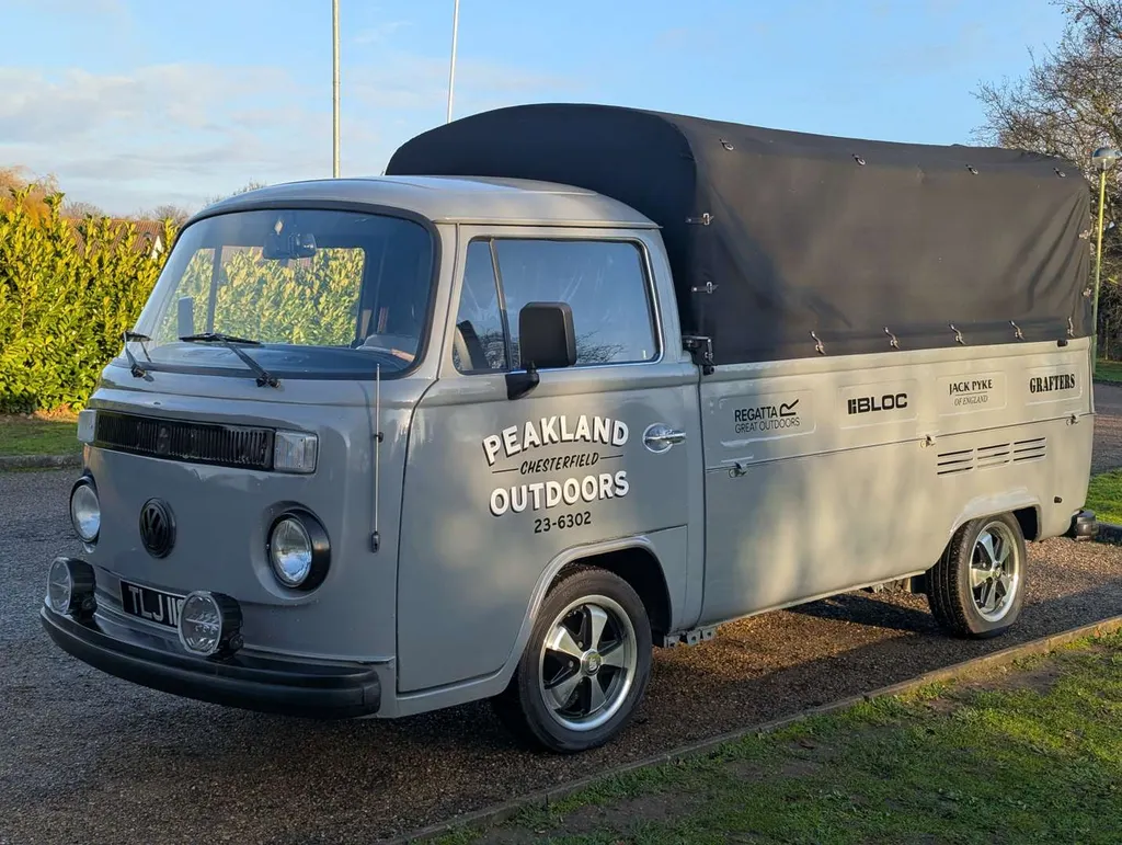This eye-catching VW Type 2, in rare pickup form, is finished in Nardo Grey and sits on Porsche Classic Fuchs alloy wheels. It's equipped with many performance enhancements, including a recently-fitted 2.3-litre high-performance crate engine from VW Speed Shop, with Weber throttle bodies and various Porsche upgrades, coupled to a Pro-Street gearbox. Other upgrades include electric power steering, high-torque starter motor, Fosseyway performance brakes and a recent petrol tank. The MoT is valid to 27th March 2026, and the odometer displays 72,953.The interior features an under-seat propex heater, front and rear cameras, heated front screen and sports steering wheel. Lighting has also been upgraded with a Sentinel front driving lamp, DRL/amber front indicators, DRLs in the front bumper, light-up VW logo and underbody lighting. The rear body has been finished with a slatted wooden floor and a unique hooped canvas cover, and a slide-out cargo tray is hidden inside the treasure chest door.Paperwork includes an extensive collection of receipts detailing the £30k which has been spent in the last few years. Also present is a Volkswagen heritage certificate which tell us the vehicle was manufactured in 1977 and delivered to Greece. It was first registered in the UK in 2019, and the V5C indicates 2 keepers since then. A valuation certificate from 2022 values the vehicle at £30k, which was before £16k was spent on the new engine and gearbox. Spare keys are also present.In the vendor's words: “This is a unique and fascinating VW, previously used as a company promotional vehicle, although it would suit any VW fanatic looking for something extra special or out of the ordinary.” Not specified