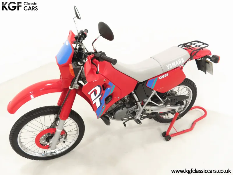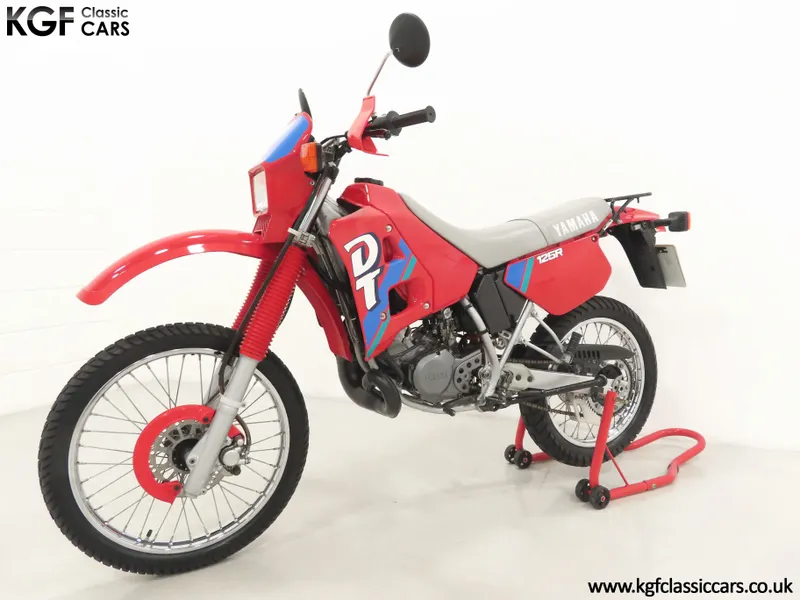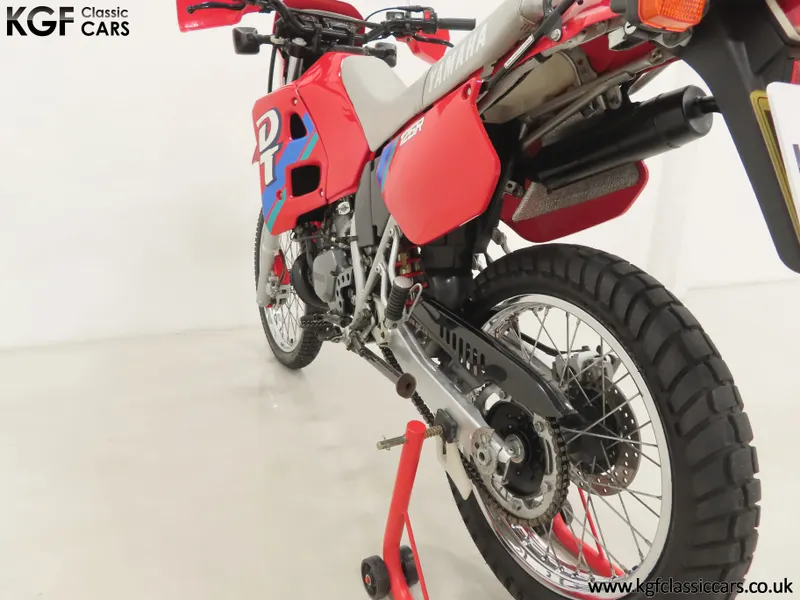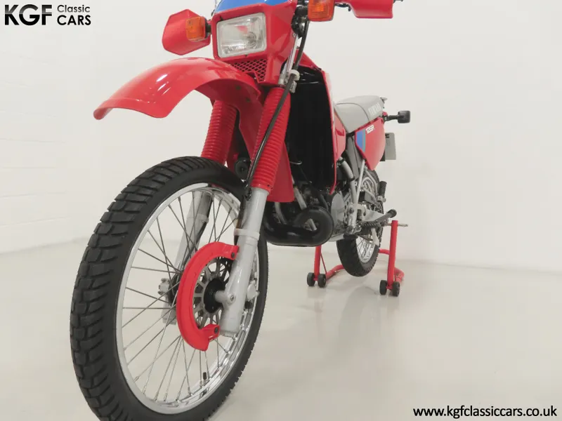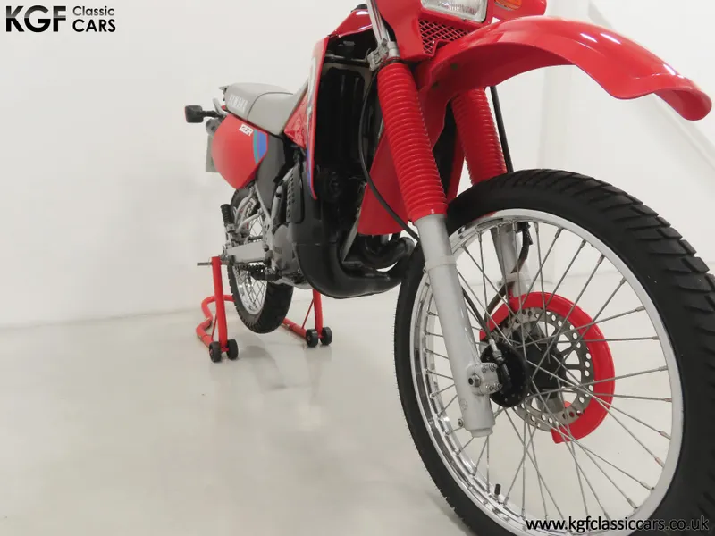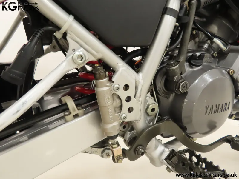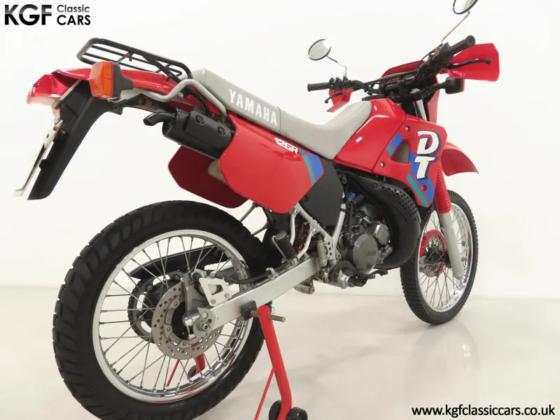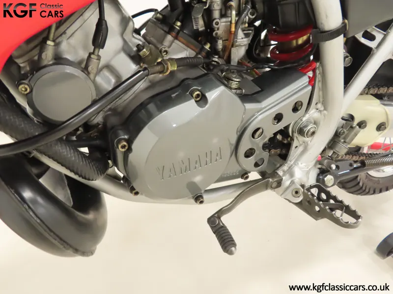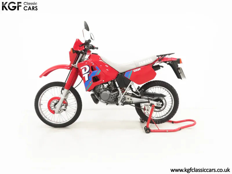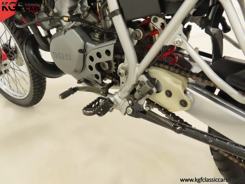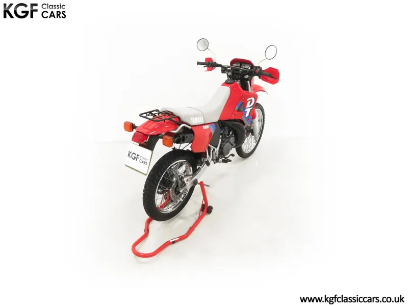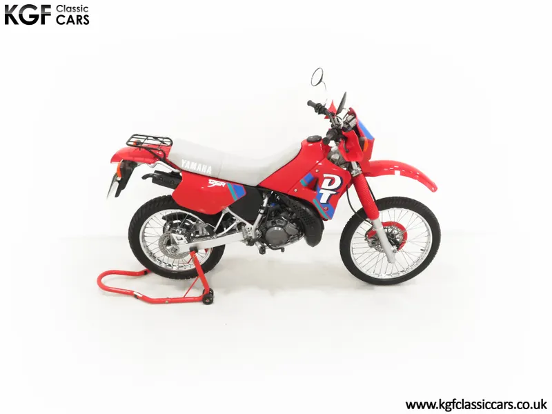 FOR SALE A stunningly pampered Yamaha DT125R stored in the owners lounge! EQUIPMENT Monocross rear suspension with De Carbon type shock absorber, box-section swinging arm, long-travel front forks with 41mm stanchions, lockable fuel filler cap, speedometer, tachometer, water temperature gauge, ignition switch incorporating park light, turn signal switch, headlight switch, neutral indicator, two-stroke oil light, horn, steering lock, rear luggage rack, rear footrests, helmet holder. EXTERIOR Based on race winning YZ motorcross machinery, the Yamaha DT125R was a favoured choice amongst both first time riders and experienced motorcyclists. This stunning original example presents incredibly well with a gloss shine to the bright red 10 litre fuel tank and vibrant factory decals to all undamaged plastic panels. The deeply padded dual light grey seat has no wear or rips with a clear white Yamaha logo and all light units are factory fitment. Honest markings to areas such as the side stand and luggage rack are entirely forgiven and even the olive drab finish is present on components, long lost on poorly stored and restored examples. All dials and gauges function correctly and the switchgear looks like new along with the footrest and gearchange rubbers! The rear mudguard is uncut. It is hard to imagine a nicer existing example of this successful machine. ENGINE & TRANSMISSION Powered by a liquid cooled 2 stroke motor, the DT breathes through a 28mm flat slide Mikuni carburettor which feeds the fuel/air mix straight into the crankcases to give instant throttle response. Advanced features such Yamaha Power Valve System, (YPVS) and Yamaha Energy Induction System, (YEIS), gives strong low and mid-range torque combined with a great top end powerband! Being a French European model, it benefits from being unrestricted. The 6-speed transmission is smooth and precise and helps keep the engine in the sweet spot. WHEELS, TYRES & BRAKES The Takasago chrome wheels have a brilliant mirror shine with slight markings and are shod in premium Continental Escape measuring 2.75-21 upfront and 4.10-18 to the rear for great all-round performance. The DT125R features YZ style drilled discs at the front and rear to dissipate heat, measuring 230mm up front and 220mm to the rear and uses the same caliper and master cylinder as YZ motorcross racers to offer controllable stopping power. HISTORY FILE This fabulous Yamaha DT125R was registered on the 24th June 1991 and was sourced by Unit 5 Motocyles for a discerning bike collector wanting the very best example. Residing on display in a French motorcycles dealers showroom as a one owner bike with only 2,039 miles, it was purchased and UK registered in 2016 and owned by the same collector ever since. On display in his lounge it has been well maintained with light regular use and now has a documented 3,579 miles, (5,761km), and performs fabulously, especially being an unrestricted full power YPVS model! The owners testimonial is also included with the history file. Supplied with its handbook, purchase documents, previous MOT certificates, spare keys and brochures, it is ready for the next appreciative enthusiast. MOT July 2026, HPI Clear