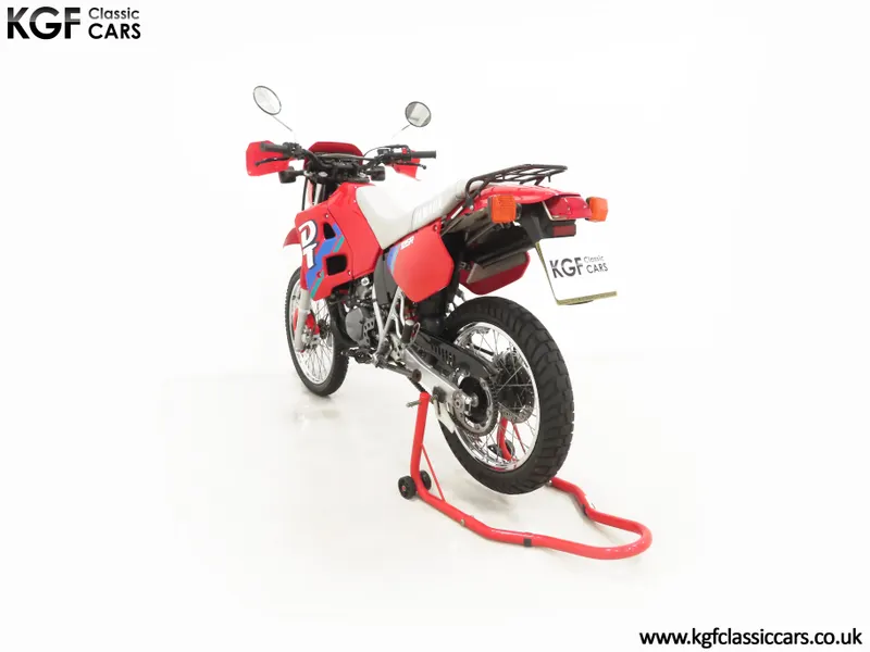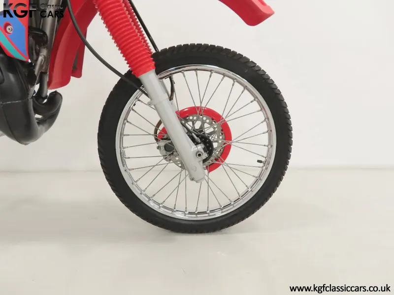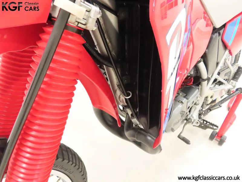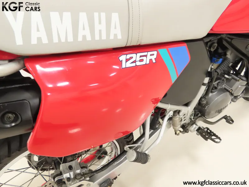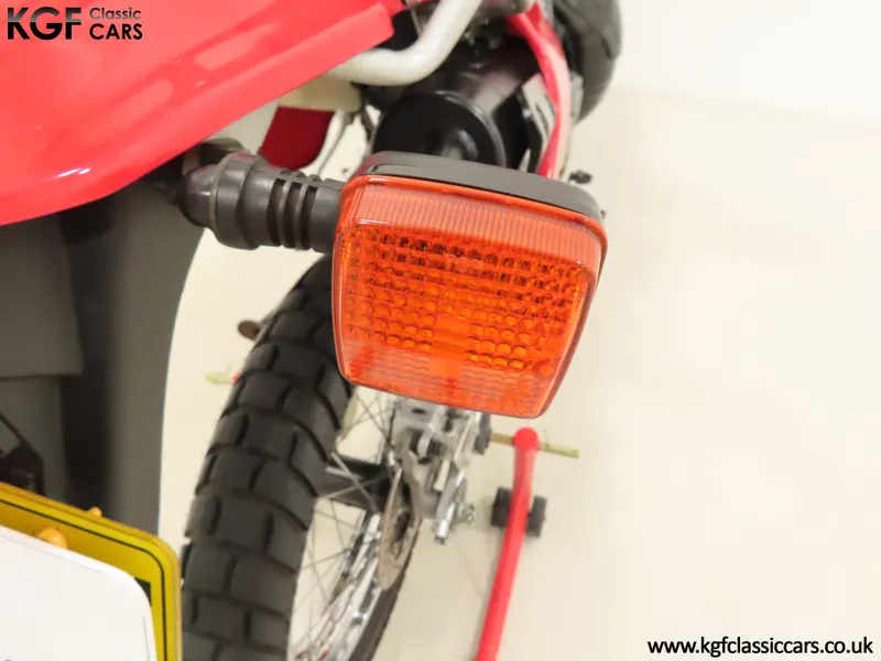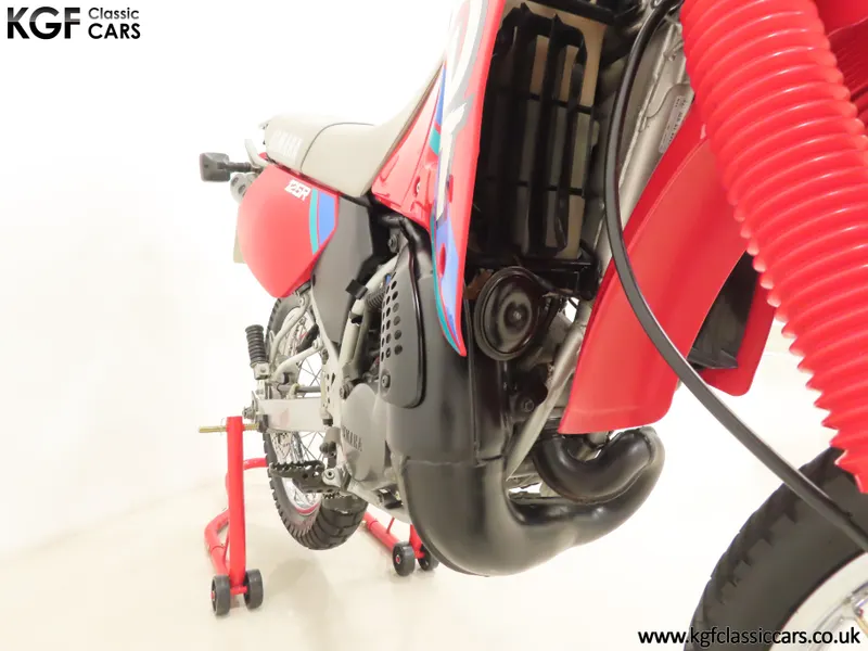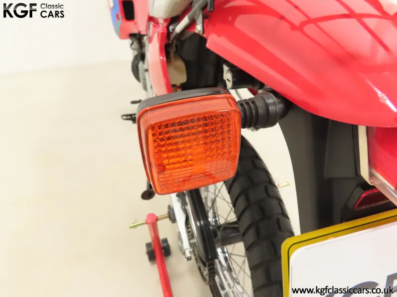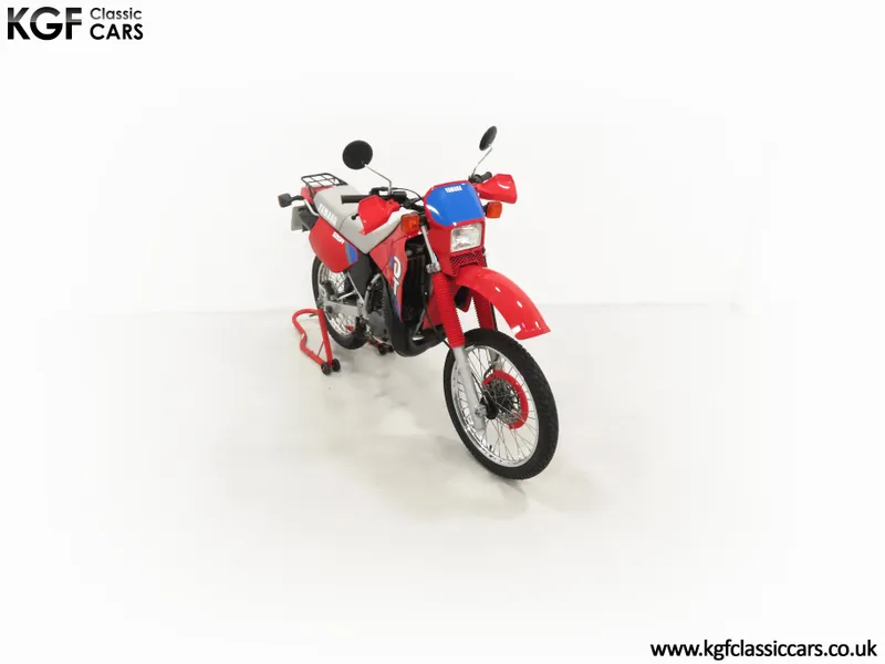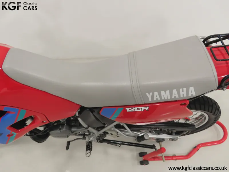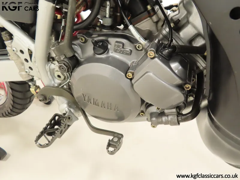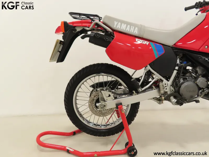 FOR SALE A stunningly pampered Yamaha DT125R stored in the owners lounge! EQUIPMENT Monocross rear suspension with De Carbon type shock absorber, box-section swinging arm, long-travel front forks with 41mm stanchions, lockable fuel filler cap, speedometer, tachometer, water temperature gauge, ignition switch incorporating park light, turn signal switch, headlight switch, neutral indicator, two-stroke oil light, horn, steering lock, rear luggage rack, rear footrests, helmet holder. EXTERIOR Based on race winning YZ motorcross machinery, the Yamaha DT125R was a favoured choice amongst both first time riders and experienced motorcyclists. This stunning original example presents incredibly well with a gloss shine to the bright red 10 litre fuel tank and vibrant factory decals to all undamaged plastic panels. The deeply padded dual light grey seat has no wear or rips with a clear white Yamaha logo and all light units are factory fitment. Honest markings to areas such as the side stand and luggage rack are entirely forgiven and even the olive drab finish is present on components, long lost on poorly stored and restored examples. All dials and gauges function correctly and the switchgear looks like new along with the footrest and gearchange rubbers! The rear mudguard is uncut. It is hard to imagine a nicer existing example of this successful machine. ENGINE & TRANSMISSION Powered by a liquid cooled 2 stroke motor, the DT breathes through a 28mm flat slide Mikuni carburettor which feeds the fuel/air mix straight into the crankcases to give instant throttle response. Advanced features such Yamaha Power Valve System, (YPVS) and Yamaha Energy Induction System, (YEIS), gives strong low and mid-range torque combined with a great top end powerband! Being a French European model, it benefits from being unrestricted. The 6-speed transmission is smooth and precise and helps keep the engine in the sweet spot. WHEELS, TYRES & BRAKES The Takasago chrome wheels have a brilliant mirror shine with slight markings and are shod in premium Continental Escape measuring 2.75-21 upfront and 4.10-18 to the rear for great all-round performance. The DT125R features YZ style drilled discs at the front and rear to dissipate heat, measuring 230mm up front and 220mm to the rear and uses the same caliper and master cylinder as YZ motorcross racers to offer controllable stopping power. HISTORY FILE This fabulous Yamaha DT125R was registered on the 24th June 1991 and was sourced by Unit 5 Motocyles for a discerning bike collector wanting the very best example. Residing on display in a French motorcycles dealers showroom as a one owner bike with only 2,039 miles, it was purchased and UK registered in 2016 and owned by the same collector ever since. On display in his lounge it has been well maintained with light regular use and now has a documented 3,579 miles, (5,761km), and performs fabulously, especially being an unrestricted full power YPVS model! The owners testimonial is also included with the history file. Supplied with its handbook, purchase documents, previous MOT certificates, spare keys and brochures, it is ready for the next appreciative enthusiast. MOT July 2026, HPI Clear