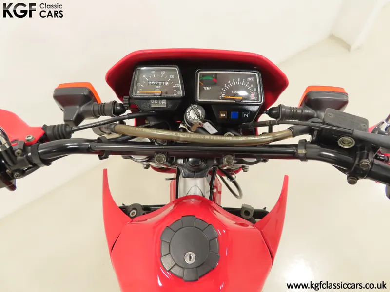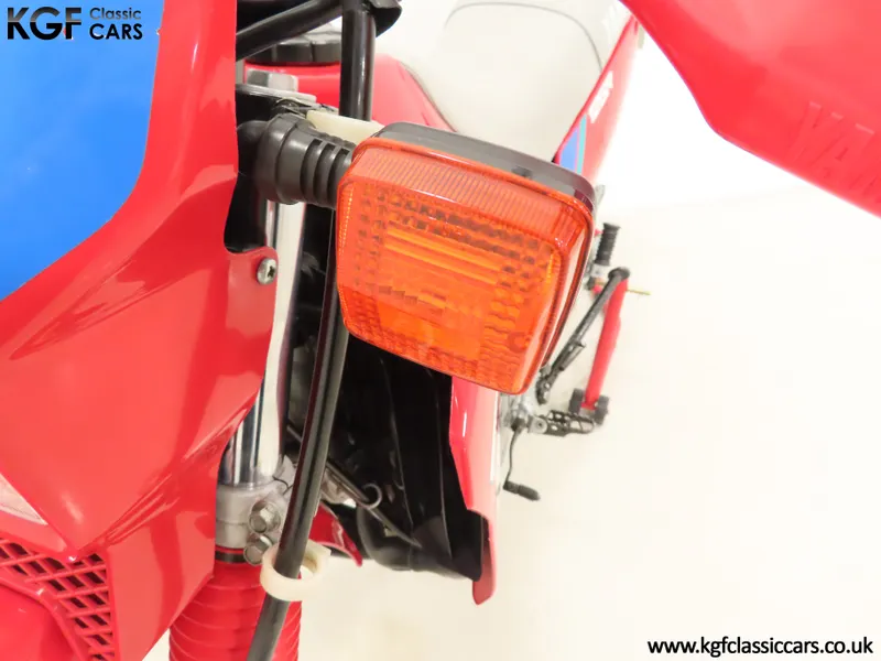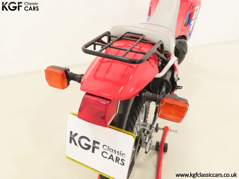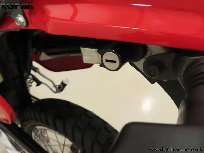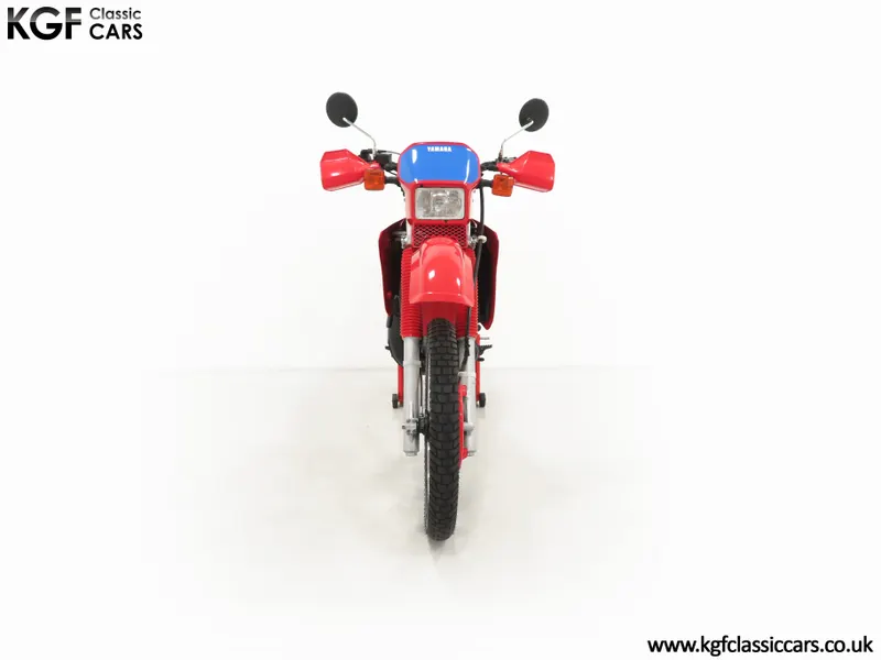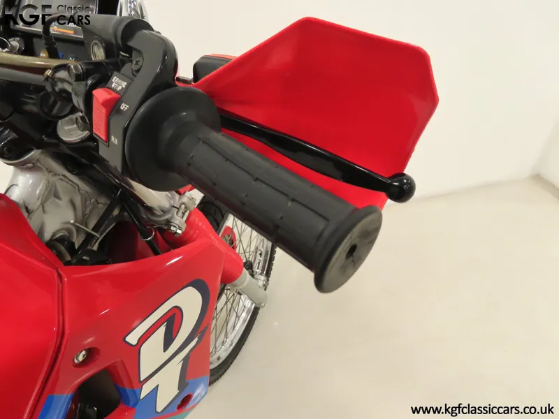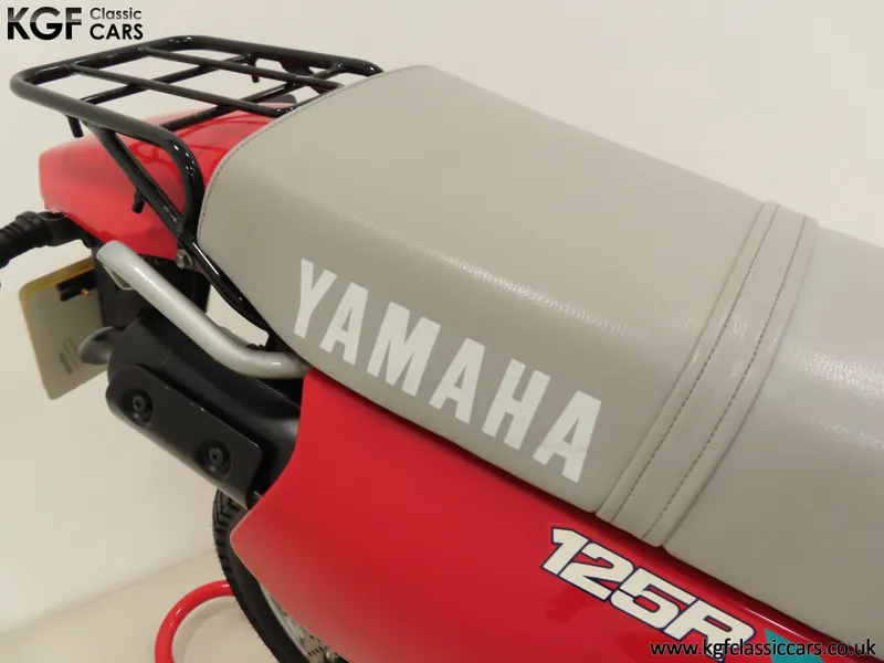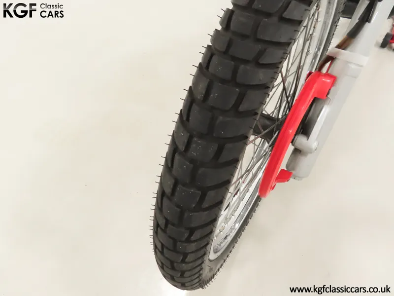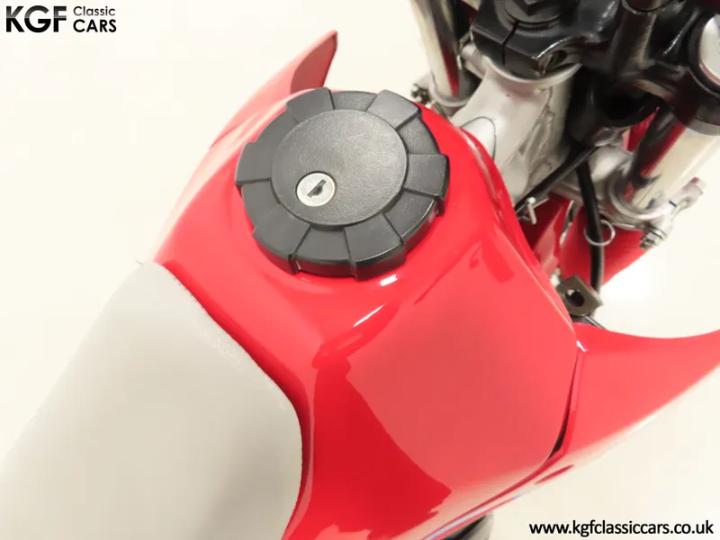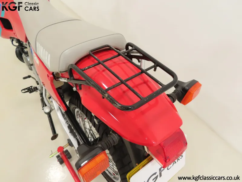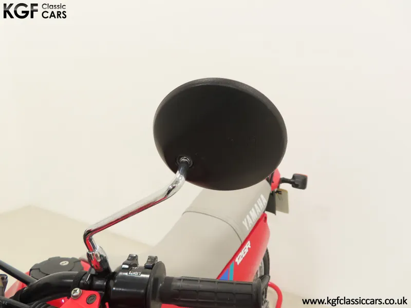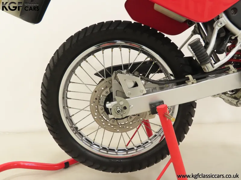 FOR SALE A stunningly pampered Yamaha DT125R stored in the owners lounge! EQUIPMENT Monocross rear suspension with De Carbon type shock absorber, box-section swinging arm, long-travel front forks with 41mm stanchions, lockable fuel filler cap, speedometer, tachometer, water temperature gauge, ignition switch incorporating park light, turn signal switch, headlight switch, neutral indicator, two-stroke oil light, horn, steering lock, rear luggage rack, rear footrests, helmet holder. EXTERIOR Based on race winning YZ motorcross machinery, the Yamaha DT125R was a favoured choice amongst both first time riders and experienced motorcyclists. This stunning original example presents incredibly well with a gloss shine to the bright red 10 litre fuel tank and vibrant factory decals to all undamaged plastic panels. The deeply padded dual light grey seat has no wear or rips with a clear white Yamaha logo and all light units are factory fitment. Honest markings to areas such as the side stand and luggage rack are entirely forgiven and even the olive drab finish is present on components, long lost on poorly stored and restored examples. All dials and gauges function correctly and the switchgear looks like new along with the footrest and gearchange rubbers! The rear mudguard is uncut. It is hard to imagine a nicer existing example of this successful machine. ENGINE & TRANSMISSION Powered by a liquid cooled 2 stroke motor, the DT breathes through a 28mm flat slide Mikuni carburettor which feeds the fuel/air mix straight into the crankcases to give instant throttle response. Advanced features such Yamaha Power Valve System, (YPVS) and Yamaha Energy Induction System, (YEIS), gives strong low and mid-range torque combined with a great top end powerband! Being a French European model, it benefits from being unrestricted. The 6-speed transmission is smooth and precise and helps keep the engine in the sweet spot. WHEELS, TYRES & BRAKES The Takasago chrome wheels have a brilliant mirror shine with slight markings and are shod in premium Continental Escape measuring 2.75-21 upfront and 4.10-18 to the rear for great all-round performance. The DT125R features YZ style drilled discs at the front and rear to dissipate heat, measuring 230mm up front and 220mm to the rear and uses the same caliper and master cylinder as YZ motorcross racers to offer controllable stopping power. HISTORY FILE This fabulous Yamaha DT125R was registered on the 24th June 1991 and was sourced by Unit 5 Motocyles for a discerning bike collector wanting the very best example. Residing on display in a French motorcycles dealers showroom as a one owner bike with only 2,039 miles, it was purchased and UK registered in 2016 and owned by the same collector ever since. On display in his lounge it has been well maintained with light regular use and now has a documented 3,579 miles, (5,761km), and performs fabulously, especially being an unrestricted full power YPVS model! The owners testimonial is also included with the history file. Supplied with its handbook, purchase documents, previous MOT certificates, spare keys and brochures, it is ready for the next appreciative enthusiast. MOT July 2026, HPI Clear