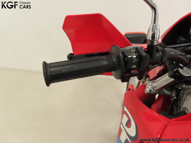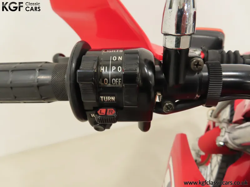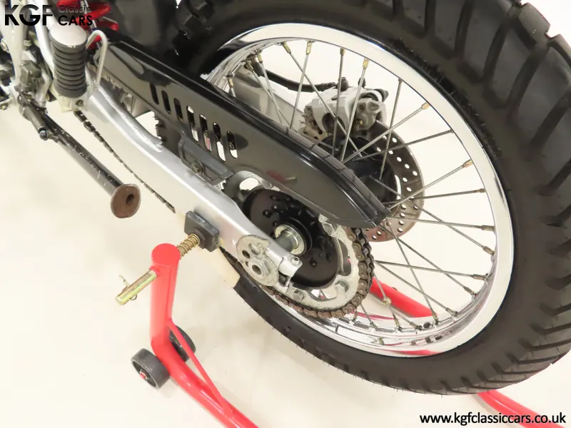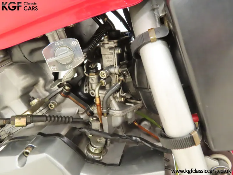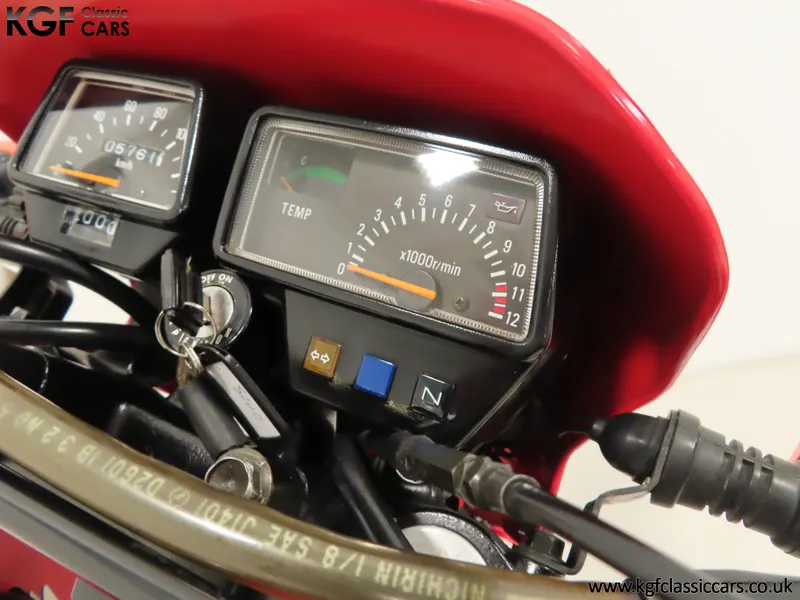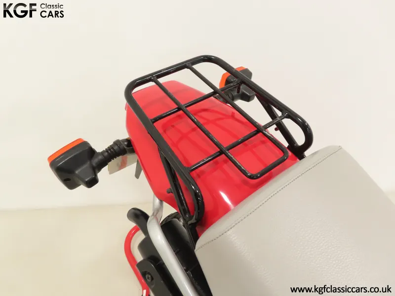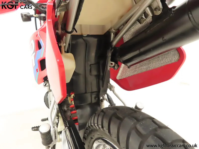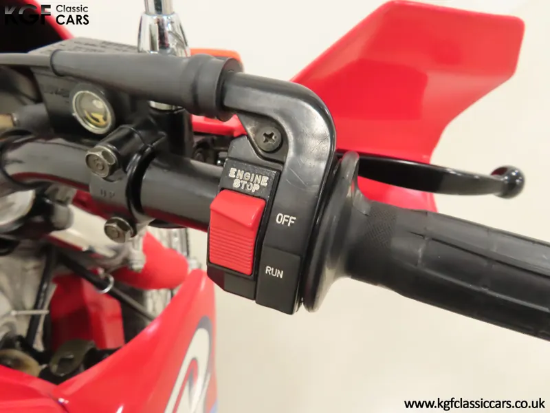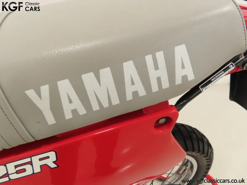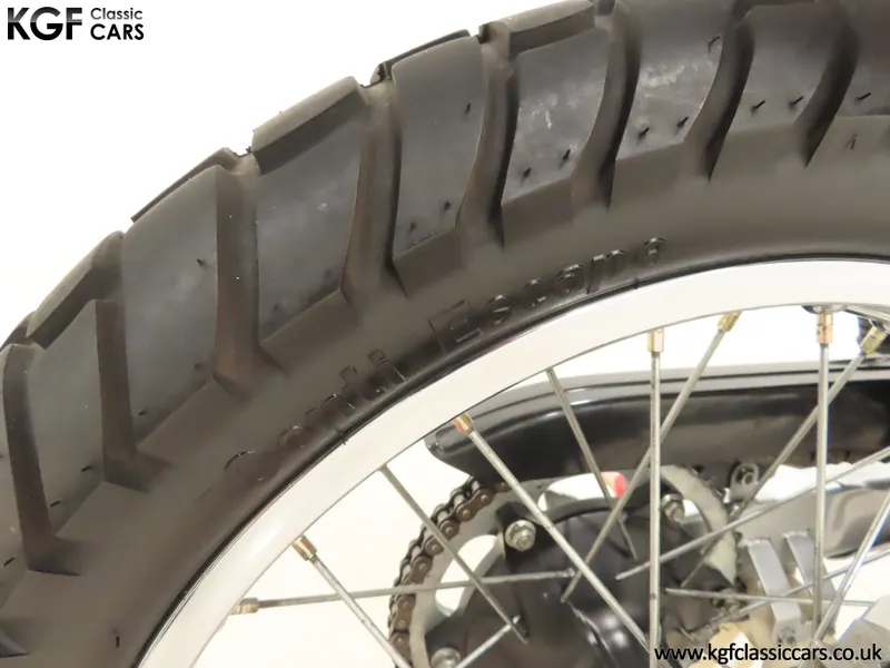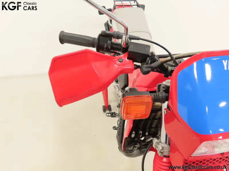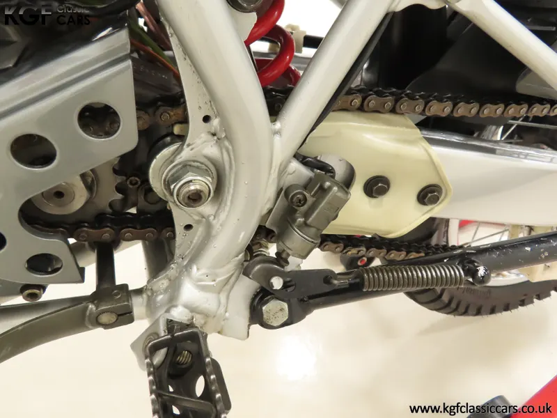 FOR SALE A stunningly pampered Yamaha DT125R stored in the owners lounge! EQUIPMENT Monocross rear suspension with De Carbon type shock absorber, box-section swinging arm, long-travel front forks with 41mm stanchions, lockable fuel filler cap, speedometer, tachometer, water temperature gauge, ignition switch incorporating park light, turn signal switch, headlight switch, neutral indicator, two-stroke oil light, horn, steering lock, rear luggage rack, rear footrests, helmet holder. EXTERIOR Based on race winning YZ motorcross machinery, the Yamaha DT125R was a favoured choice amongst both first time riders and experienced motorcyclists. This stunning original example presents incredibly well with a gloss shine to the bright red 10 litre fuel tank and vibrant factory decals to all undamaged plastic panels. The deeply padded dual light grey seat has no wear or rips with a clear white Yamaha logo and all light units are factory fitment. Honest markings to areas such as the side stand and luggage rack are entirely forgiven and even the olive drab finish is present on components, long lost on poorly stored and restored examples. All dials and gauges function correctly and the switchgear looks like new along with the footrest and gearchange rubbers! The rear mudguard is uncut. It is hard to imagine a nicer existing example of this successful machine. ENGINE & TRANSMISSION Powered by a liquid cooled 2 stroke motor, the DT breathes through a 28mm flat slide Mikuni carburettor which feeds the fuel/air mix straight into the crankcases to give instant throttle response. Advanced features such Yamaha Power Valve System, (YPVS) and Yamaha Energy Induction System, (YEIS), gives strong low and mid-range torque combined with a great top end powerband! Being a French European model, it benefits from being unrestricted. The 6-speed transmission is smooth and precise and helps keep the engine in the sweet spot. WHEELS, TYRES & BRAKES The Takasago chrome wheels have a brilliant mirror shine with slight markings and are shod in premium Continental Escape measuring 2.75-21 upfront and 4.10-18 to the rear for great all-round performance. The DT125R features YZ style drilled discs at the front and rear to dissipate heat, measuring 230mm up front and 220mm to the rear and uses the same caliper and master cylinder as YZ motorcross racers to offer controllable stopping power. HISTORY FILE This fabulous Yamaha DT125R was registered on the 24th June 1991 and was sourced by Unit 5 Motocyles for a discerning bike collector wanting the very best example. Residing on display in a French motorcycles dealers showroom as a one owner bike with only 2,039 miles, it was purchased and UK registered in 2016 and owned by the same collector ever since. On display in his lounge it has been well maintained with light regular use and now has a documented 3,579 miles, (5,761km), and performs fabulously, especially being an unrestricted full power YPVS model! The owners testimonial is also included with the history file. Supplied with its handbook, purchase documents, previous MOT certificates, spare keys and brochures, it is ready for the next appreciative enthusiast. MOT July 2026, HPI Clear