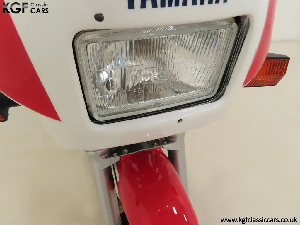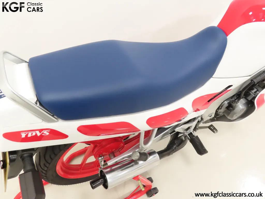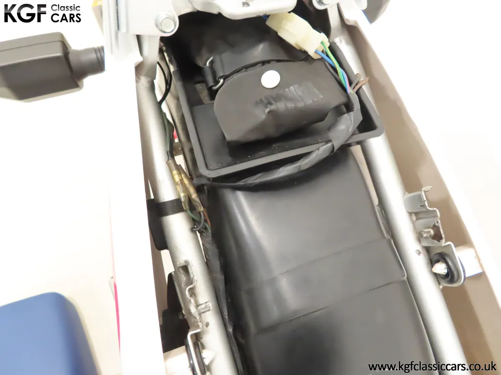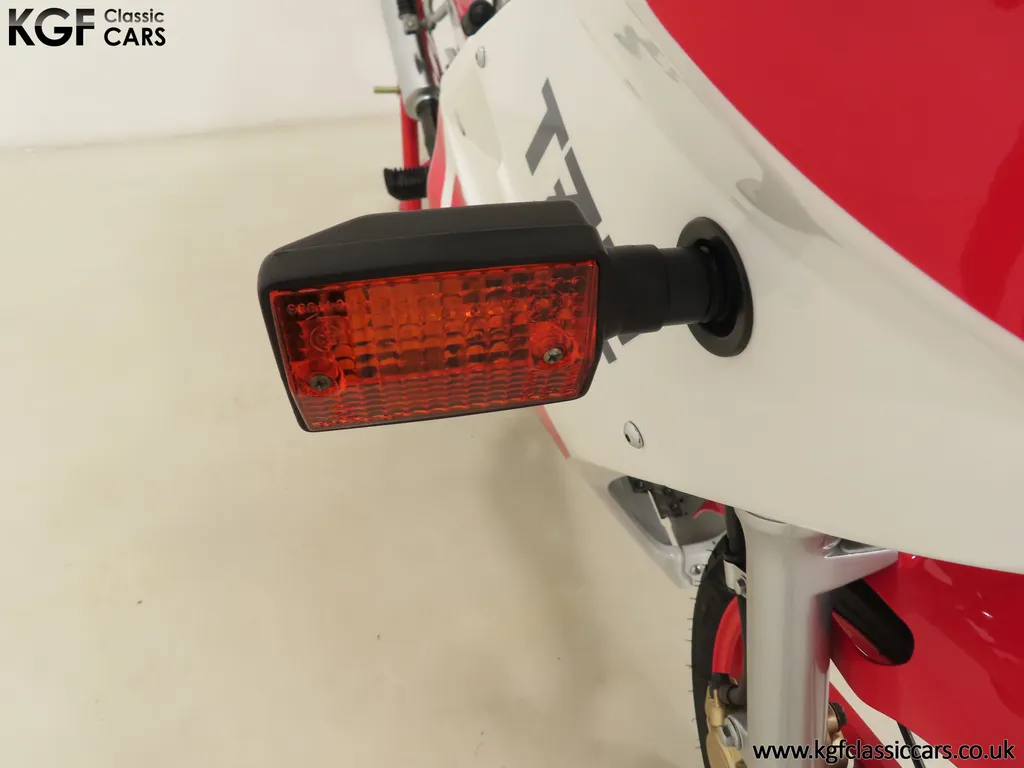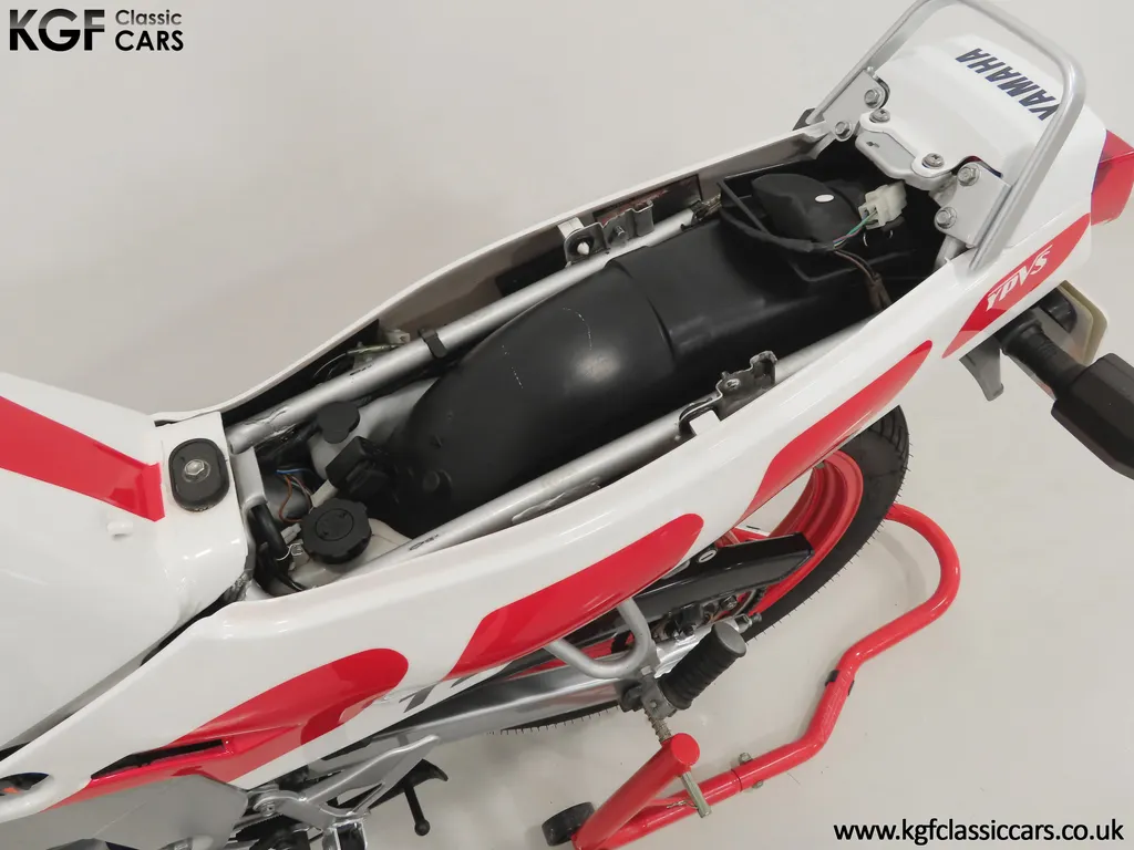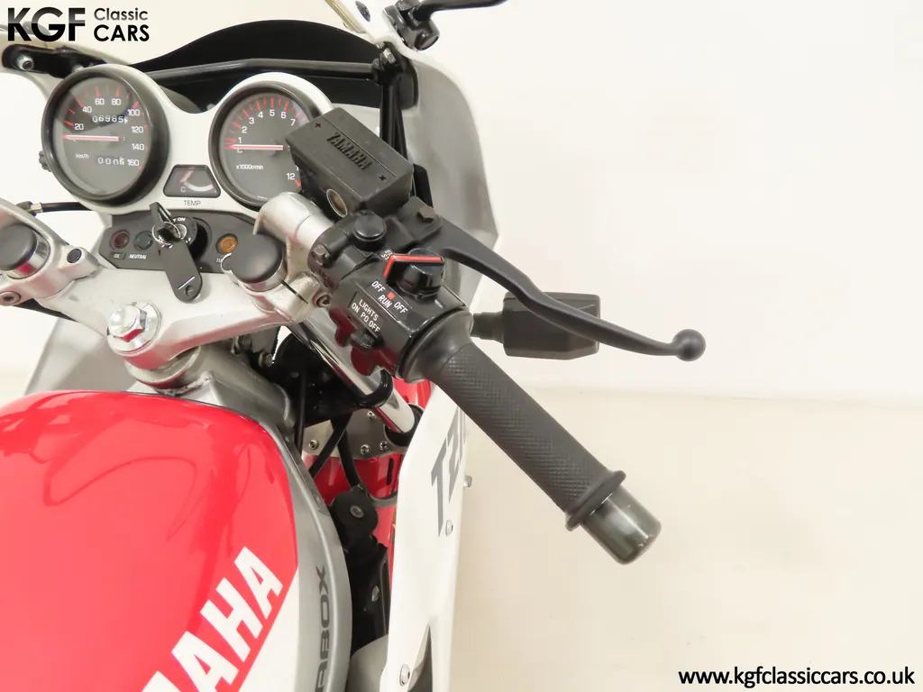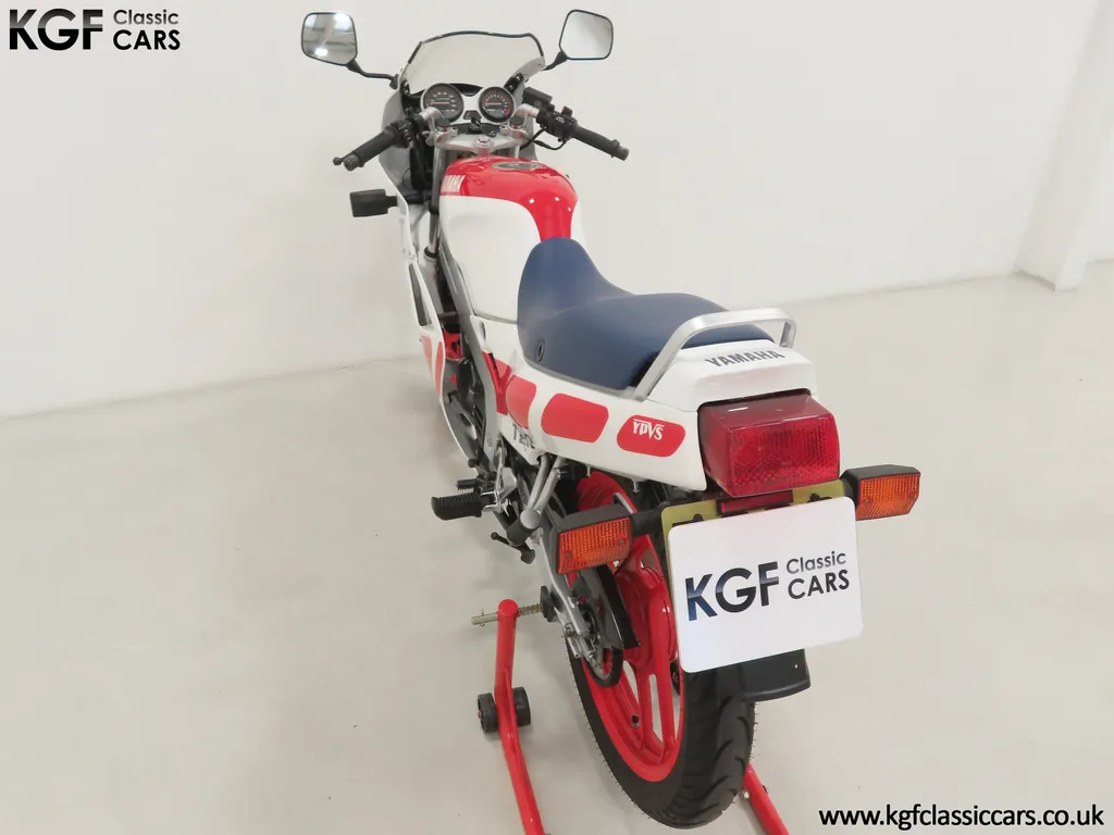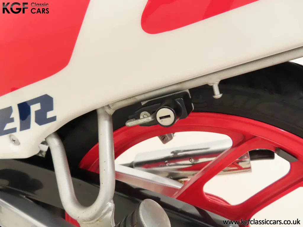 FOR SALE A matching numbers Yamaha TZR125 presented in collector quality condition. EQUIPMENT DELTABOX frame fabricated from high-quality steel pressings, Monocross suspension with box-section high-tensile steel swinging arm, De Carbon-type shock absorber, racer-style clip-on handlebars, rectangular headlight, windscreen, twin rear view mirrors, 12 litre fuel tank with flush-fitting aircraft-type cap, square tube passenger grab rail, cast alloy triple-spoke wheels, YEIS (Yamaha Energy Induction System) boost chamber, YPVS (Yamaha Power Valve System), liquid cooling, speedometer, tachometer, water temperature gauge, ignition switch incorporating park light, turn signal switch, headlight switch, neutral indicator, horn, steering lock, rear footrests, locking helmet holder. Factory Options: Full fairing kit. EXTERIOR Following on from the traditions of Yamaha’s famous RD models but taking on groundbreaking technology, the TZR125 was yet another world-beating supersports lightweight machine. This exceptional specimen is finished in the red and white colour scheme that the bike and the optional full fairing was made with. Many components of this example are unrestored with the exception of the stunning paintwork to the tank and fairings that was entrusted to renowned Pauls Custom Paintwork of West Kingsdown who specialises in ‘all paint no stickers’ finishing. The white is done in Pearl finish so, at a glance, it appears standard but in sunlight it looks amazing with a pearl fleck. Originality is seen extensively with the original olive drab green finish to fittings as well as factory switchgear, hand grips and foot peg rubbers. The windscreen shows some faint stress crazing to the top section. Light patina to the unrestored components is fully acceptable and the bike showcases the perfect mix of pleasing originality and flawless paintwork. The seat is professionally retrimmed in the correct blue covering, underneath which is the original Yamaha toolkit. This is a very special bike. ENGINE & TRANSMISSION Powered by a liquid cooled 2 stroke motor, this TZR125 is basically half of Yamaha’s sensational TZR250 which is itself based directly on the World Championship-winning TZ road racers. Featuring the Mikuni VM26SS carburettor as well as technological advancements at the time such Yamaha Power Valve System, (YPVS) and Yamaha Energy Induction System, (YEIS). This being a French European model, it benefits from being unrestricted with full use of the fully operational YPV System. The engine number is stamped to the left side of the engine casing and matches that of the clearly visible frame stock stamp and VIN plate to confirm this as a matching numbers machine. The original Yamaha 2RL-14711 exhaust remains fitted. The 6-speed transmission is precise and the factory fitted strengthened clutch and wider final chain drive enables it to cope with the extra power. WHEELS, TYRES & BRAKES The cast alloy triple-spoke wheels retain the original unrestored red finish with prominent cast stampings and are shod in premium Michelin PilotStreet 80/90-16 front and 100/90-18 rear tyres. The TZR features a hydraulic disc front brake with slotted rotor to aid cooling and a correct gold finish opposed-piston caliper. The rear brake incorporates a weatherproof drum integral with the wheel. A great combination to generate maximum braking force. HISTORY FILE This amazing Yamaha TZR125 is a French European example that was brought into the UK in 2018 believed to be a one owner bike. The bike is UK registered on an age-related D prefix and fully roadworthy with valid MOT until May 2026. A Dating Certificate from Paul Dawkins, Motorcycle Historian and Dating Officer at the UK based Aircooled RD Club, confirms the bike was manufactured in June 1987 and that the colour and component specification is correct for the model year. Purchased and UK registered in 2019 and owned by the same collector ever since, the bike has been on display in his home showroom alongside many other 1980’s motorcycles, cars and retro memorabilia including an unused Sinclair C5! It has been well maintained with light regular use and performs fabulously, especially being an unrestricted full power YPVS model! The owner’s testimonial is also included with the history file. Supplied with its handbook, UK registration documents, previous MOT certificates and brochure, it is ready for the next appreciative enthusiast. MOT May 2026, HPI clear.
