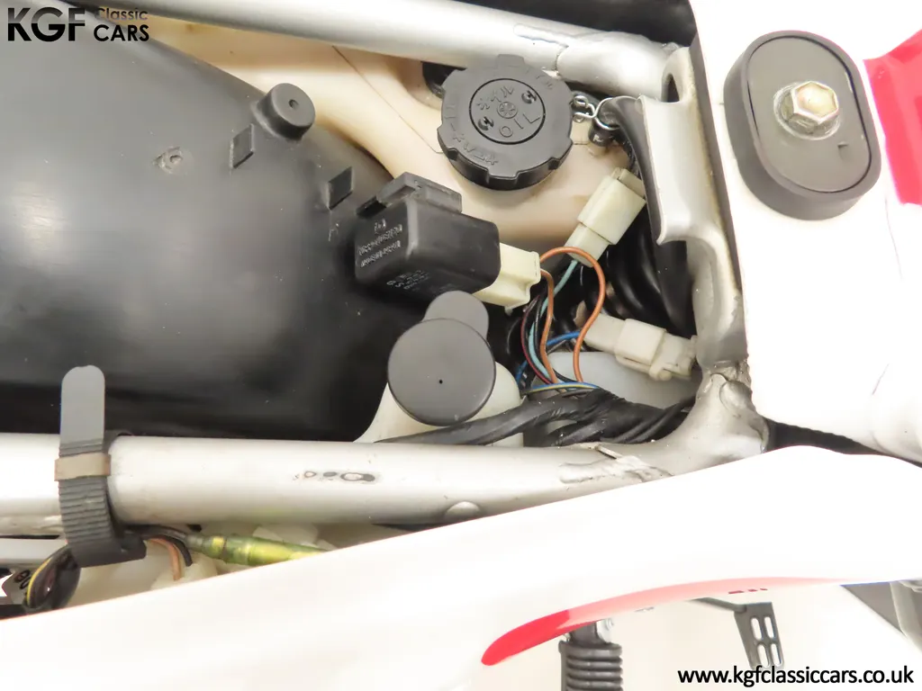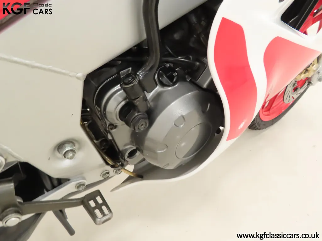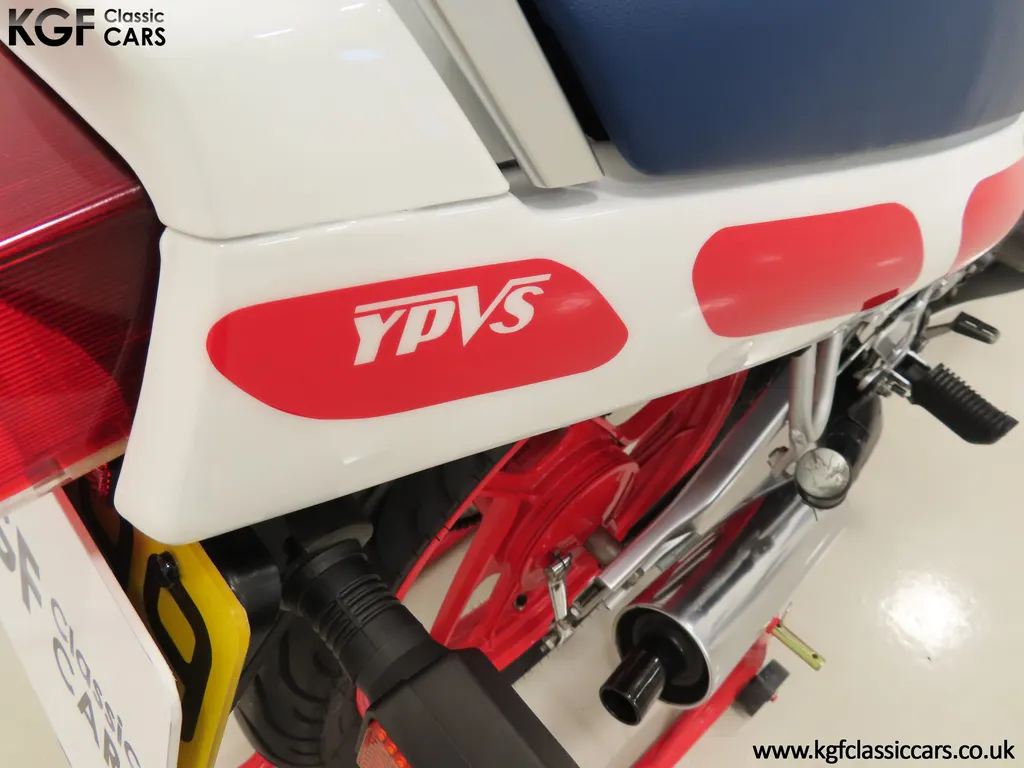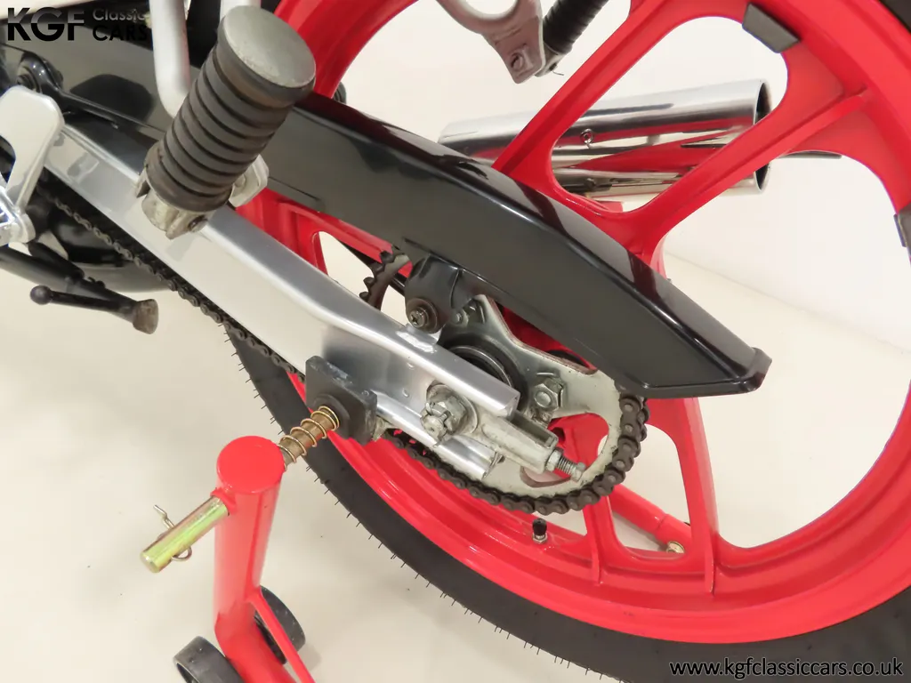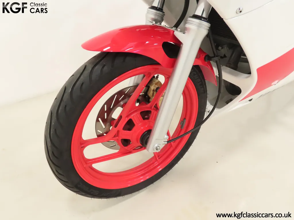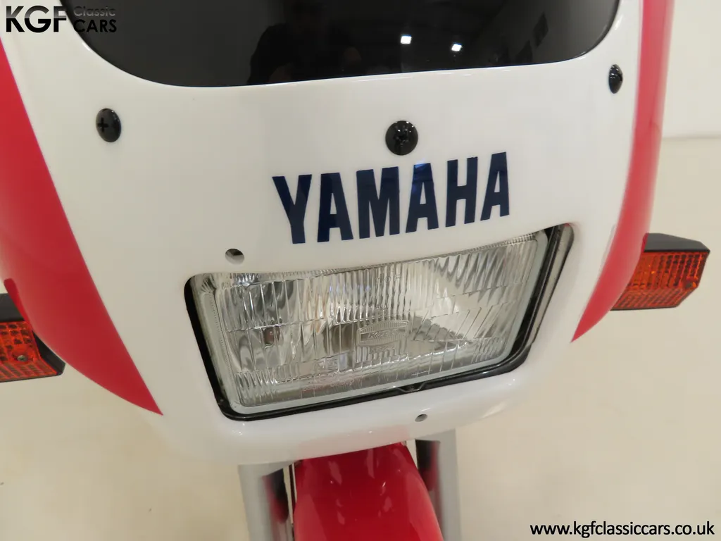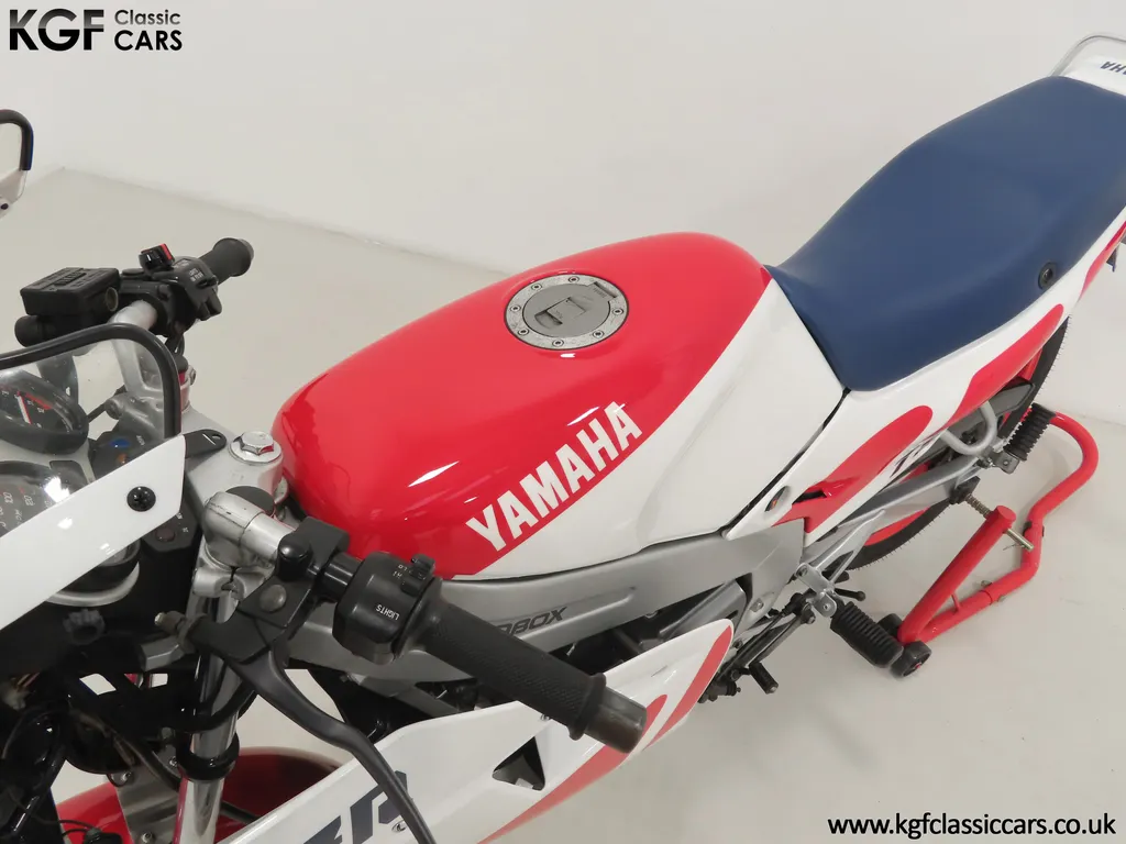 FOR SALE A matching numbers Yamaha TZR125 presented in collector quality condition. EQUIPMENT DELTABOX frame fabricated from high-quality steel pressings, Monocross suspension with box-section high-tensile steel swinging arm, De Carbon-type shock absorber, racer-style clip-on handlebars, rectangular headlight, windscreen, twin rear view mirrors, 12 litre fuel tank with flush-fitting aircraft-type cap, square tube passenger grab rail, cast alloy triple-spoke wheels, YEIS (Yamaha Energy Induction System) boost chamber, YPVS (Yamaha Power Valve System), liquid cooling, speedometer, tachometer, water temperature gauge, ignition switch incorporating park light, turn signal switch, headlight switch, neutral indicator, horn, steering lock, rear footrests, locking helmet holder. Factory Options: Full fairing kit. EXTERIOR Following on from the traditions of Yamaha’s famous RD models but taking on groundbreaking technology, the TZR125 was yet another world-beating supersports lightweight machine. This exceptional specimen is finished in the red and white colour scheme that the bike and the optional full fairing was made with. Many components of this example are unrestored with the exception of the stunning paintwork to the tank and fairings that was entrusted to renowned Pauls Custom Paintwork of West Kingsdown who specialises in ‘all paint no stickers’ finishing. The white is done in Pearl finish so, at a glance, it appears standard but in sunlight it looks amazing with a pearl fleck. Originality is seen extensively with the original olive drab green finish to fittings as well as factory switchgear, hand grips and foot peg rubbers. The windscreen shows some faint stress crazing to the top section. Light patina to the unrestored components is fully acceptable and the bike showcases the perfect mix of pleasing originality and flawless paintwork. The seat is professionally retrimmed in the correct blue covering, underneath which is the original Yamaha toolkit. This is a very special bike. ENGINE & TRANSMISSION Powered by a liquid cooled 2 stroke motor, this TZR125 is basically half of Yamaha’s sensational TZR250 which is itself based directly on the World Championship-winning TZ road racers. Featuring the Mikuni VM26SS carburettor as well as technological advancements at the time such Yamaha Power Valve System, (YPVS) and Yamaha Energy Induction System, (YEIS). This being a French European model, it benefits from being unrestricted with full use of the fully operational YPV System. The engine number is stamped to the left side of the engine casing and matches that of the clearly visible frame stock stamp and VIN plate to confirm this as a matching numbers machine. The original Yamaha 2RL-14711 exhaust remains fitted. The 6-speed transmission is precise and the factory fitted strengthened clutch and wider final chain drive enables it to cope with the extra power. WHEELS, TYRES & BRAKES The cast alloy triple-spoke wheels retain the original unrestored red finish with prominent cast stampings and are shod in premium Michelin PilotStreet 80/90-16 front and 100/90-18 rear tyres. The TZR features a hydraulic disc front brake with slotted rotor to aid cooling and a correct gold finish opposed-piston caliper. The rear brake incorporates a weatherproof drum integral with the wheel. A great combination to generate maximum braking force. HISTORY FILE This amazing Yamaha TZR125 is a French European example that was brought into the UK in 2018 believed to be a one owner bike. The bike is UK registered on an age-related D prefix and fully roadworthy with valid MOT until May 2026. A Dating Certificate from Paul Dawkins, Motorcycle Historian and Dating Officer at the UK based Aircooled RD Club, confirms the bike was manufactured in June 1987 and that the colour and component specification is correct for the model year. Purchased and UK registered in 2019 and owned by the same collector ever since, the bike has been on display in his home showroom alongside many other 1980’s motorcycles, cars and retro memorabilia including an unused Sinclair C5! It has been well maintained with light regular use and performs fabulously, especially being an unrestricted full power YPVS model! The owner’s testimonial is also included with the history file. Supplied with its handbook, UK registration documents, previous MOT certificates and brochure, it is ready for the next appreciative enthusiast. MOT May 2026, HPI clear.