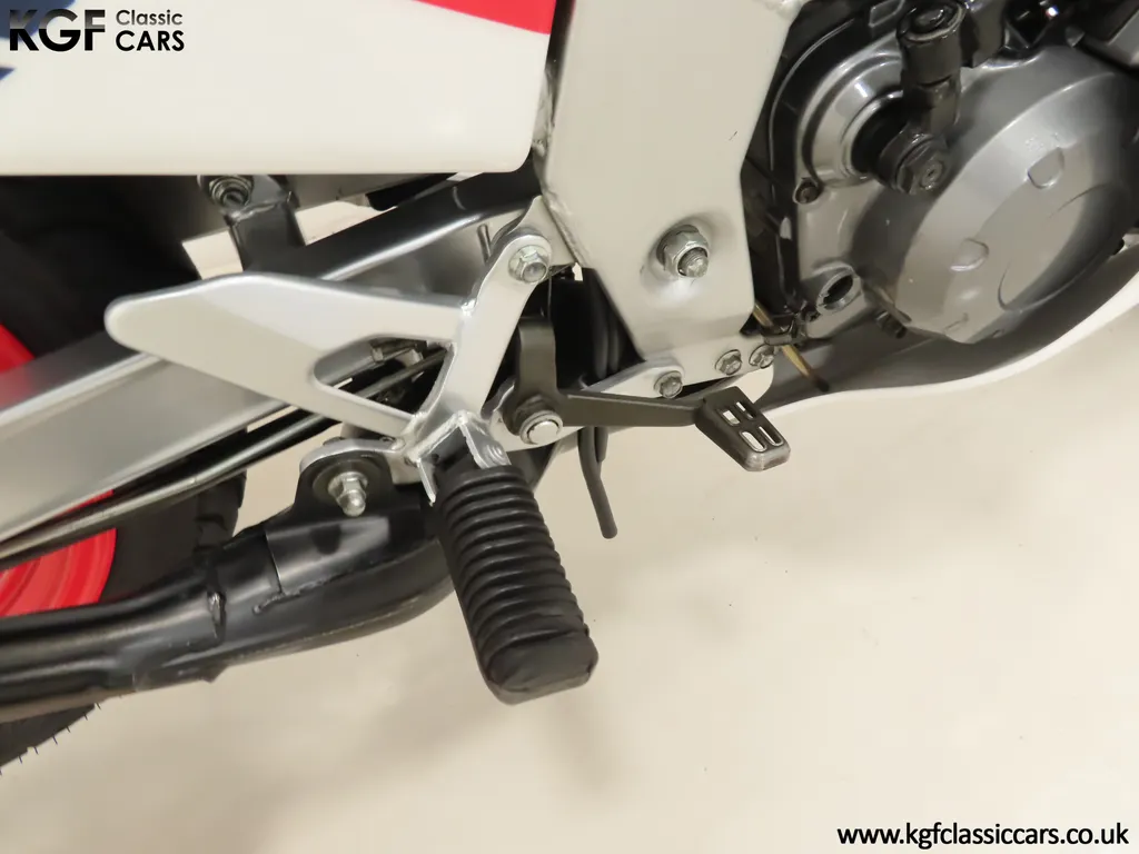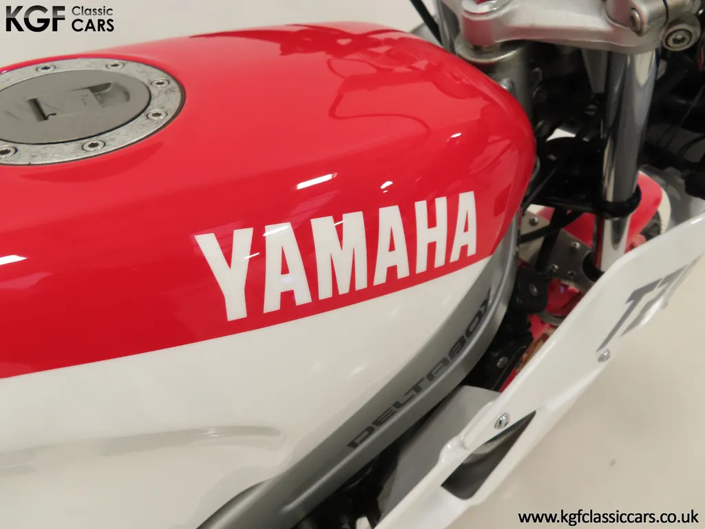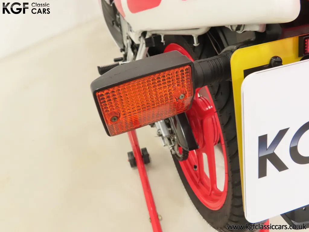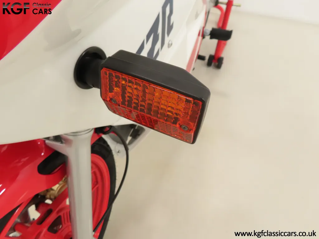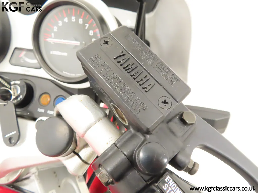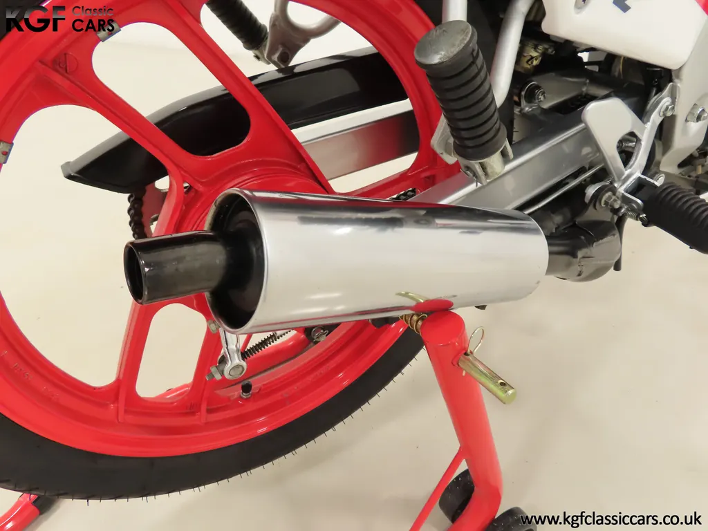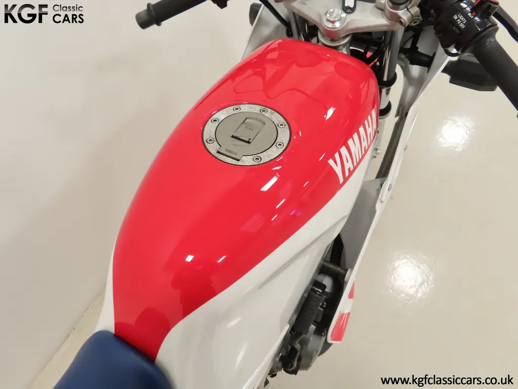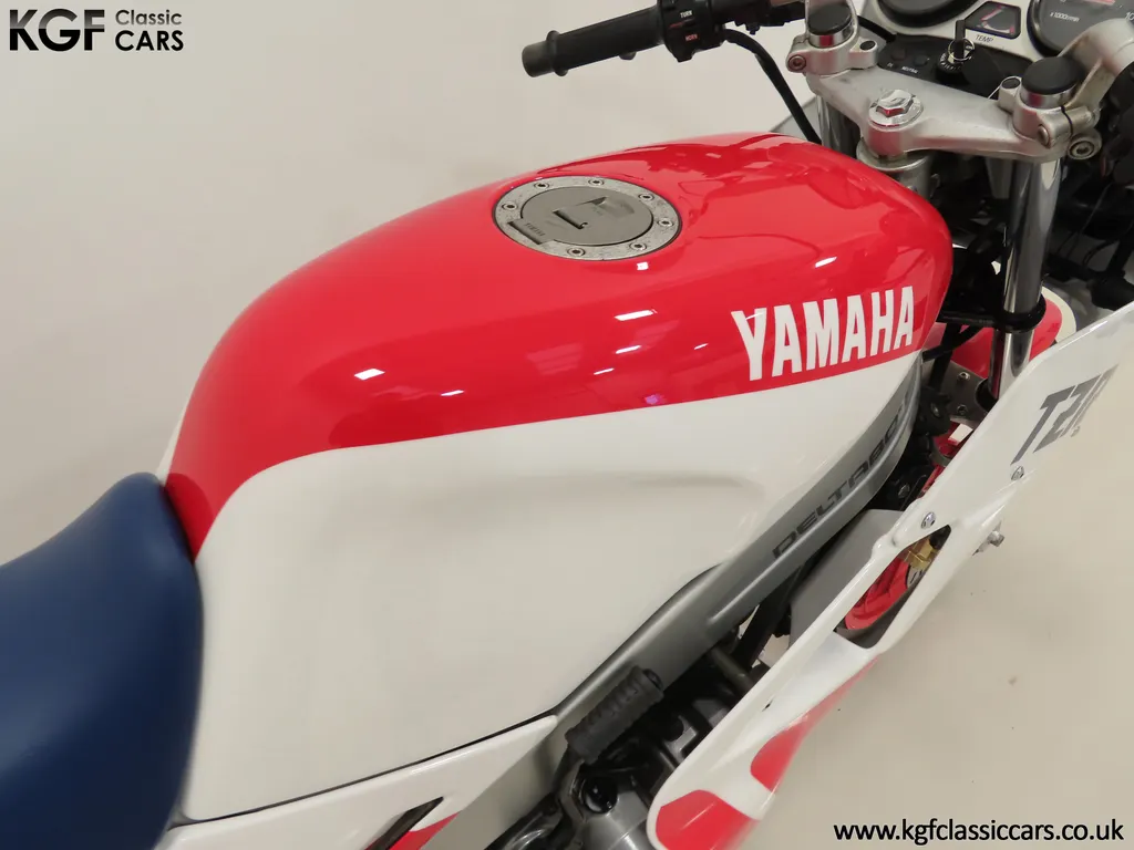 FOR SALE A matching numbers Yamaha TZR125 presented in collector quality condition. EQUIPMENT DELTABOX frame fabricated from high-quality steel pressings, Monocross suspension with box-section high-tensile steel swinging arm, De Carbon-type shock absorber, racer-style clip-on handlebars, rectangular headlight, windscreen, twin rear view mirrors, 12 litre fuel tank with flush-fitting aircraft-type cap, square tube passenger grab rail, cast alloy triple-spoke wheels, YEIS (Yamaha Energy Induction System) boost chamber, YPVS (Yamaha Power Valve System), liquid cooling, speedometer, tachometer, water temperature gauge, ignition switch incorporating park light, turn signal switch, headlight switch, neutral indicator, horn, steering lock, rear footrests, locking helmet holder. Factory Options: Full fairing kit. EXTERIOR Following on from the traditions of Yamaha’s famous RD models but taking on groundbreaking technology, the TZR125 was yet another world-beating supersports lightweight machine. This exceptional specimen is finished in the red and white colour scheme that the bike and the optional full fairing was made with. Many components of this example are unrestored with the exception of the stunning paintwork to the tank and fairings that was entrusted to renowned Pauls Custom Paintwork of West Kingsdown who specialises in ‘all paint no stickers’ finishing. The white is done in Pearl finish so, at a glance, it appears standard but in sunlight it looks amazing with a pearl fleck. Originality is seen extensively with the original olive drab green finish to fittings as well as factory switchgear, hand grips and foot peg rubbers. The windscreen shows some faint stress crazing to the top section. Light patina to the unrestored components is fully acceptable and the bike showcases the perfect mix of pleasing originality and flawless paintwork. The seat is professionally retrimmed in the correct blue covering, underneath which is the original Yamaha toolkit. This is a very special bike. ENGINE & TRANSMISSION Powered by a liquid cooled 2 stroke motor, this TZR125 is basically half of Yamaha’s sensational TZR250 which is itself based directly on the World Championship-winning TZ road racers. Featuring the Mikuni VM26SS carburettor as well as technological advancements at the time such Yamaha Power Valve System, (YPVS) and Yamaha Energy Induction System, (YEIS). This being a French European model, it benefits from being unrestricted with full use of the fully operational YPV System. The engine number is stamped to the left side of the engine casing and matches that of the clearly visible frame stock stamp and VIN plate to confirm this as a matching numbers machine. The original Yamaha 2RL-14711 exhaust remains fitted. The 6-speed transmission is precise and the factory fitted strengthened clutch and wider final chain drive enables it to cope with the extra power. WHEELS, TYRES & BRAKES The cast alloy triple-spoke wheels retain the original unrestored red finish with prominent cast stampings and are shod in premium Michelin PilotStreet 80/90-16 front and 100/90-18 rear tyres. The TZR features a hydraulic disc front brake with slotted rotor to aid cooling and a correct gold finish opposed-piston caliper. The rear brake incorporates a weatherproof drum integral with the wheel. A great combination to generate maximum braking force. HISTORY FILE This amazing Yamaha TZR125 is a French European example that was brought into the UK in 2018 believed to be a one owner bike. The bike is UK registered on an age-related D prefix and fully roadworthy with valid MOT until May 2026. A Dating Certificate from Paul Dawkins, Motorcycle Historian and Dating Officer at the UK based Aircooled RD Club, confirms the bike was manufactured in June 1987 and that the colour and component specification is correct for the model year. Purchased and UK registered in 2019 and owned by the same collector ever since, the bike has been on display in his home showroom alongside many other 1980’s motorcycles, cars and retro memorabilia including an unused Sinclair C5! It has been well maintained with light regular use and performs fabulously, especially being an unrestricted full power YPVS model! The owner’s testimonial is also included with the history file. Supplied with its handbook, UK registration documents, previous MOT certificates and brochure, it is ready for the next appreciative enthusiast. MOT May 2026, HPI clear.