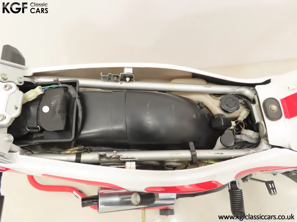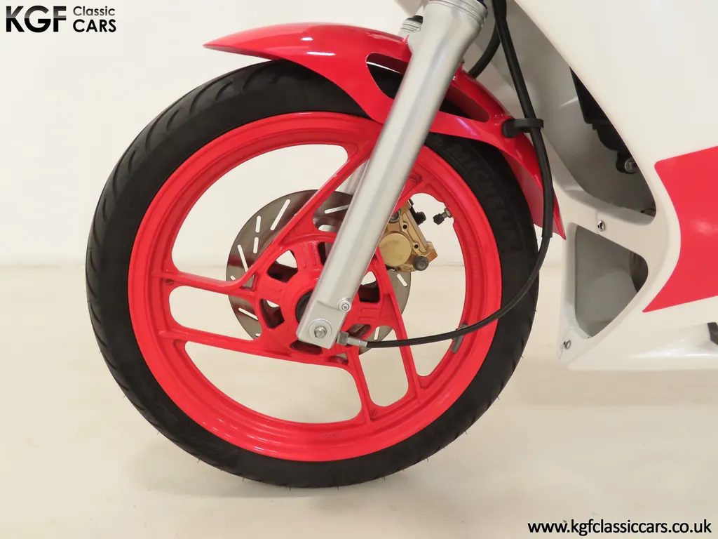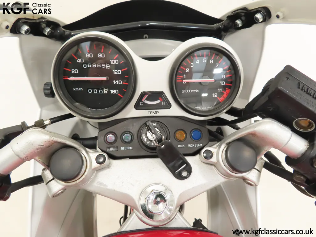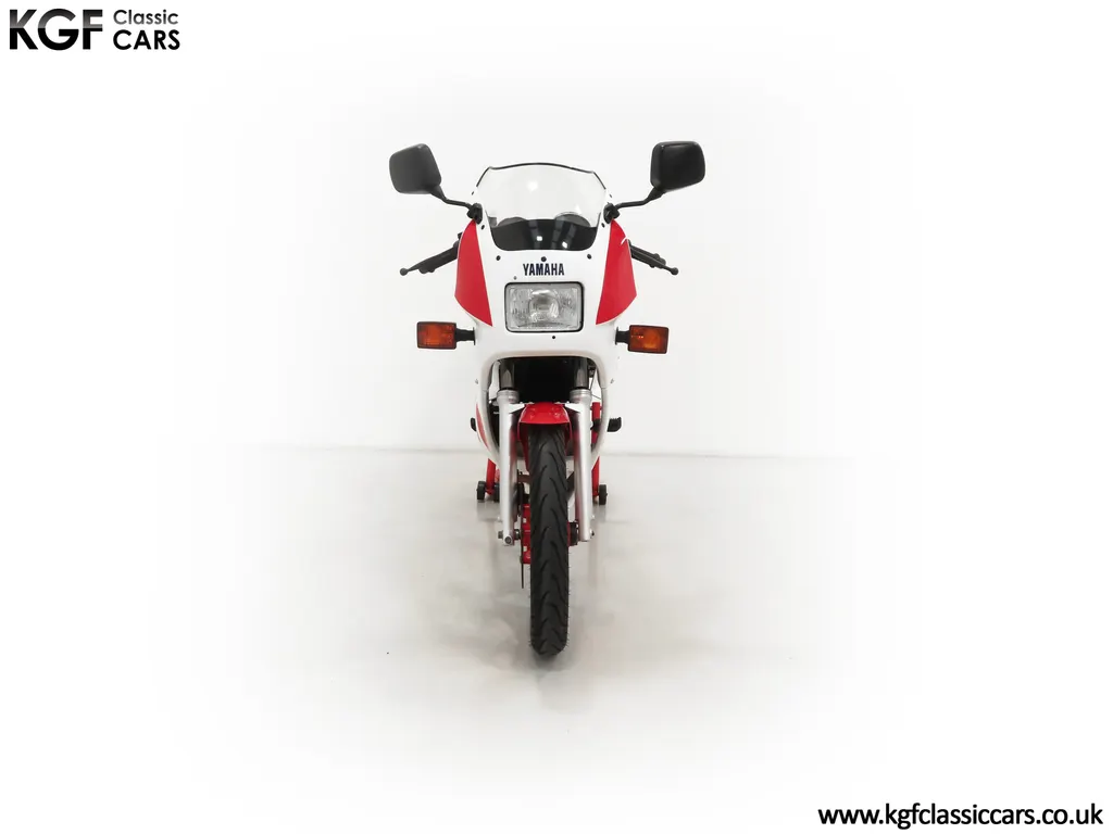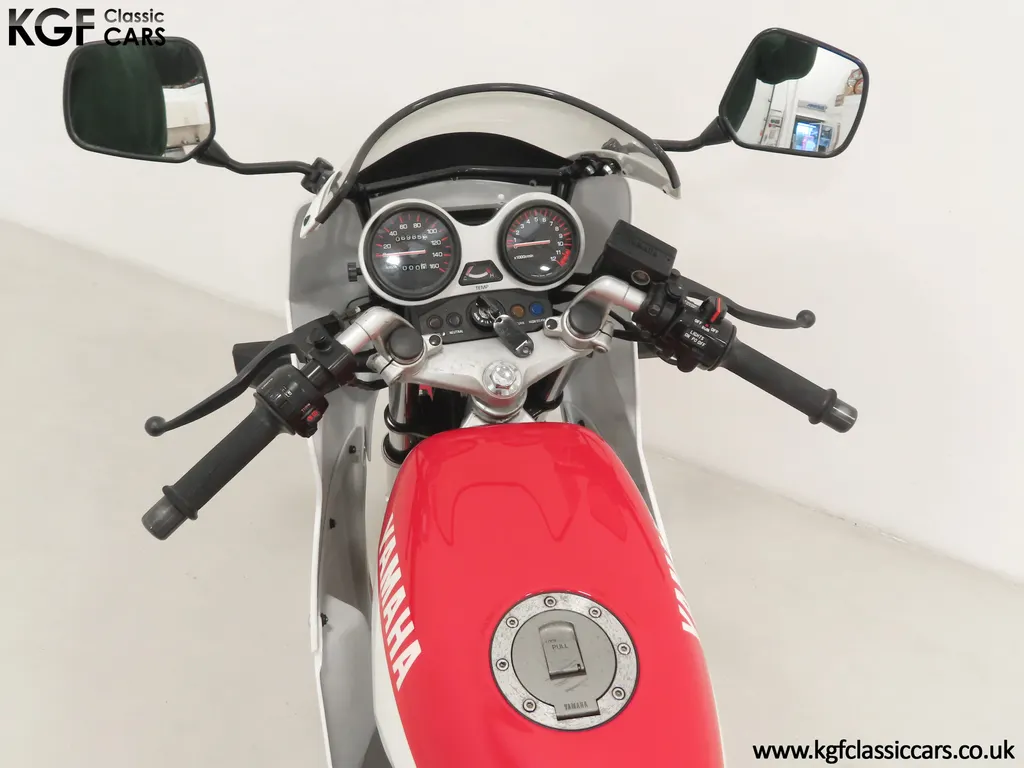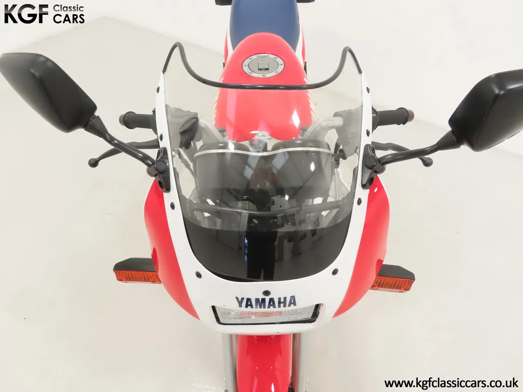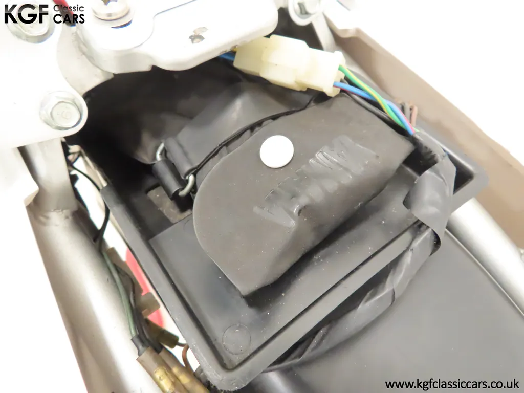 FOR SALE A matching numbers Yamaha TZR125 presented in collector quality condition. EQUIPMENT DELTABOX frame fabricated from high-quality steel pressings, Monocross suspension with box-section high-tensile steel swinging arm, De Carbon-type shock absorber, racer-style clip-on handlebars, rectangular headlight, windscreen, twin rear view mirrors, 12 litre fuel tank with flush-fitting aircraft-type cap, square tube passenger grab rail, cast alloy triple-spoke wheels, YEIS (Yamaha Energy Induction System) boost chamber, YPVS (Yamaha Power Valve System), liquid cooling, speedometer, tachometer, water temperature gauge, ignition switch incorporating park light, turn signal switch, headlight switch, neutral indicator, horn, steering lock, rear footrests, locking helmet holder. Factory Options: Full fairing kit. EXTERIOR Following on from the traditions of Yamaha’s famous RD models but taking on groundbreaking technology, the TZR125 was yet another world-beating supersports lightweight machine. This exceptional specimen is finished in the red and white colour scheme that the bike and the optional full fairing was made with. Many components of this example are unrestored with the exception of the stunning paintwork to the tank and fairings that was entrusted to renowned Pauls Custom Paintwork of West Kingsdown who specialises in ‘all paint no stickers’ finishing. The white is done in Pearl finish so, at a glance, it appears standard but in sunlight it looks amazing with a pearl fleck. Originality is seen extensively with the original olive drab green finish to fittings as well as factory switchgear, hand grips and foot peg rubbers. The windscreen shows some faint stress crazing to the top section. Light patina to the unrestored components is fully acceptable and the bike showcases the perfect mix of pleasing originality and flawless paintwork. The seat is professionally retrimmed in the correct blue covering, underneath which is the original Yamaha toolkit. This is a very special bike. ENGINE & TRANSMISSION Powered by a liquid cooled 2 stroke motor, this TZR125 is basically half of Yamaha’s sensational TZR250 which is itself based directly on the World Championship-winning TZ road racers. Featuring the Mikuni VM26SS carburettor as well as technological advancements at the time such Yamaha Power Valve System, (YPVS) and Yamaha Energy Induction System, (YEIS). This being a French European model, it benefits from being unrestricted with full use of the fully operational YPV System. The engine number is stamped to the left side of the engine casing and matches that of the clearly visible frame stock stamp and VIN plate to confirm this as a matching numbers machine. The original Yamaha 2RL-14711 exhaust remains fitted. The 6-speed transmission is precise and the factory fitted strengthened clutch and wider final chain drive enables it to cope with the extra power. WHEELS, TYRES & BRAKES The cast alloy triple-spoke wheels retain the original unrestored red finish with prominent cast stampings and are shod in premium Michelin PilotStreet 80/90-16 front and 100/90-18 rear tyres. The TZR features a hydraulic disc front brake with slotted rotor to aid cooling and a correct gold finish opposed-piston caliper. The rear brake incorporates a weatherproof drum integral with the wheel. A great combination to generate maximum braking force. HISTORY FILE This amazing Yamaha TZR125 is a French European example that was brought into the UK in 2018 believed to be a one owner bike. The bike is UK registered on an age-related D prefix and fully roadworthy with valid MOT until May 2026. A Dating Certificate from Paul Dawkins, Motorcycle Historian and Dating Officer at the UK based Aircooled RD Club, confirms the bike was manufactured in June 1987 and that the colour and component specification is correct for the model year. Purchased and UK registered in 2019 and owned by the same collector ever since, the bike has been on display in his home showroom alongside many other 1980’s motorcycles, cars and retro memorabilia including an unused Sinclair C5! It has been well maintained with light regular use and performs fabulously, especially being an unrestricted full power YPVS model! The owner’s testimonial is also included with the history file. Supplied with its handbook, UK registration documents, previous MOT certificates and brochure, it is ready for the next appreciative enthusiast. MOT May 2026, HPI clear.