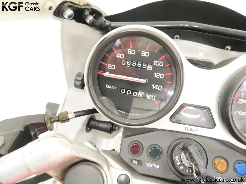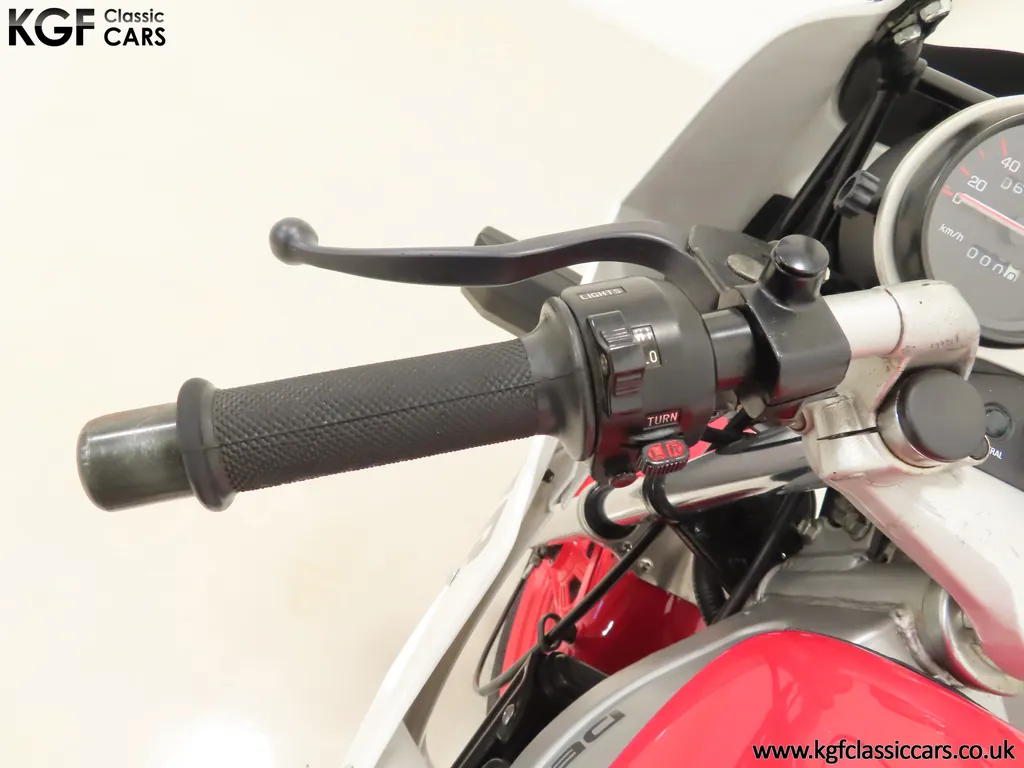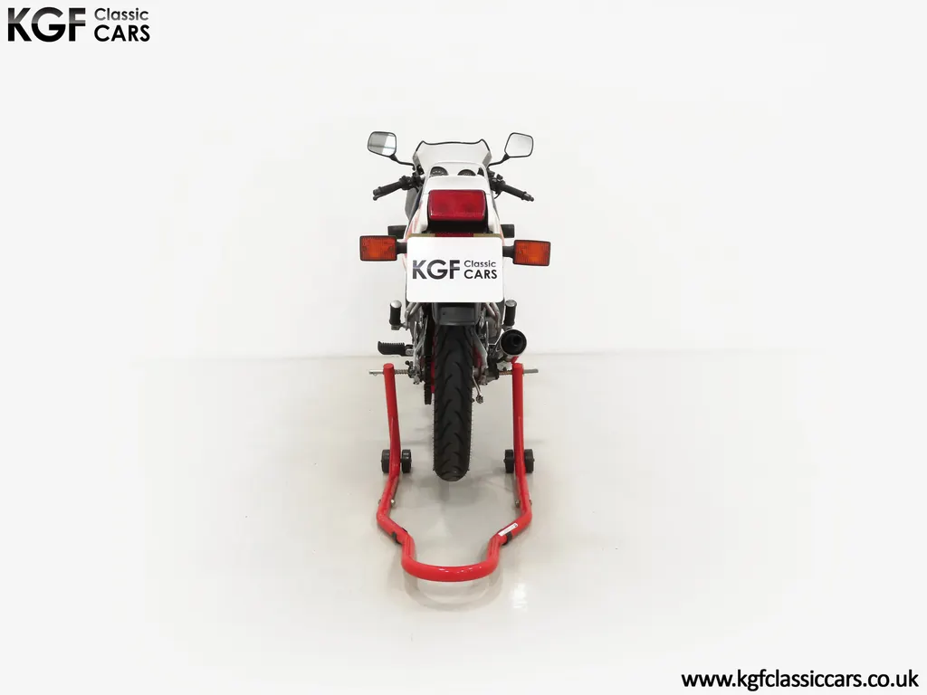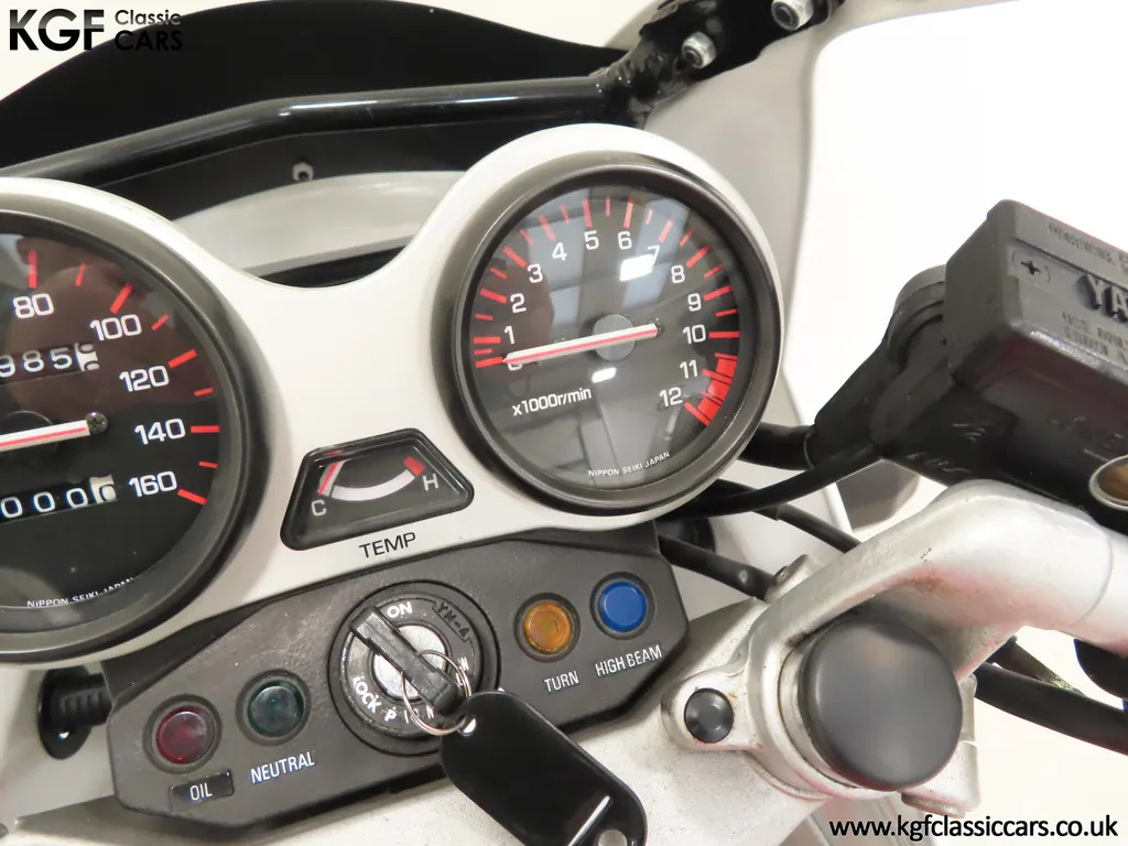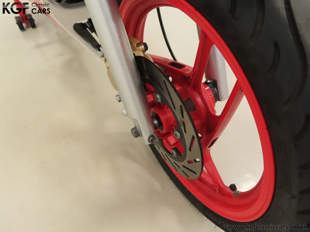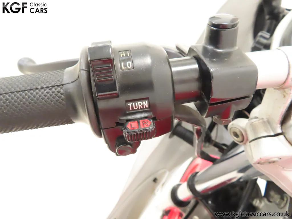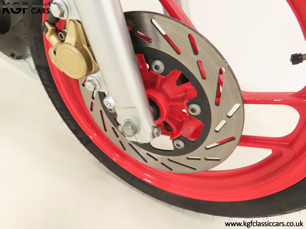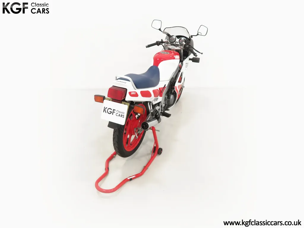 FOR SALE A matching numbers Yamaha TZR125 presented in collector quality condition. EQUIPMENT DELTABOX frame fabricated from high-quality steel pressings, Monocross suspension with box-section high-tensile steel swinging arm, De Carbon-type shock absorber, racer-style clip-on handlebars, rectangular headlight, windscreen, twin rear view mirrors, 12 litre fuel tank with flush-fitting aircraft-type cap, square tube passenger grab rail, cast alloy triple-spoke wheels, YEIS (Yamaha Energy Induction System) boost chamber, YPVS (Yamaha Power Valve System), liquid cooling, speedometer, tachometer, water temperature gauge, ignition switch incorporating park light, turn signal switch, headlight switch, neutral indicator, horn, steering lock, rear footrests, locking helmet holder. Factory Options: Full fairing kit. EXTERIOR Following on from the traditions of Yamaha’s famous RD models but taking on groundbreaking technology, the TZR125 was yet another world-beating supersports lightweight machine. This exceptional specimen is finished in the red and white colour scheme that the bike and the optional full fairing was made with. Many components of this example are unrestored with the exception of the stunning paintwork to the tank and fairings that was entrusted to renowned Pauls Custom Paintwork of West Kingsdown who specialises in ‘all paint no stickers’ finishing. The white is done in Pearl finish so, at a glance, it appears standard but in sunlight it looks amazing with a pearl fleck. Originality is seen extensively with the original olive drab green finish to fittings as well as factory switchgear, hand grips and foot peg rubbers. The windscreen shows some faint stress crazing to the top section. Light patina to the unrestored components is fully acceptable and the bike showcases the perfect mix of pleasing originality and flawless paintwork. The seat is professionally retrimmed in the correct blue covering, underneath which is the original Yamaha toolkit. This is a very special bike. ENGINE & TRANSMISSION Powered by a liquid cooled 2 stroke motor, this TZR125 is basically half of Yamaha’s sensational TZR250 which is itself based directly on the World Championship-winning TZ road racers. Featuring the Mikuni VM26SS carburettor as well as technological advancements at the time such Yamaha Power Valve System, (YPVS) and Yamaha Energy Induction System, (YEIS). This being a French European model, it benefits from being unrestricted with full use of the fully operational YPV System. The engine number is stamped to the left side of the engine casing and matches that of the clearly visible frame stock stamp and VIN plate to confirm this as a matching numbers machine. The original Yamaha 2RL-14711 exhaust remains fitted. The 6-speed transmission is precise and the factory fitted strengthened clutch and wider final chain drive enables it to cope with the extra power. WHEELS, TYRES & BRAKES The cast alloy triple-spoke wheels retain the original unrestored red finish with prominent cast stampings and are shod in premium Michelin PilotStreet 80/90-16 front and 100/90-18 rear tyres. The TZR features a hydraulic disc front brake with slotted rotor to aid cooling and a correct gold finish opposed-piston caliper. The rear brake incorporates a weatherproof drum integral with the wheel. A great combination to generate maximum braking force. HISTORY FILE This amazing Yamaha TZR125 is a French European example that was brought into the UK in 2018 believed to be a one owner bike. The bike is UK registered on an age-related D prefix and fully roadworthy with valid MOT until May 2026. A Dating Certificate from Paul Dawkins, Motorcycle Historian and Dating Officer at the UK based Aircooled RD Club, confirms the bike was manufactured in June 1987 and that the colour and component specification is correct for the model year. Purchased and UK registered in 2019 and owned by the same collector ever since, the bike has been on display in his home showroom alongside many other 1980’s motorcycles, cars and retro memorabilia including an unused Sinclair C5! It has been well maintained with light regular use and performs fabulously, especially being an unrestricted full power YPVS model! The owner’s testimonial is also included with the history file. Supplied with its handbook, UK registration documents, previous MOT certificates and brochure, it is ready for the next appreciative enthusiast. MOT May 2026, HPI clear.